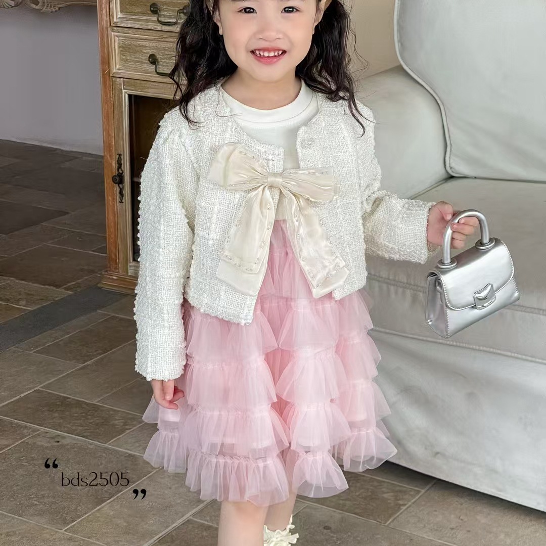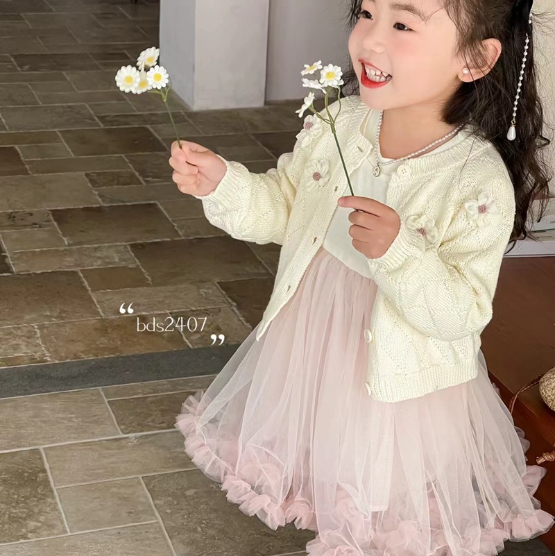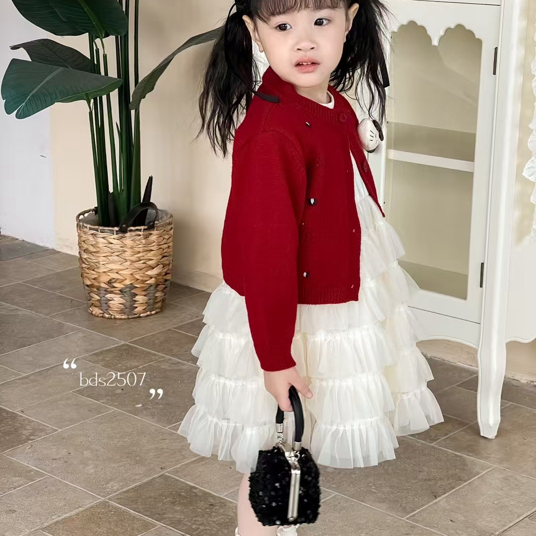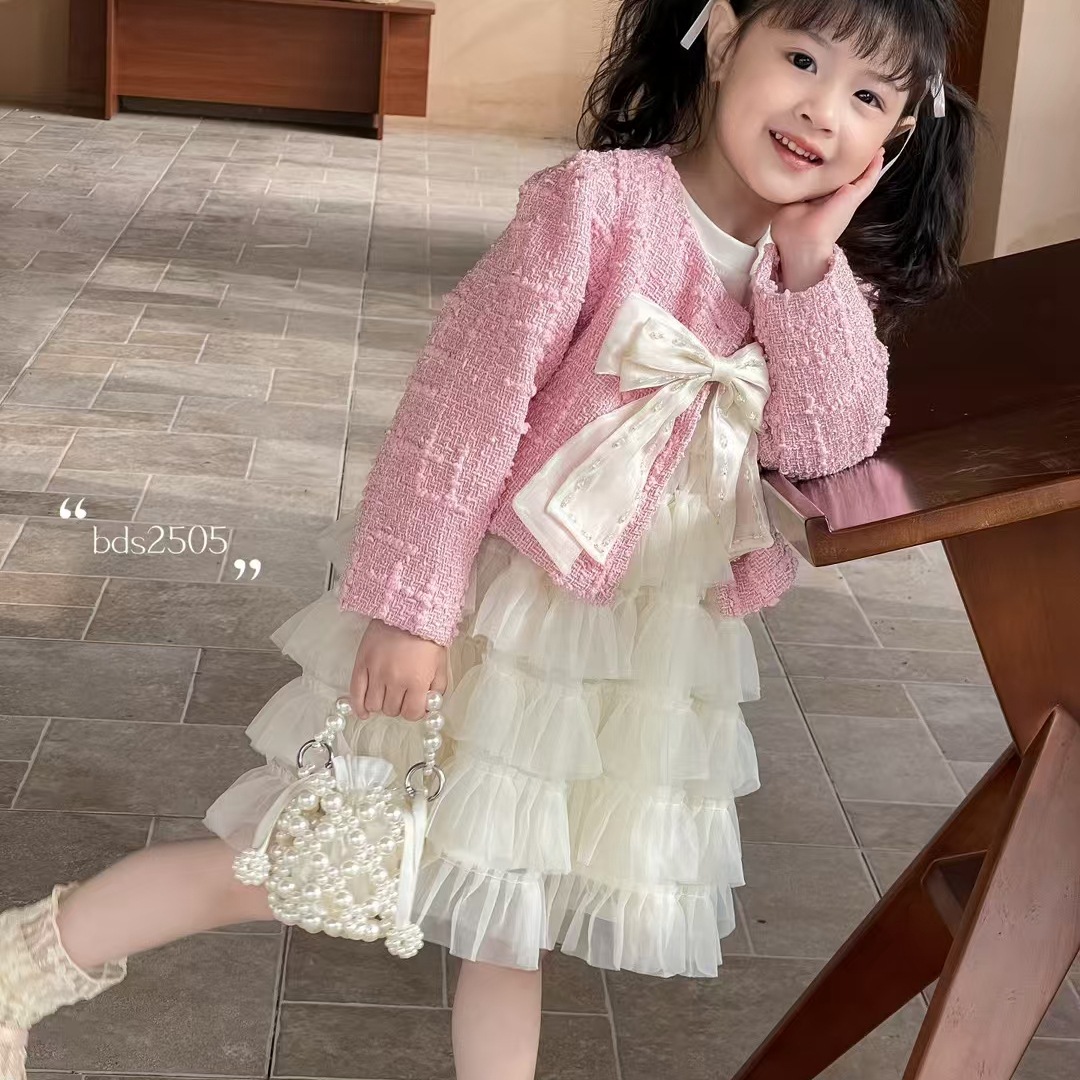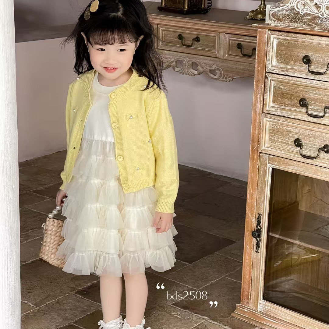 2025女童连衣裙子春季连衣裙两件套童装布袋开衫香风外套针织衫스토어 가기