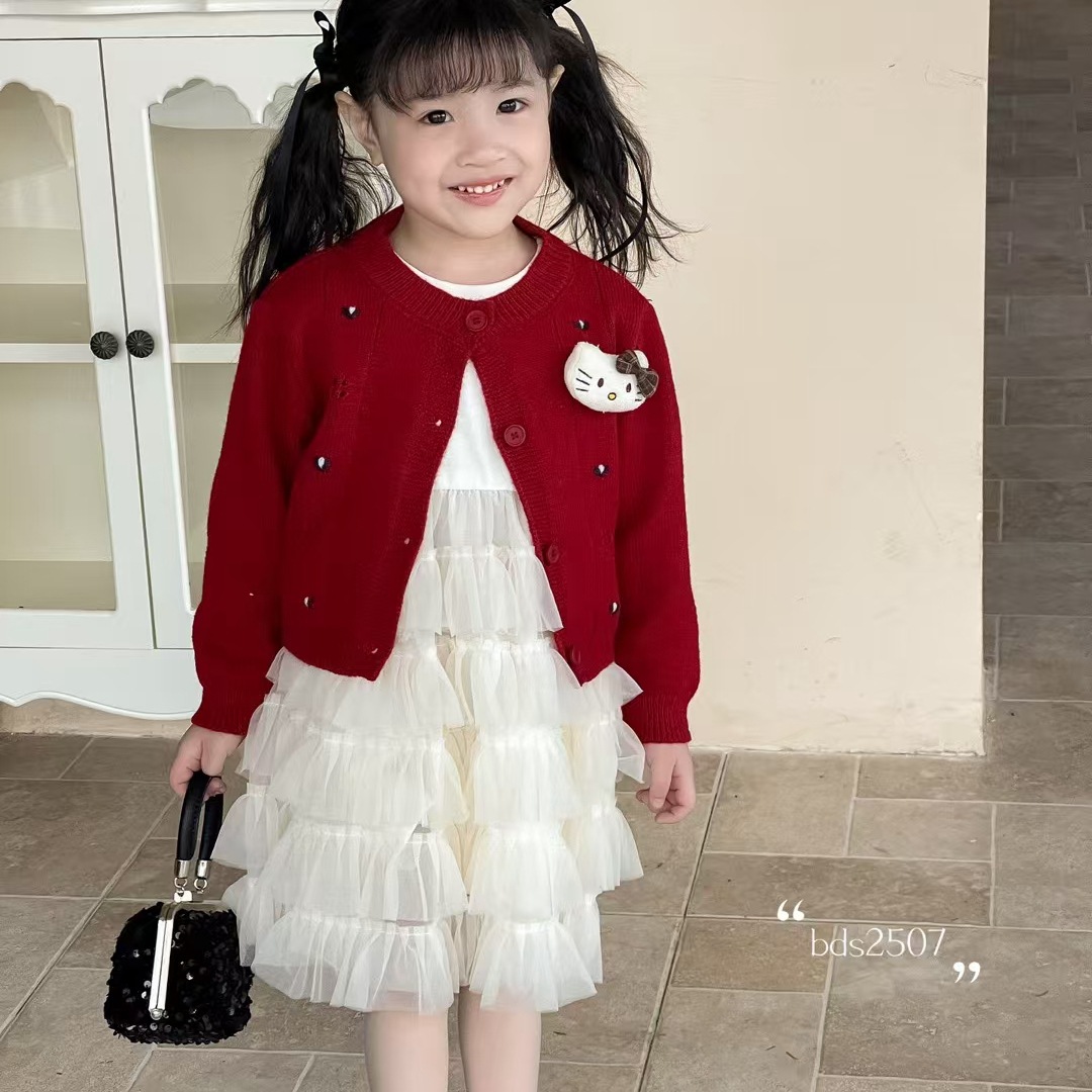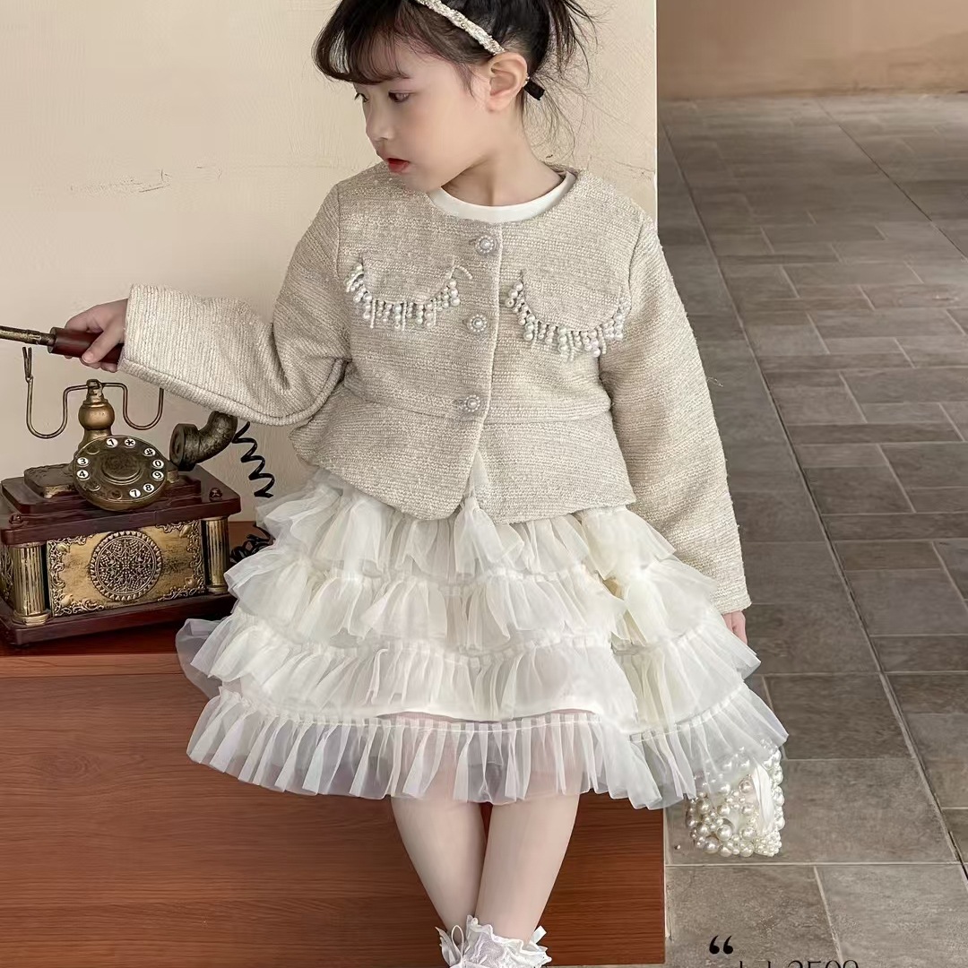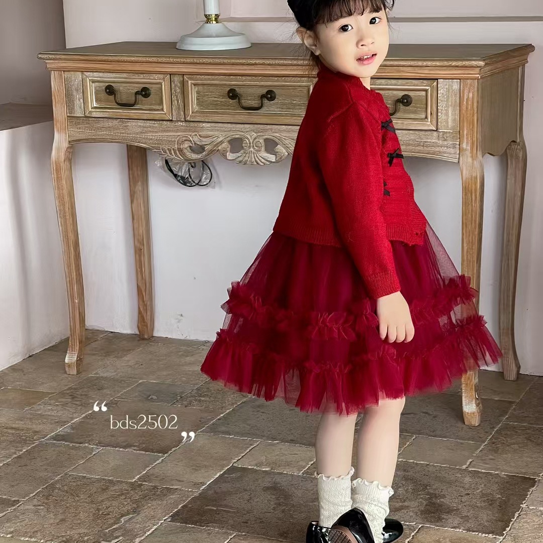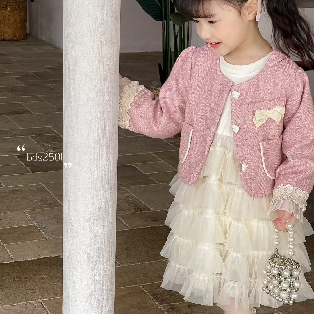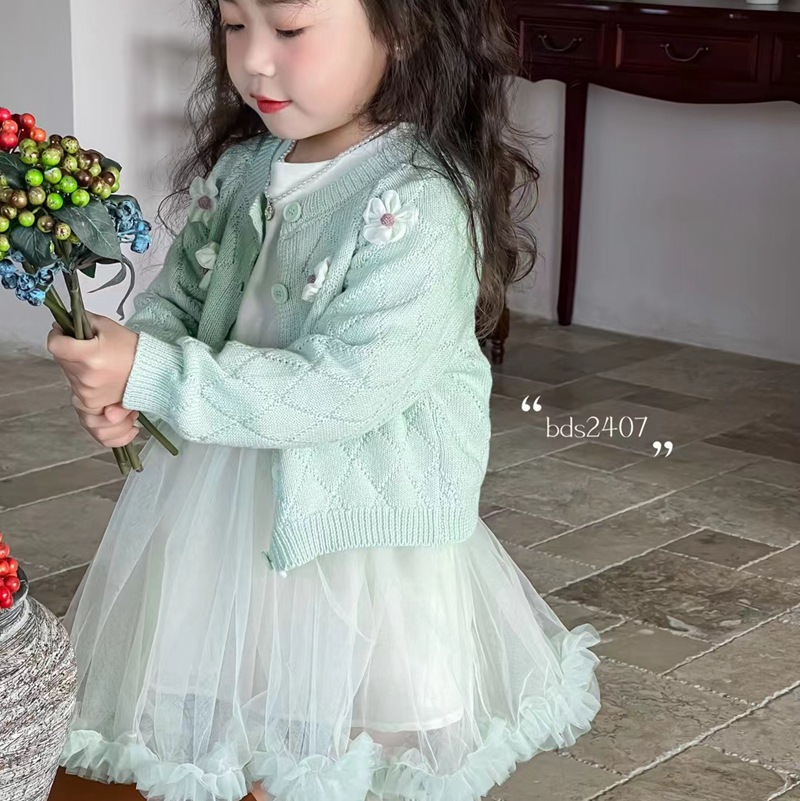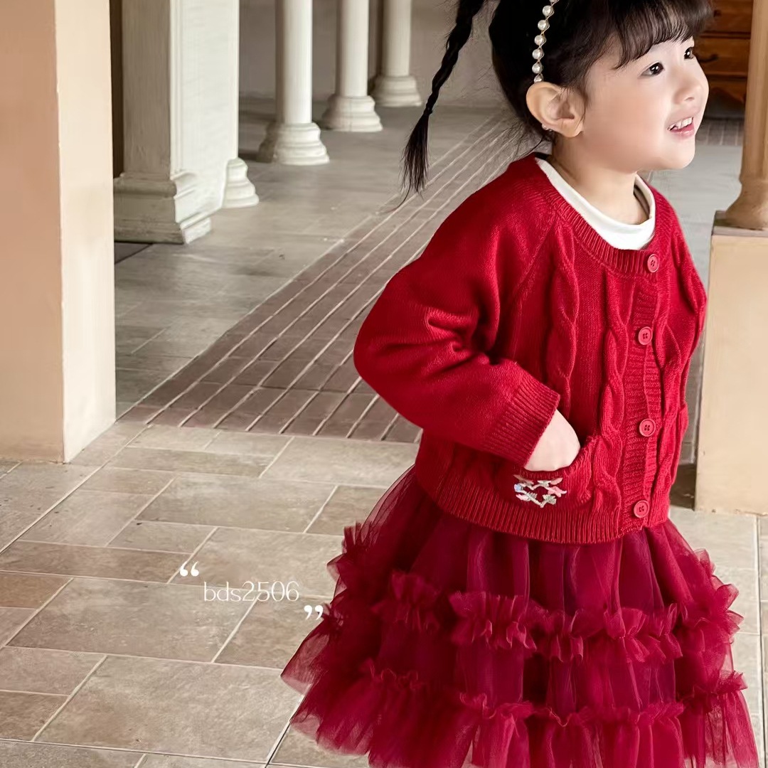 2025女童连衣裙子春季连衣裙两件套童装布袋开衫香风外套针织衫스토어 가기