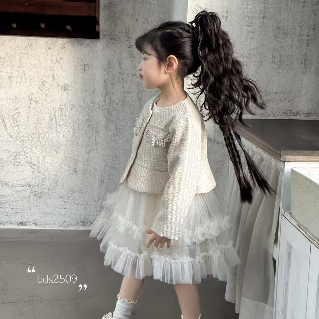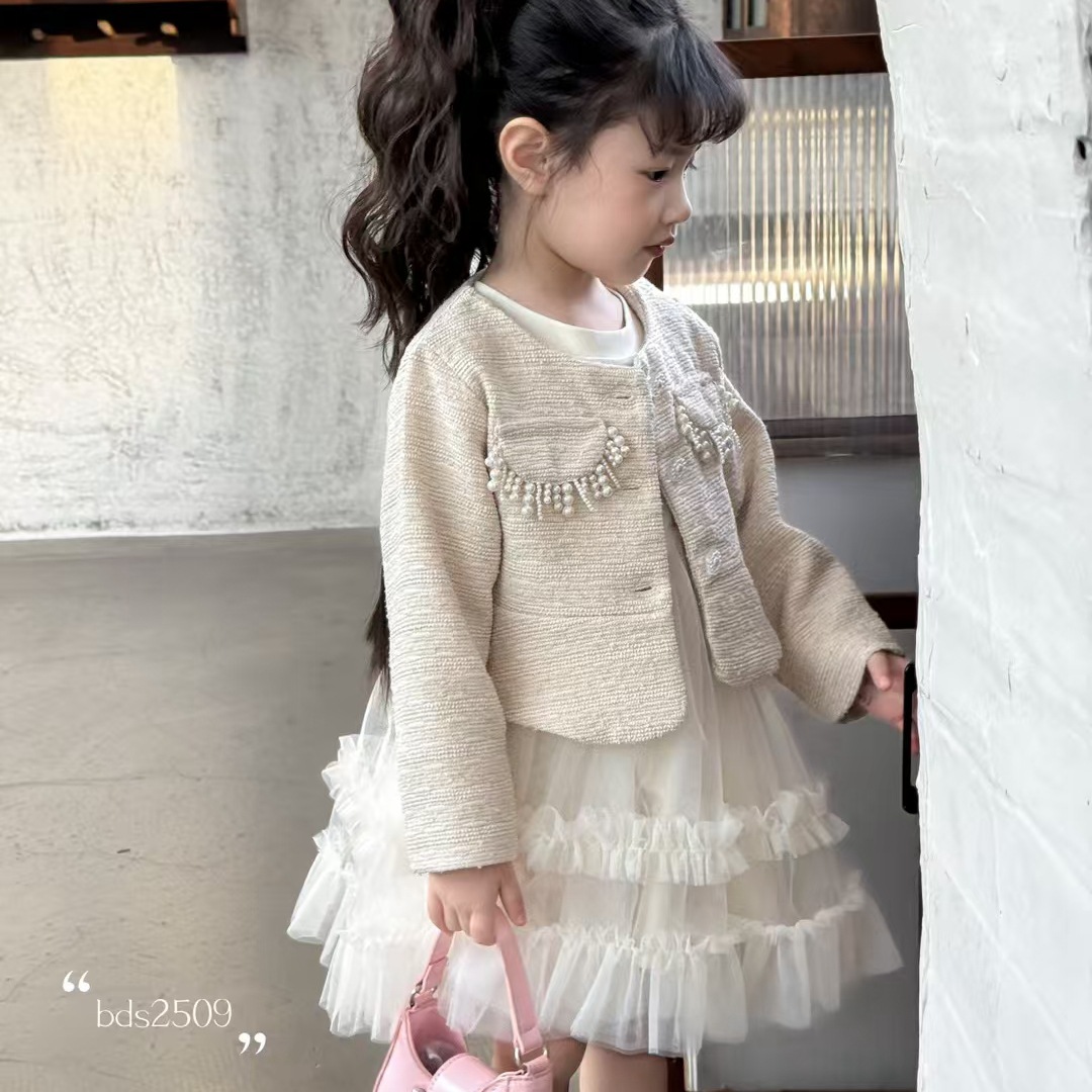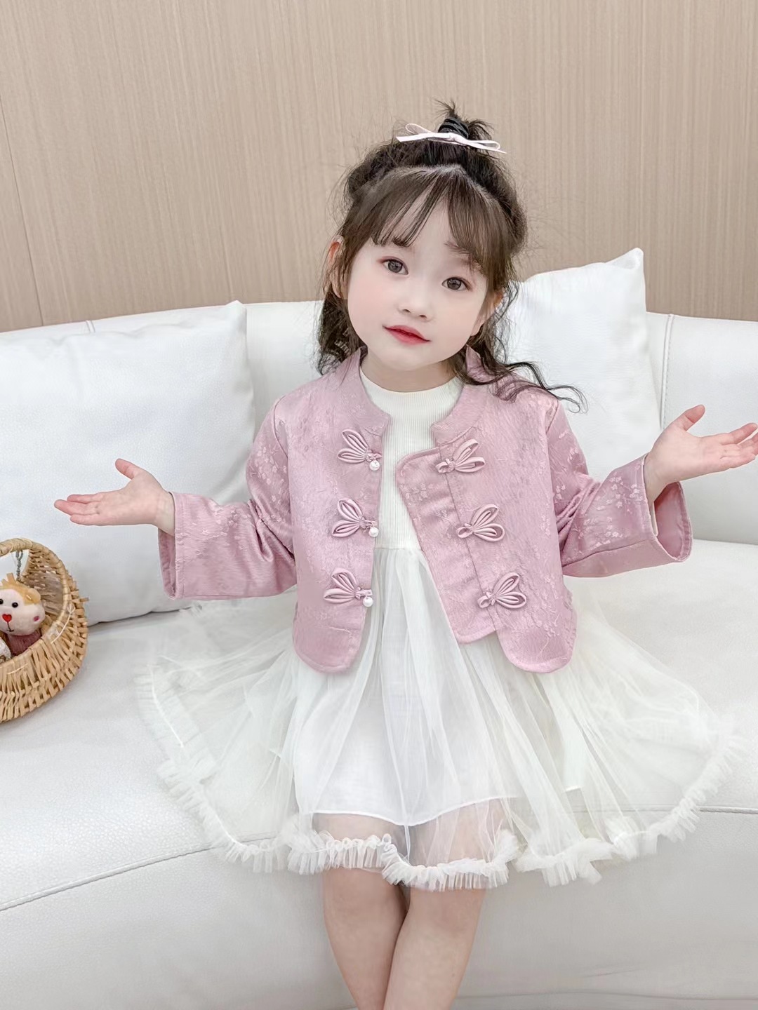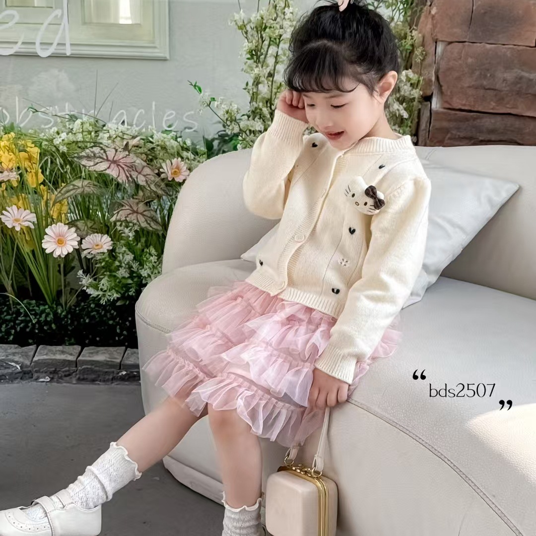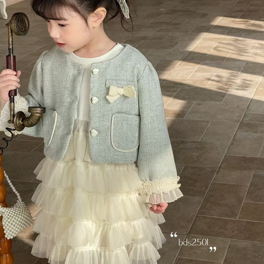 2025女童连衣裙子春季连衣裙两件套童装布袋开衫香风外套针织衫스토어 가기