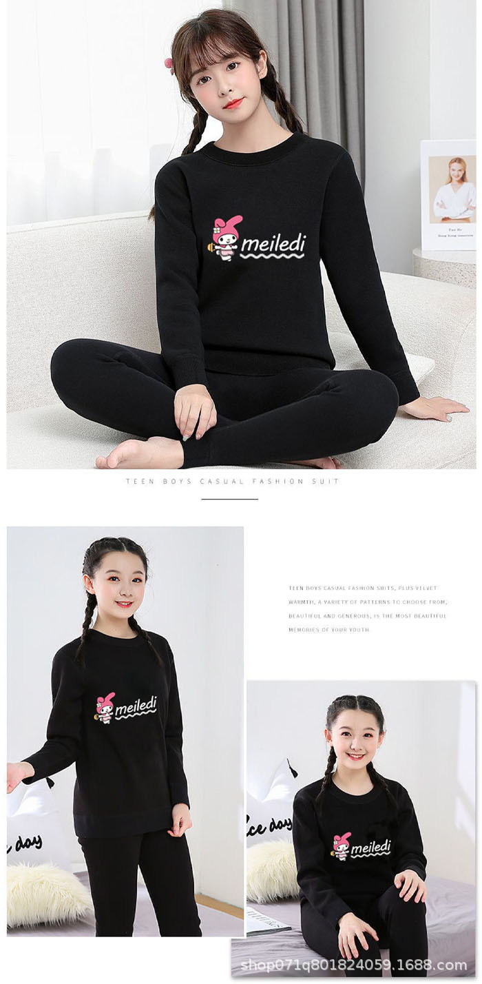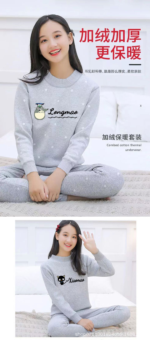 가을과 겨울 긴팔 바지 가을 옷 가을 바지 여자 기모 학생 소녀 큰 아이 학생 만화 간단한 속옷 세트