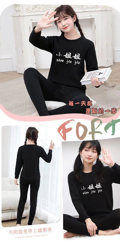 가을과 겨울 긴팔 바지 가을 옷 가을 바지 여자 기모 학생 소녀 큰 아이 학생 만화 간단한 속옷 세트스토어 가기