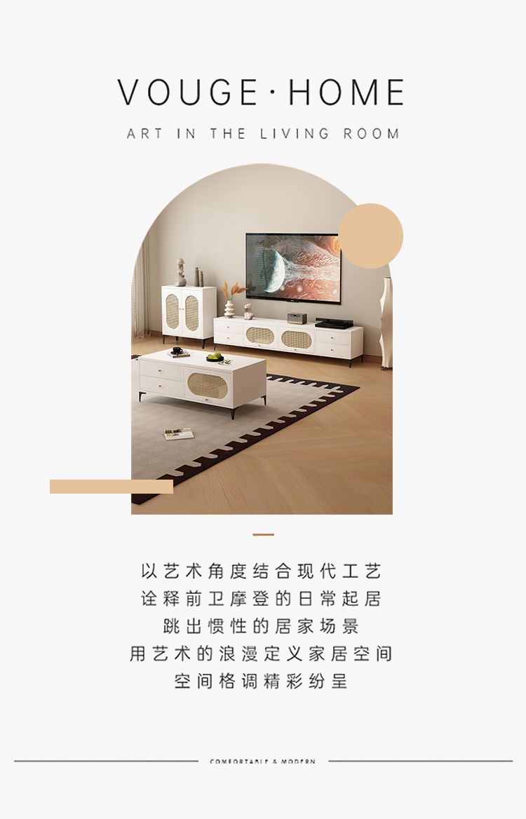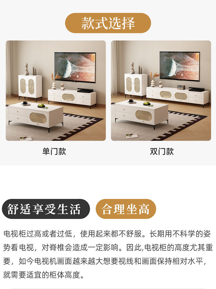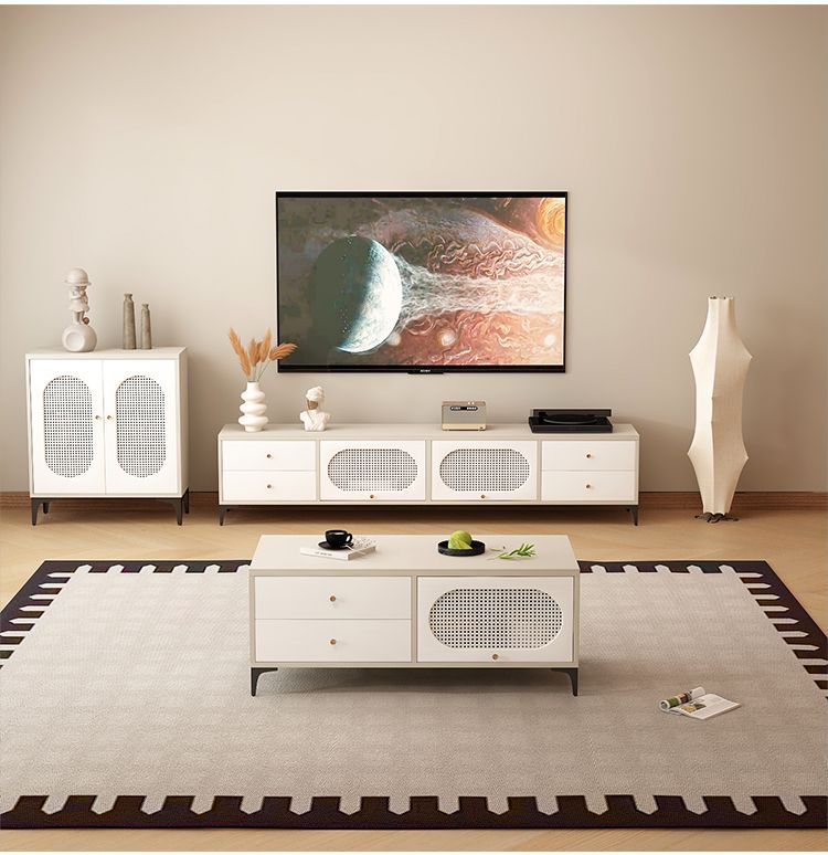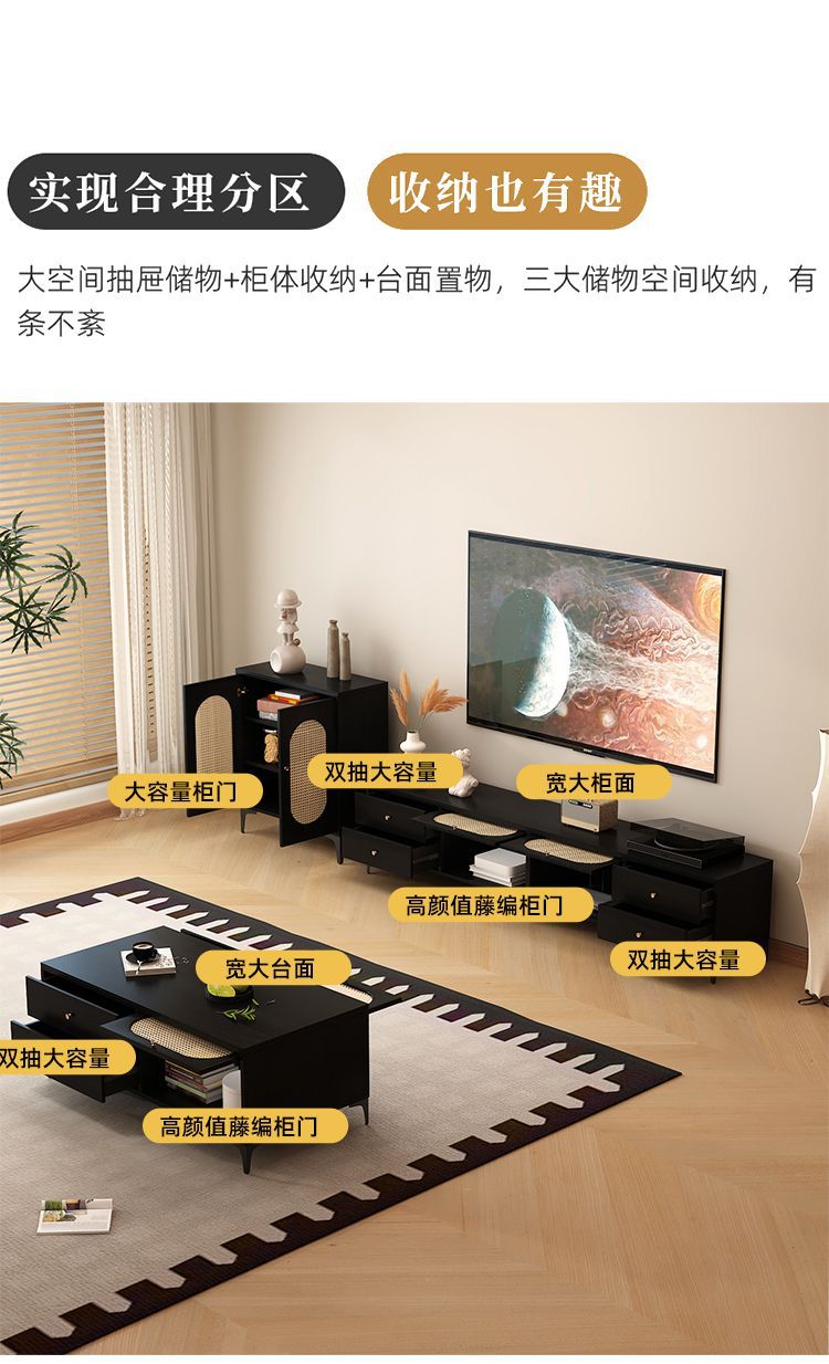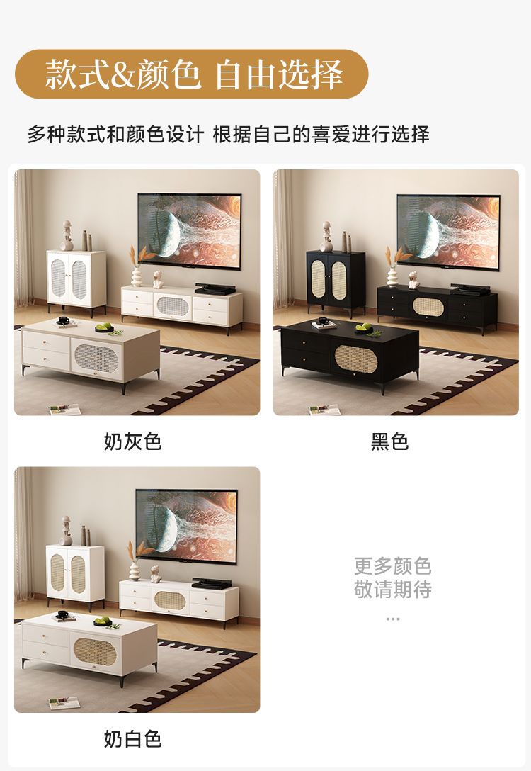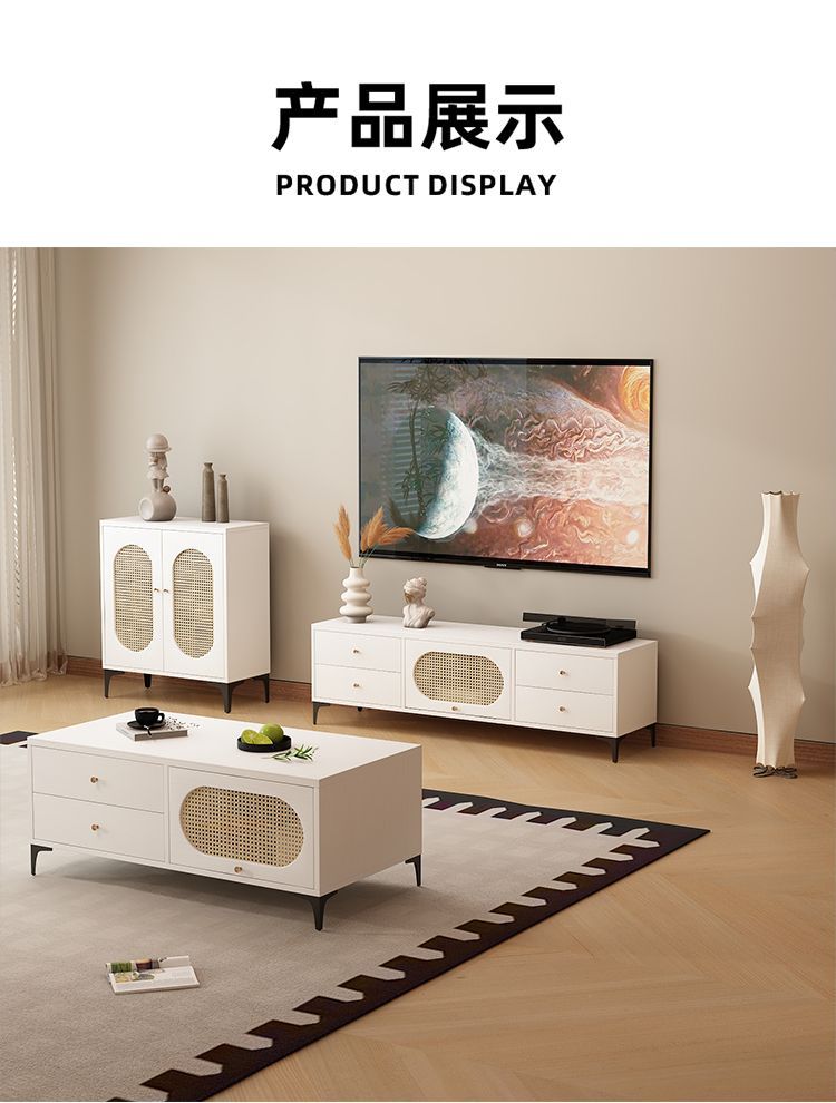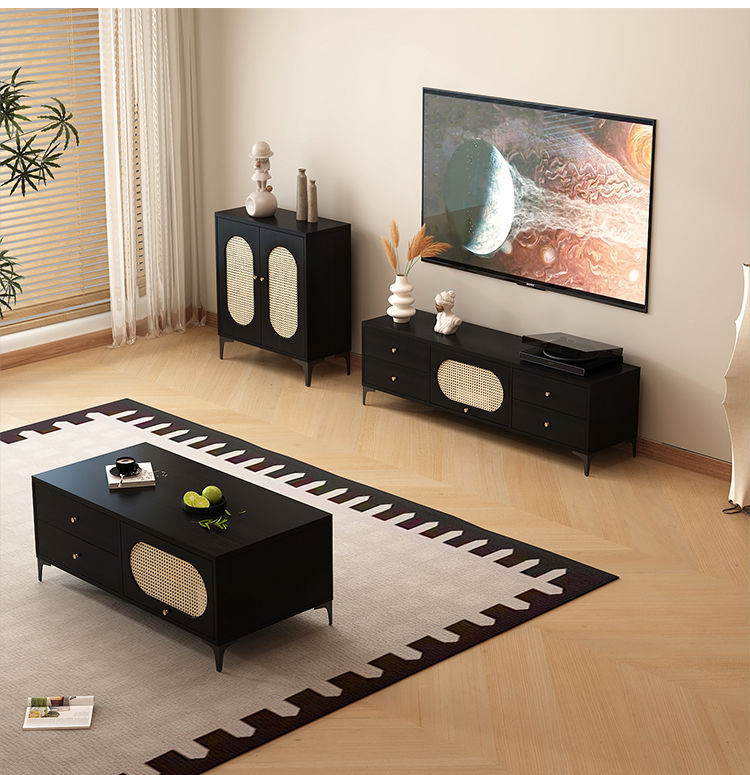 미국의 새로운 복고풍 등나무 TV 캐비닛과 커피 테이블 조합 작은 아파트 거실 홈 바닥 스토리지 캐비닛