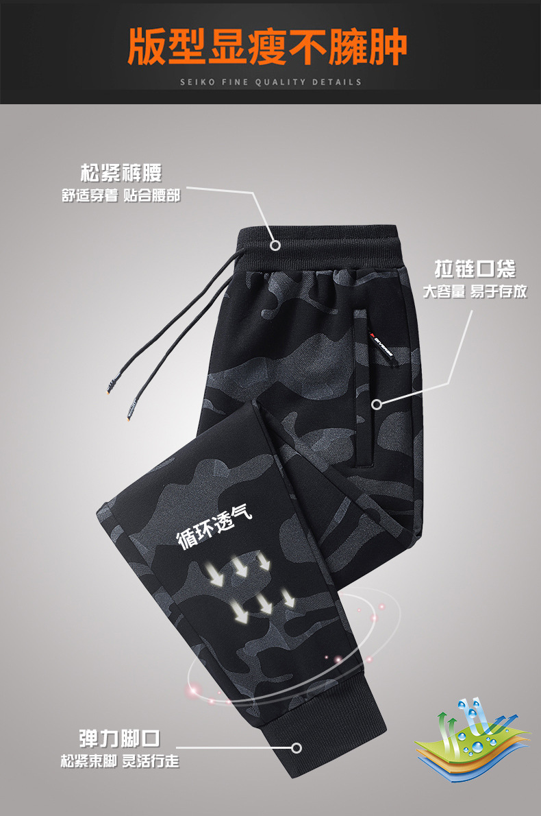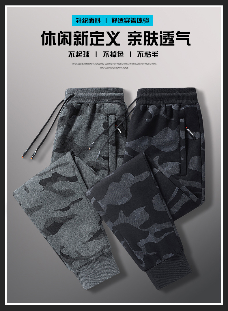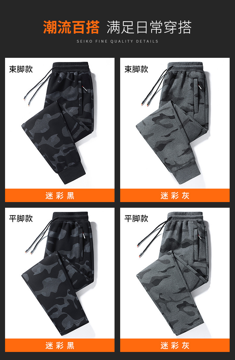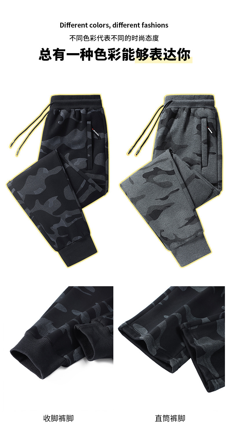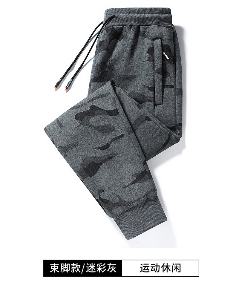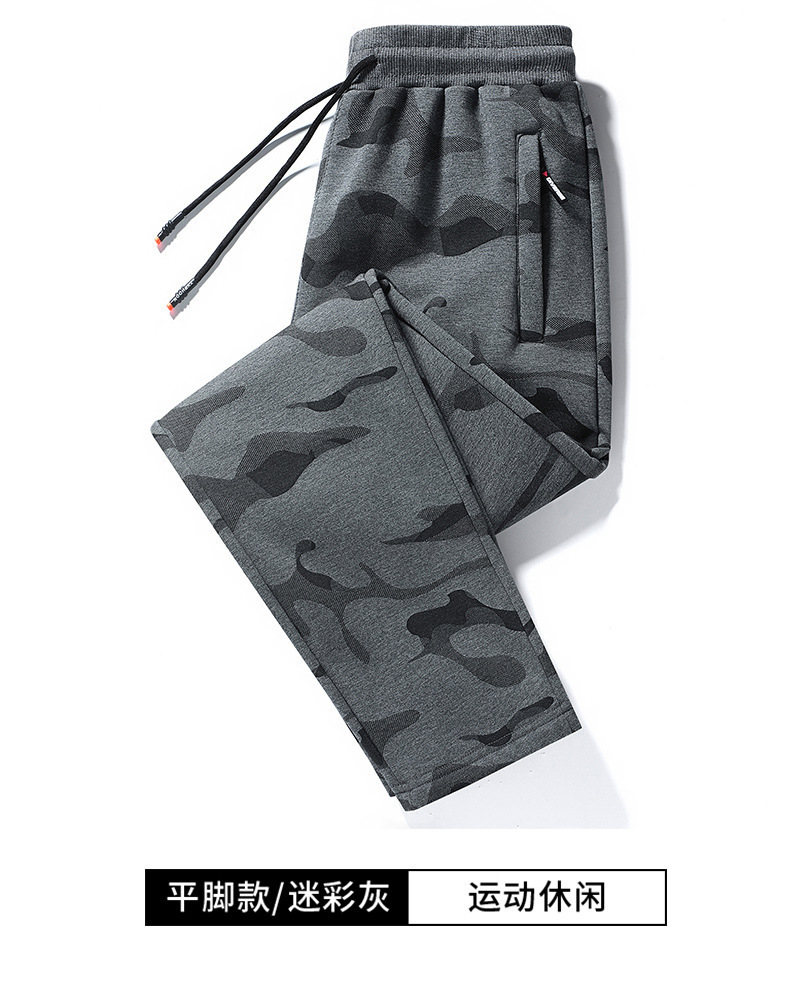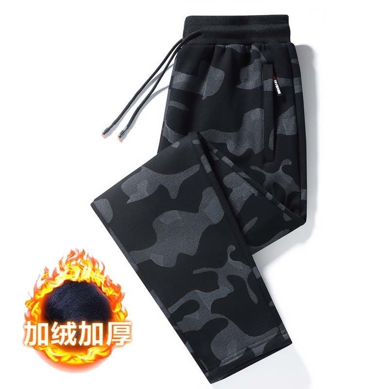 위장 봄 가을과 겨울 새로운 도착 스웨트 팬츠 기모 두꺼운 남자 스포츠 바지 느슨한 여분의 대형 사이즈 트렌디 바지스토어 가기