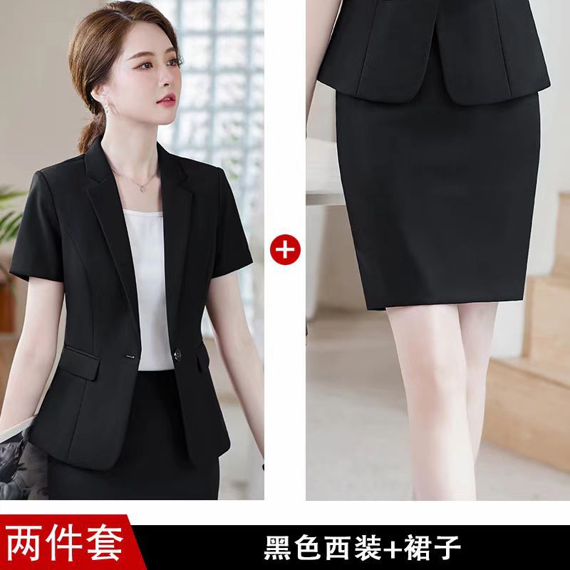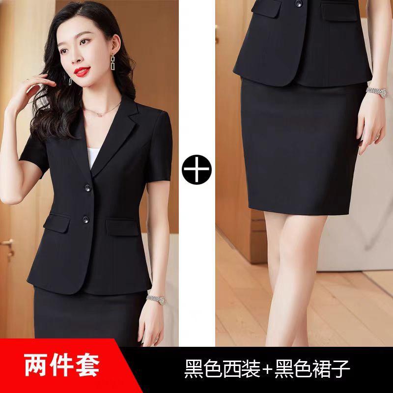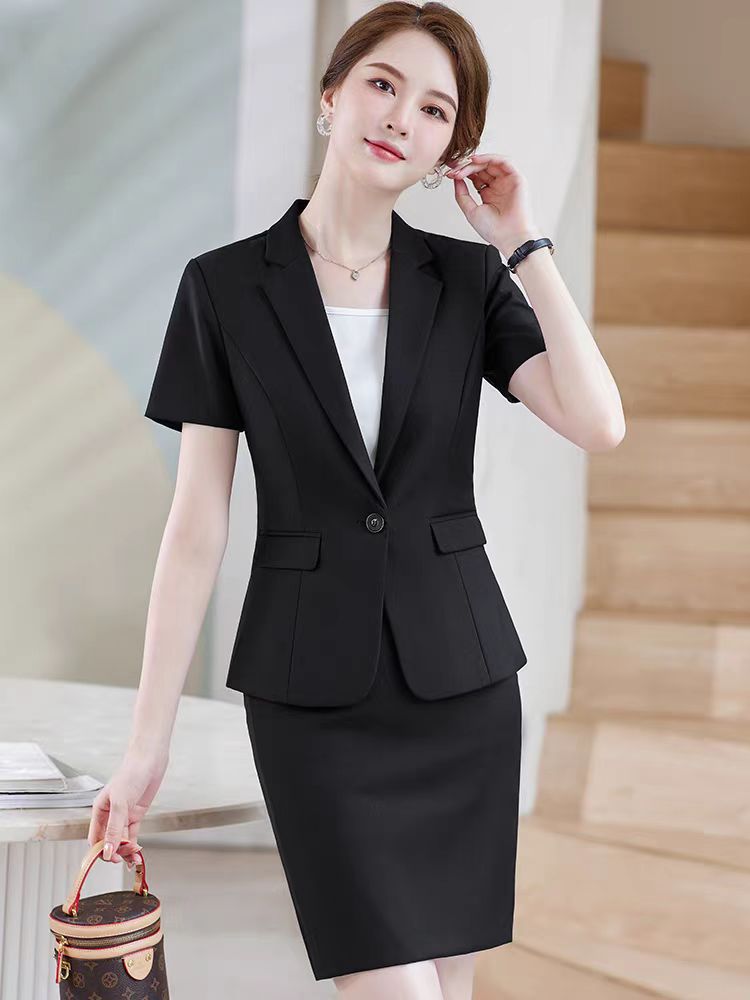 • 2버튼 블랙 반팔 슈트 + 스커트