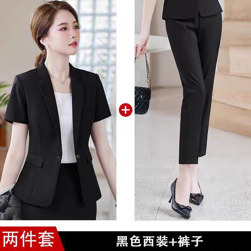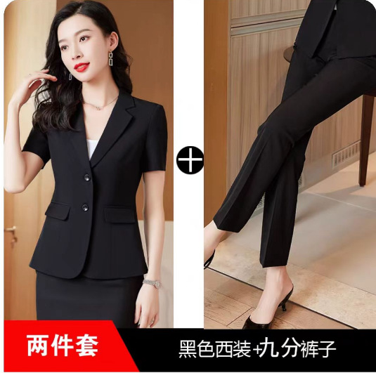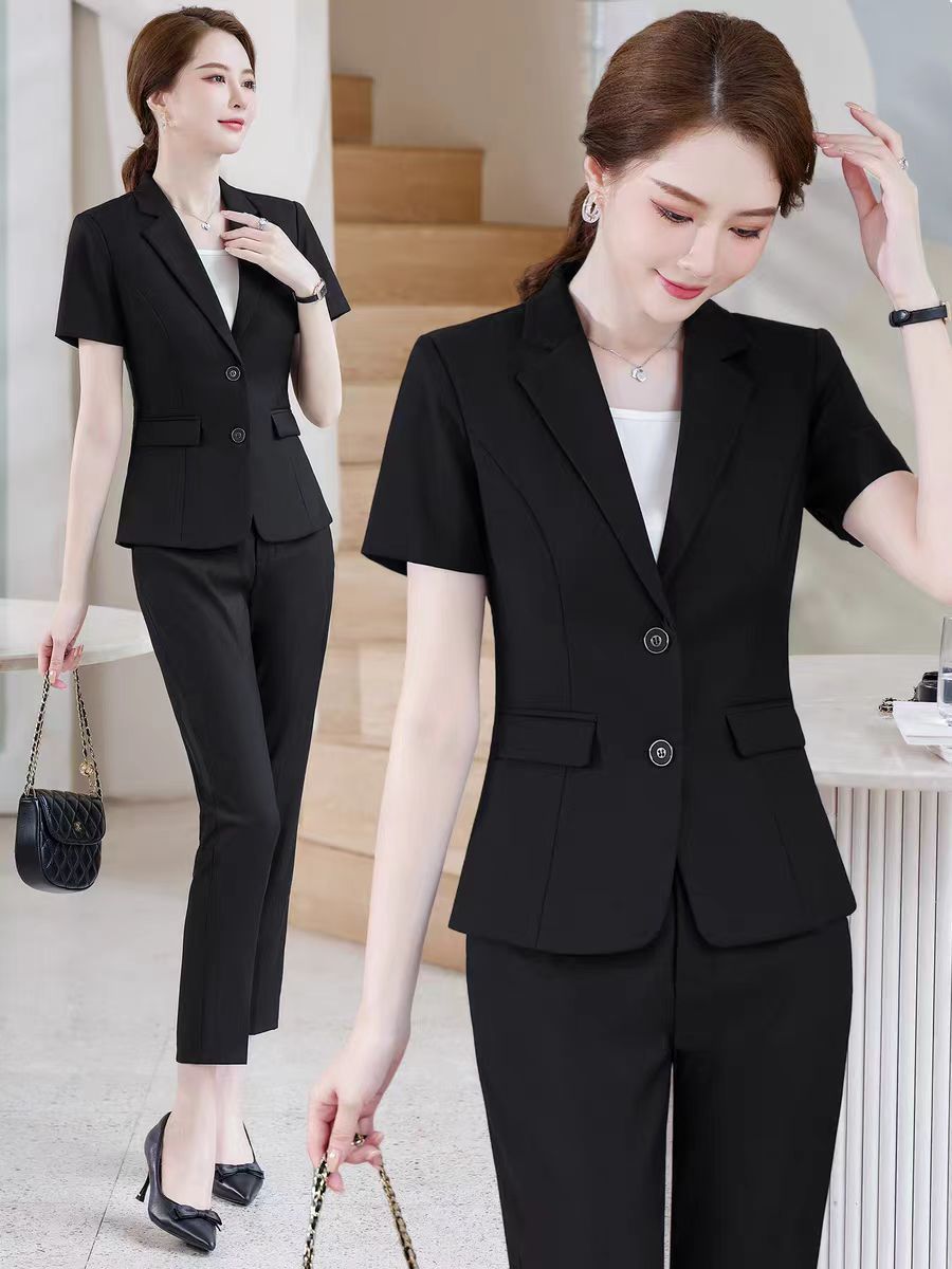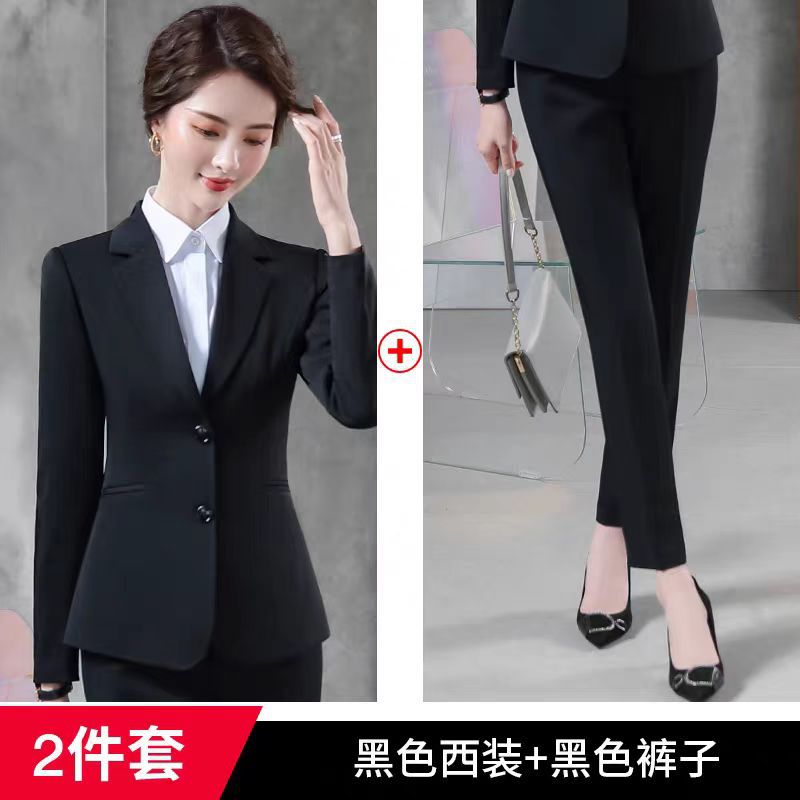 여성을위한 검은 색 작은 정장 정장 봄, 가을 고급 호텔 프론트 데스크 전문 작업복 경력 정장 재킷