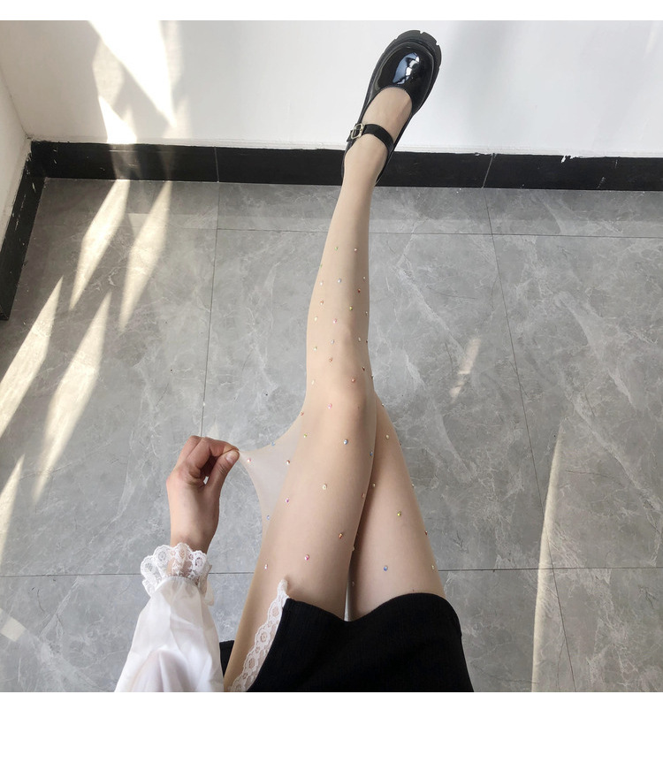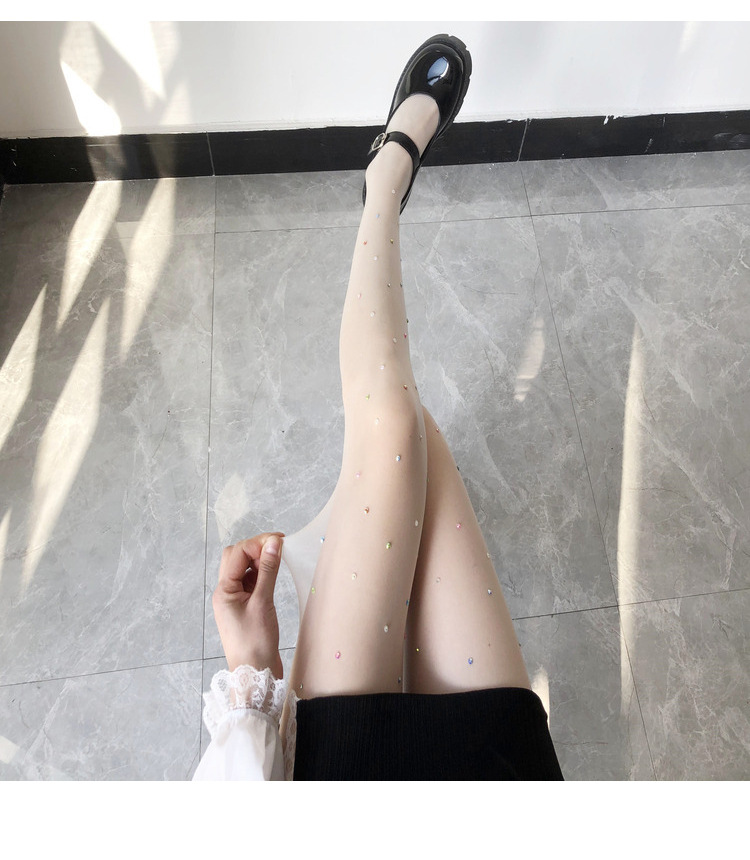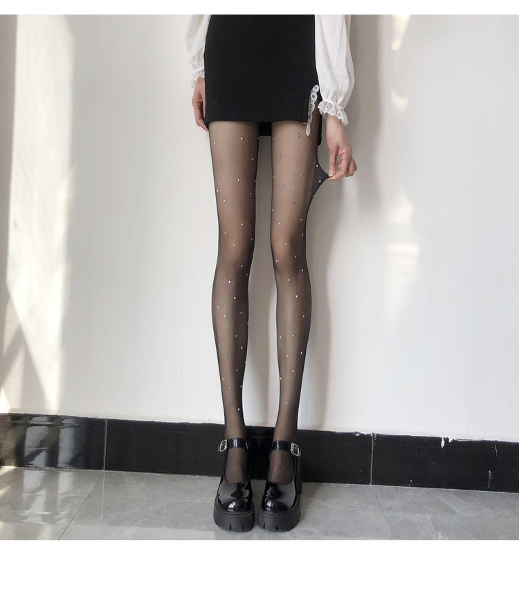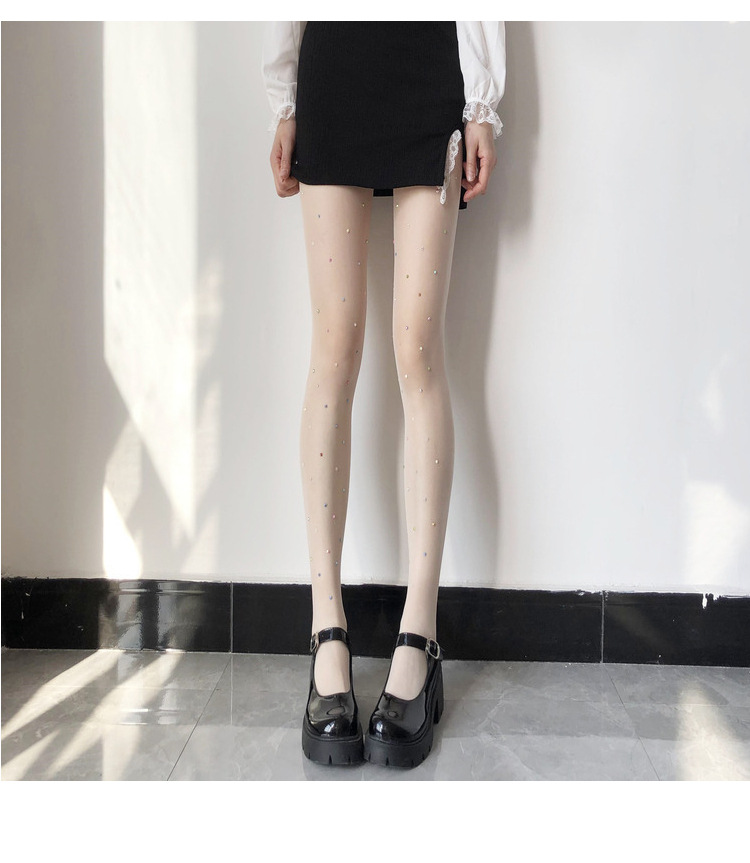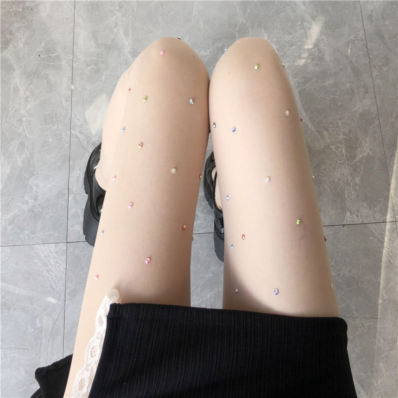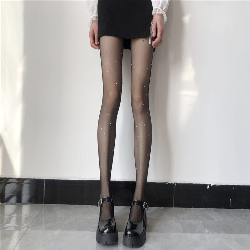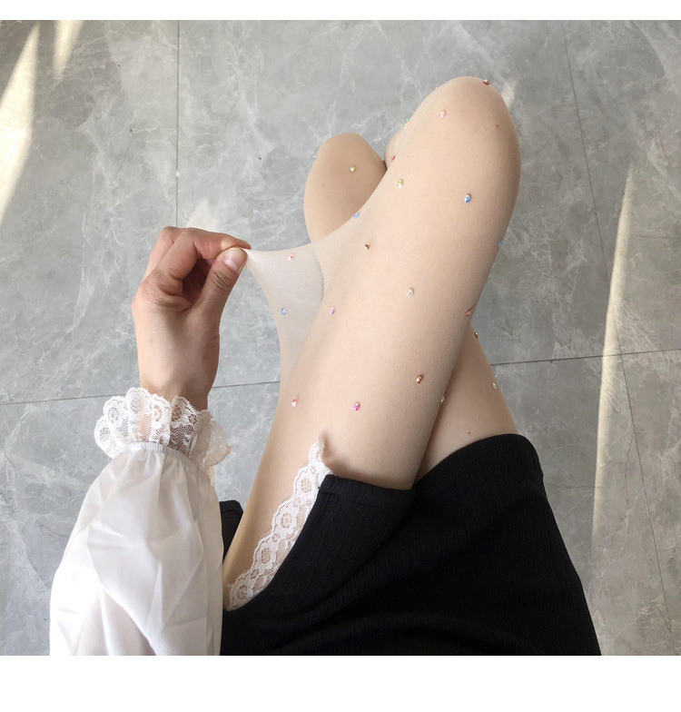 인터넷 연예인 달콤한 향기로운 스타일 핫 컬러 다이아몬드 화이트 실크 스타킹 여성의 봄 가을과 겨울 얇은 Ins 트렌디 한 섹시한 블랙 실크 팬티 스타킹