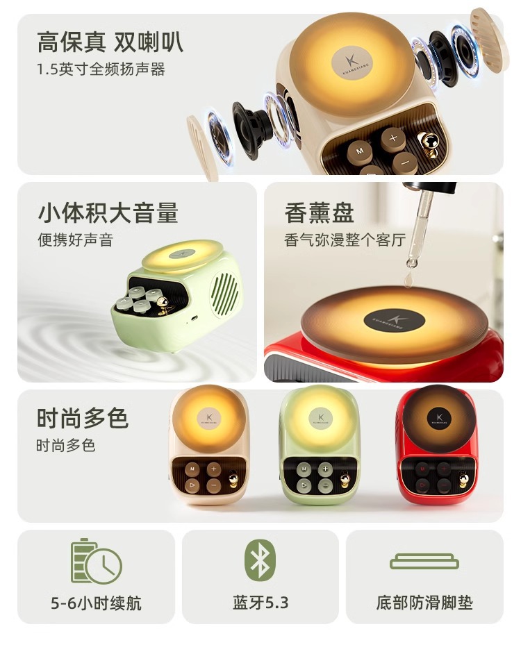 새로운 k12 아로마 테라피 야간 조명 블루투스 스피커 소형 ccd 무선 스피커 홈 장식품 선물 복고풍 크리 에이 티브