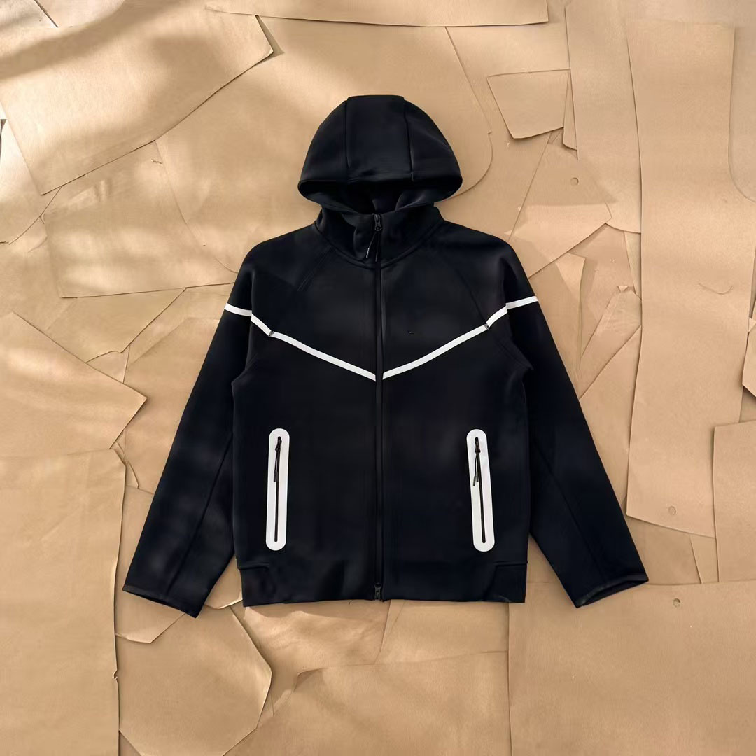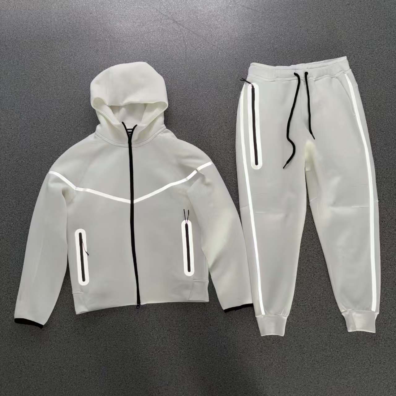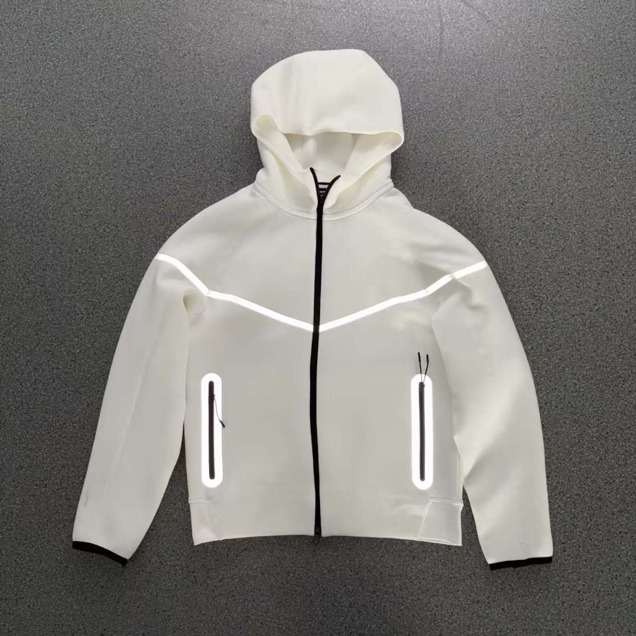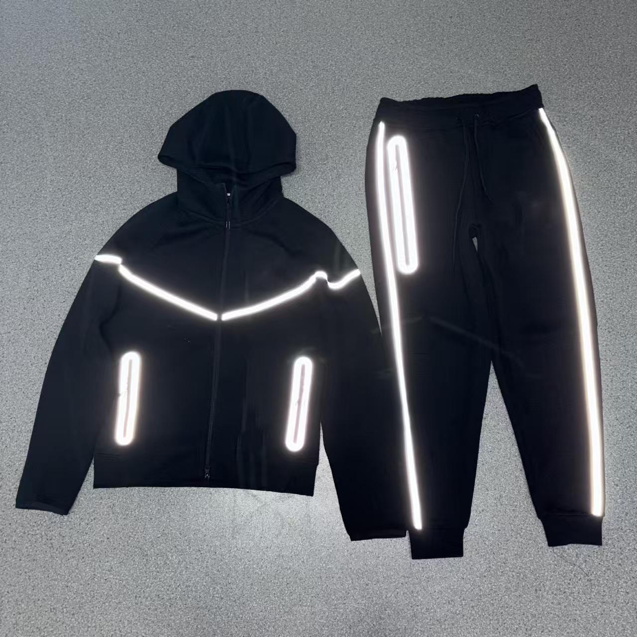 2025 봄 가을 남성 캐주얼 스포츠 반사 스트립 코튼 후드 재킷 및 스웨트팬츠 754 및 762 세트