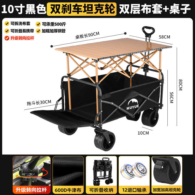 • 블랙 [이중 두꺼운 옥스포드 천] - 상단 구성 / 10inch 탱크 휠 / 더블 브레이크 + 강화된 블랙 테이블