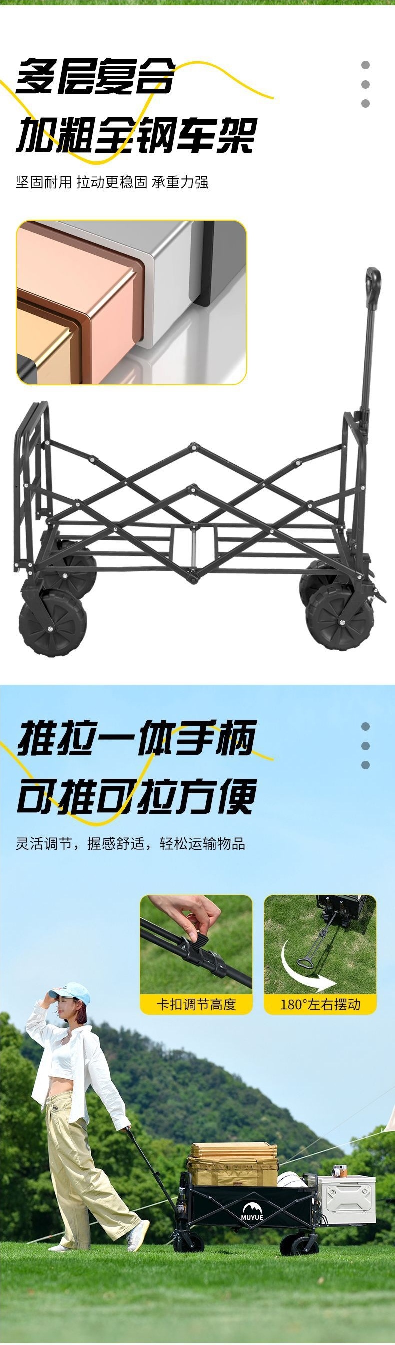 • 블랙 [이중 두꺼운 옥스포드 천] - 대형 / 8inch 오프로드 휠 / 더블 브레이크 / 티핑 버킷 스타일 + 나뭇결 테이블