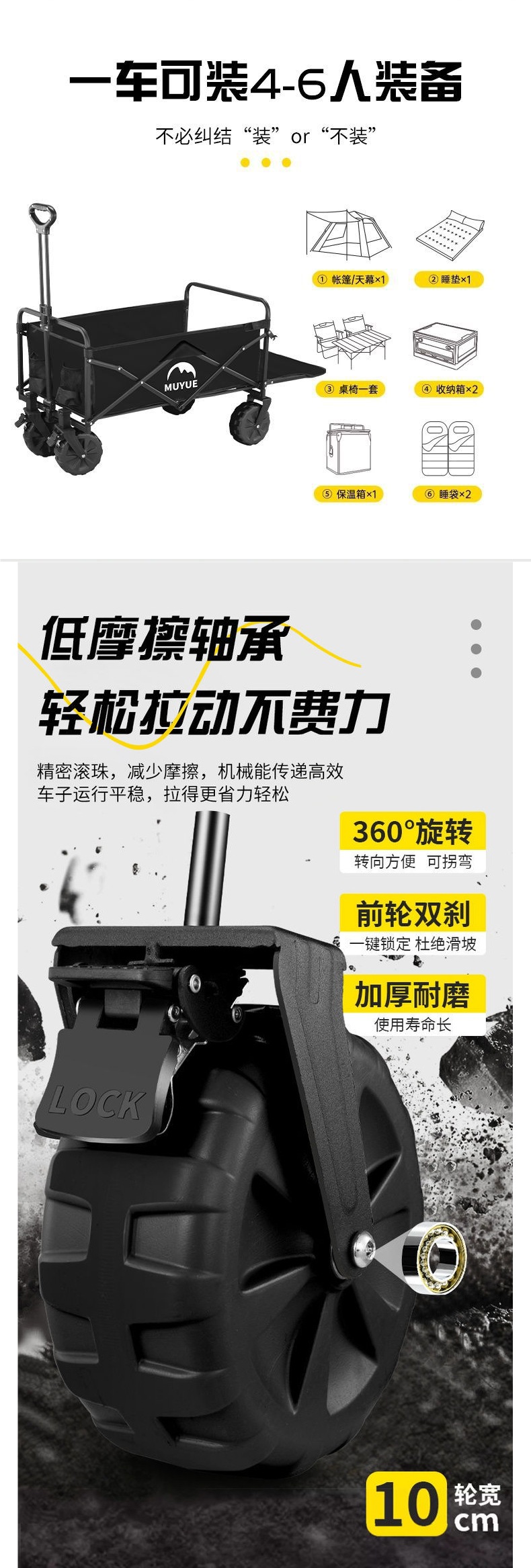• 블랙 [이중 두꺼운 옥스포드 천] - 업그레이드 / 8inch 오프로드 휠 / 더블 브레이크 + 강화된 나뭇결 테이블