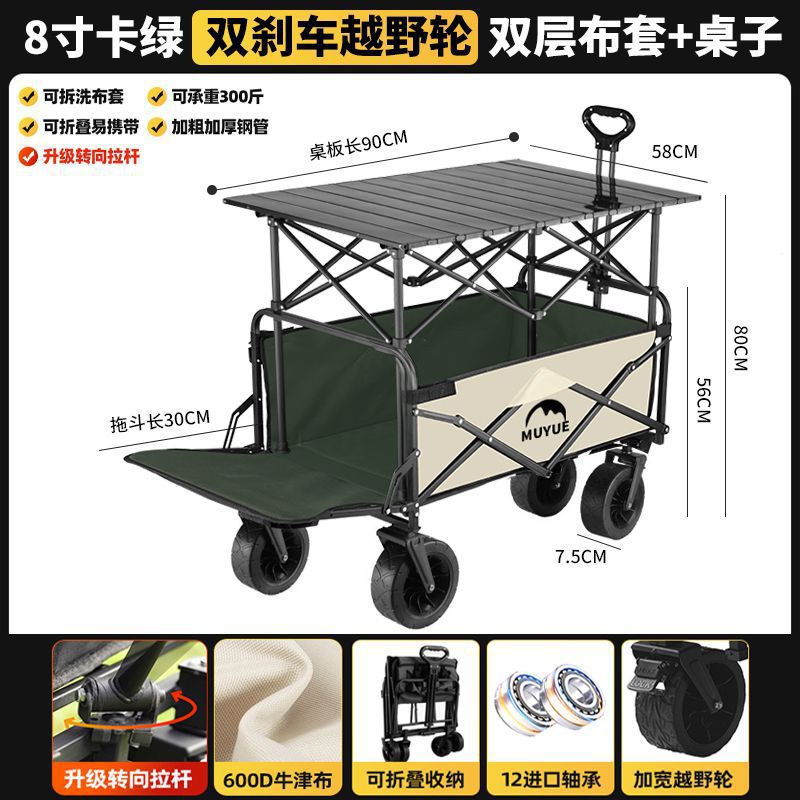 • 카드 그린 [이중 두꺼운 옥스포드 천] - 업그레이드/ 8inch 오프로드 휠/더블 브레이크 + 강화된 나뭇결 테이블