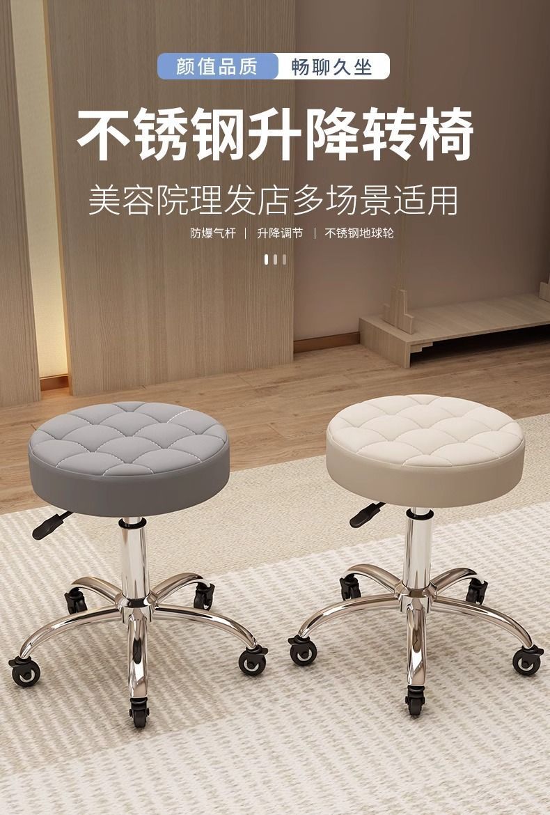 이발소 대형 작업 의자, 미용실 특수 리프팅 원형 의자, 미용실 회전 휠 메이크업 및 매니큐어 회전 의자 바 의자스토어 가기