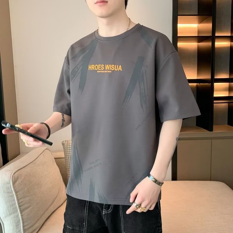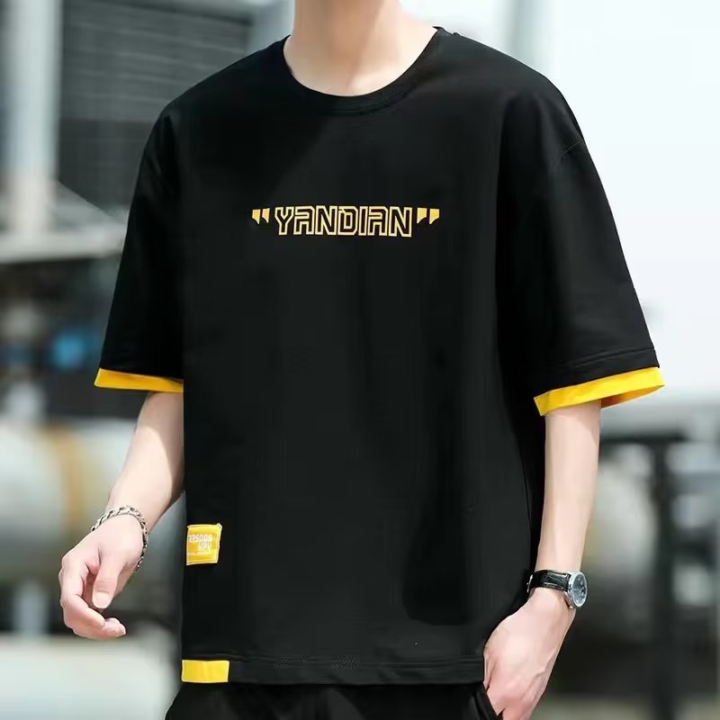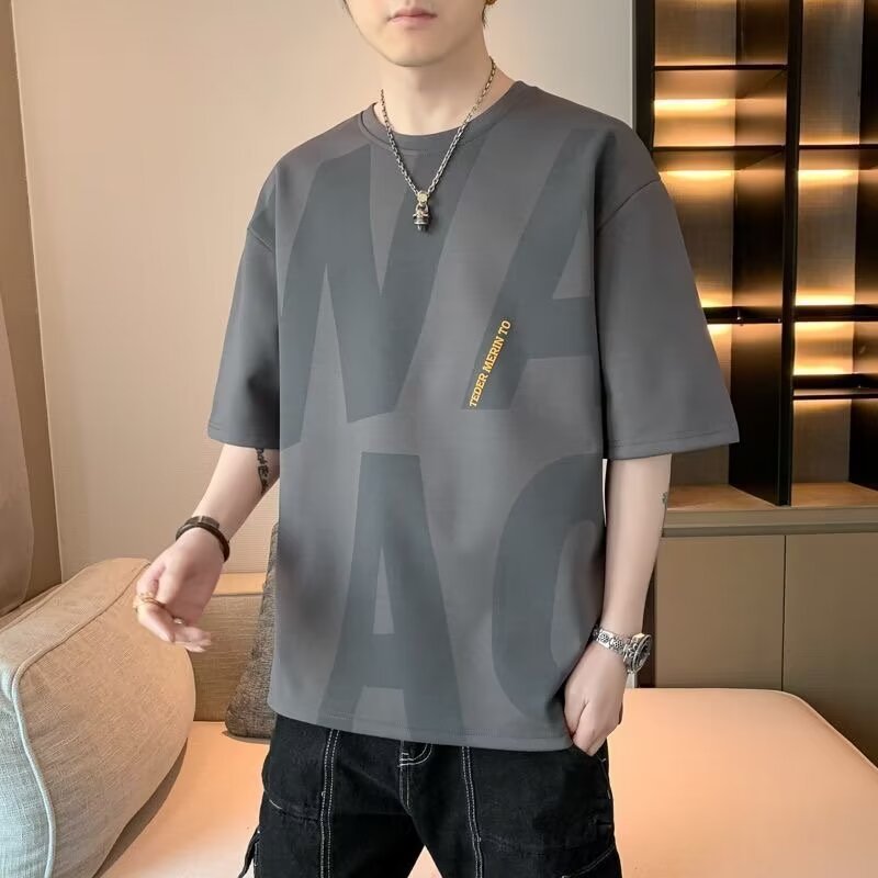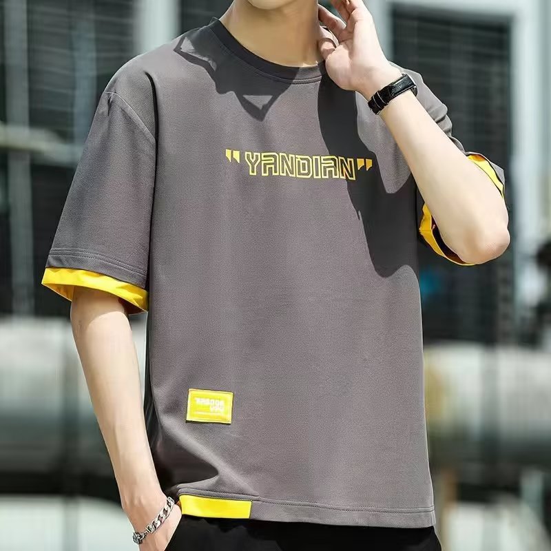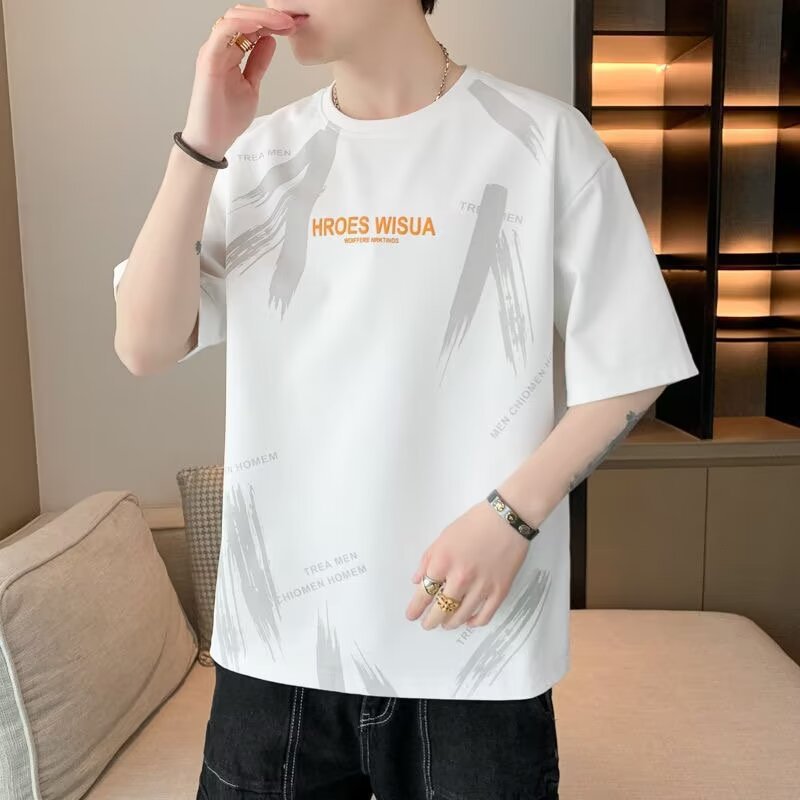 대외 무역 남자 반팔 티셔츠 Ins 트렌디 올 매치 티셔츠 핸즈섬 반팔 심플 여름 남자 탑 옷스토어 가기