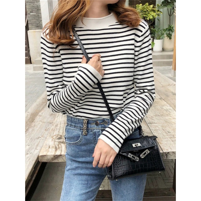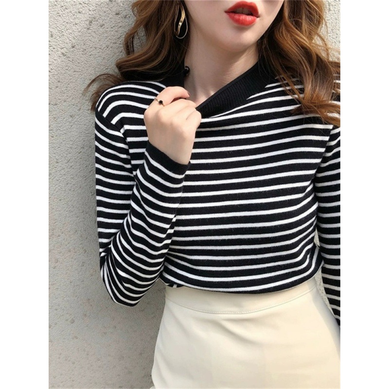 반터틀넥 스트라이프 스웨터 여자 2022 년 초가을 신설 루즈쇼트스웨터 올매치 한국식 베이스셔츠 탑스토어 가기