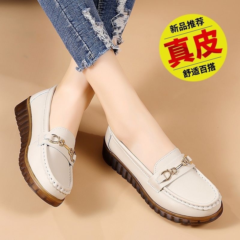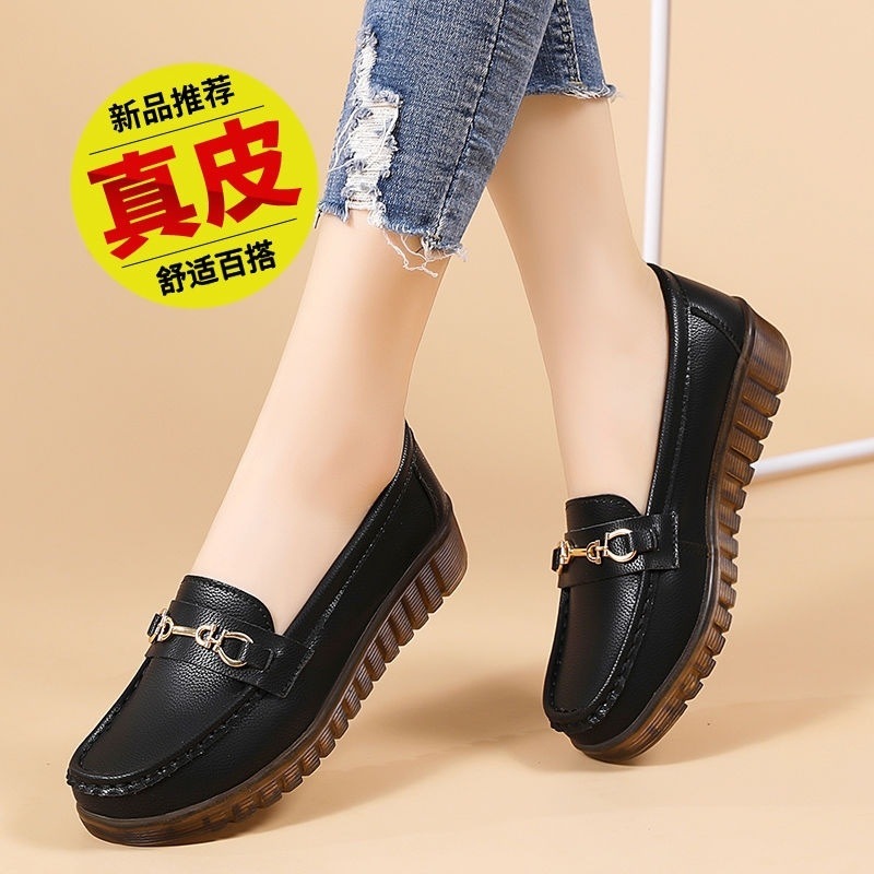 [1035 환매] 진짜 부드러운 피부 콩 신발 여성 2025 봄 새 싱글 신발 여성 캐주얼 플랫 신발 여성 소프트스토어 가기