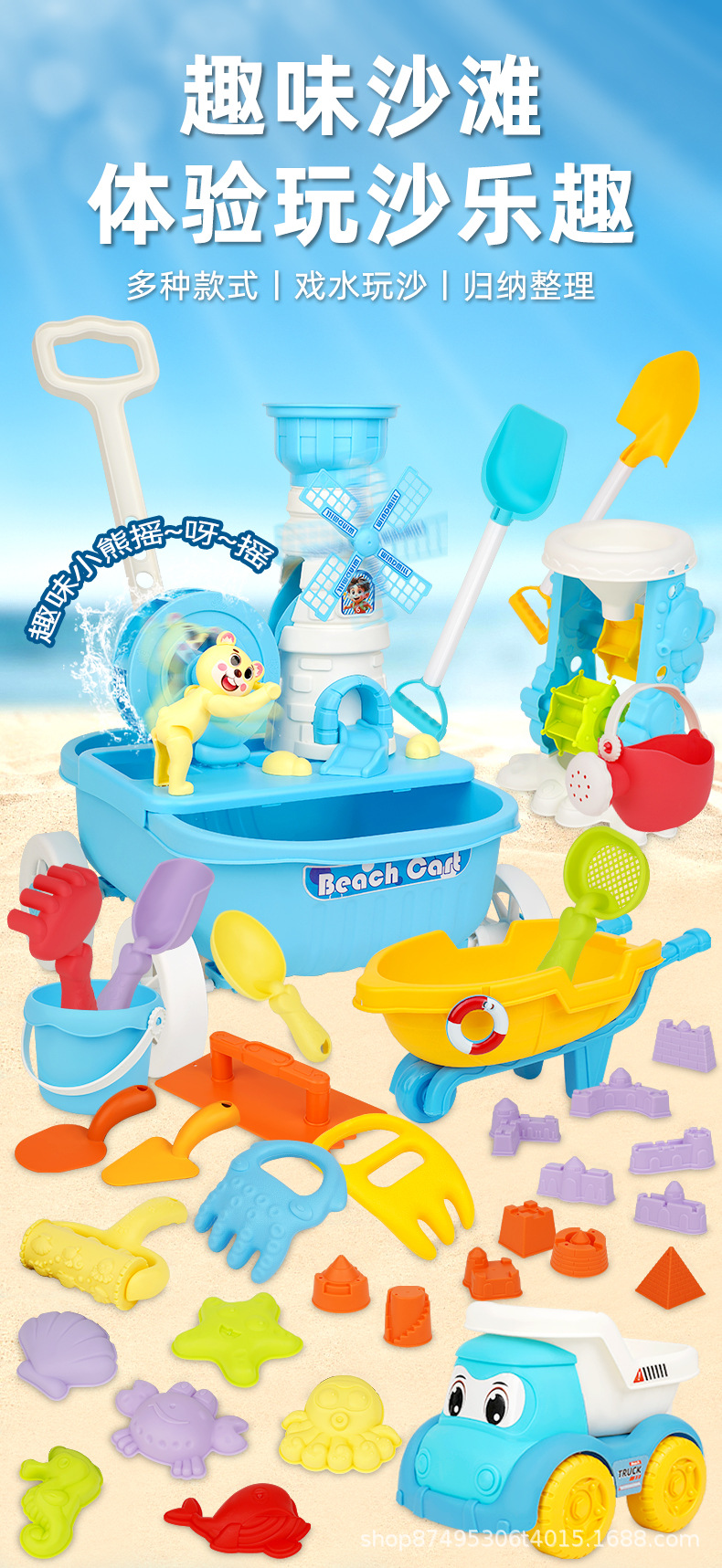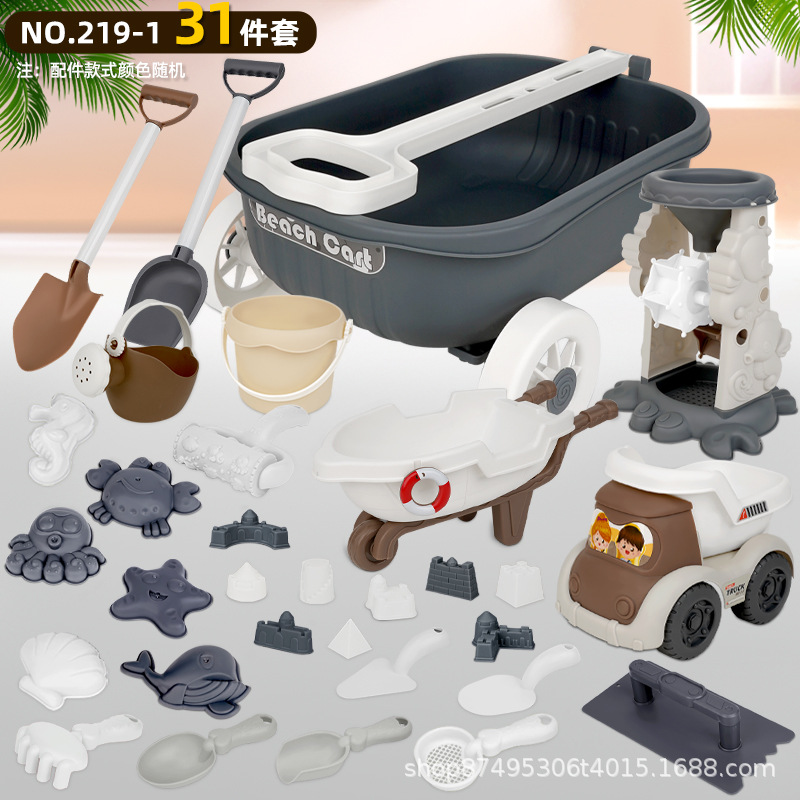 어린이 해변 장난감 세트 아기 물놀이 모래놀이 도구 모래시계 자동차 삽 양동이 유치원 선물 남녀공용스토어 가기