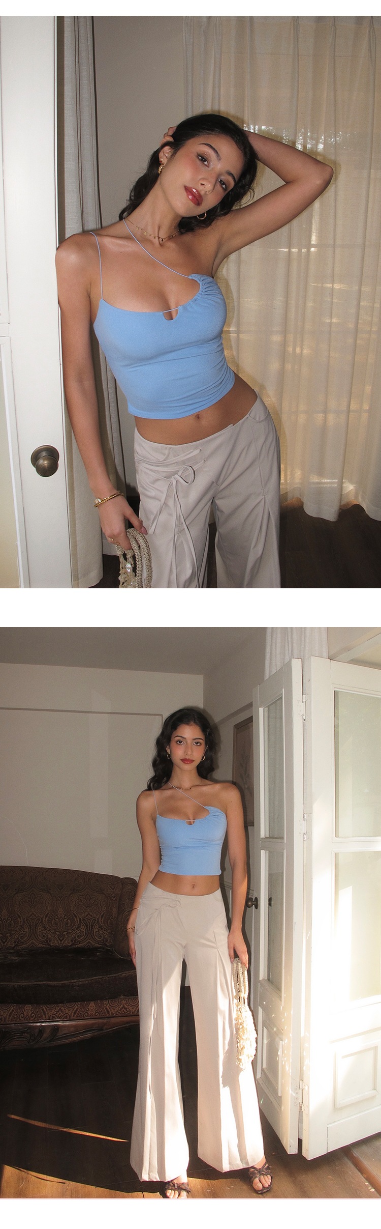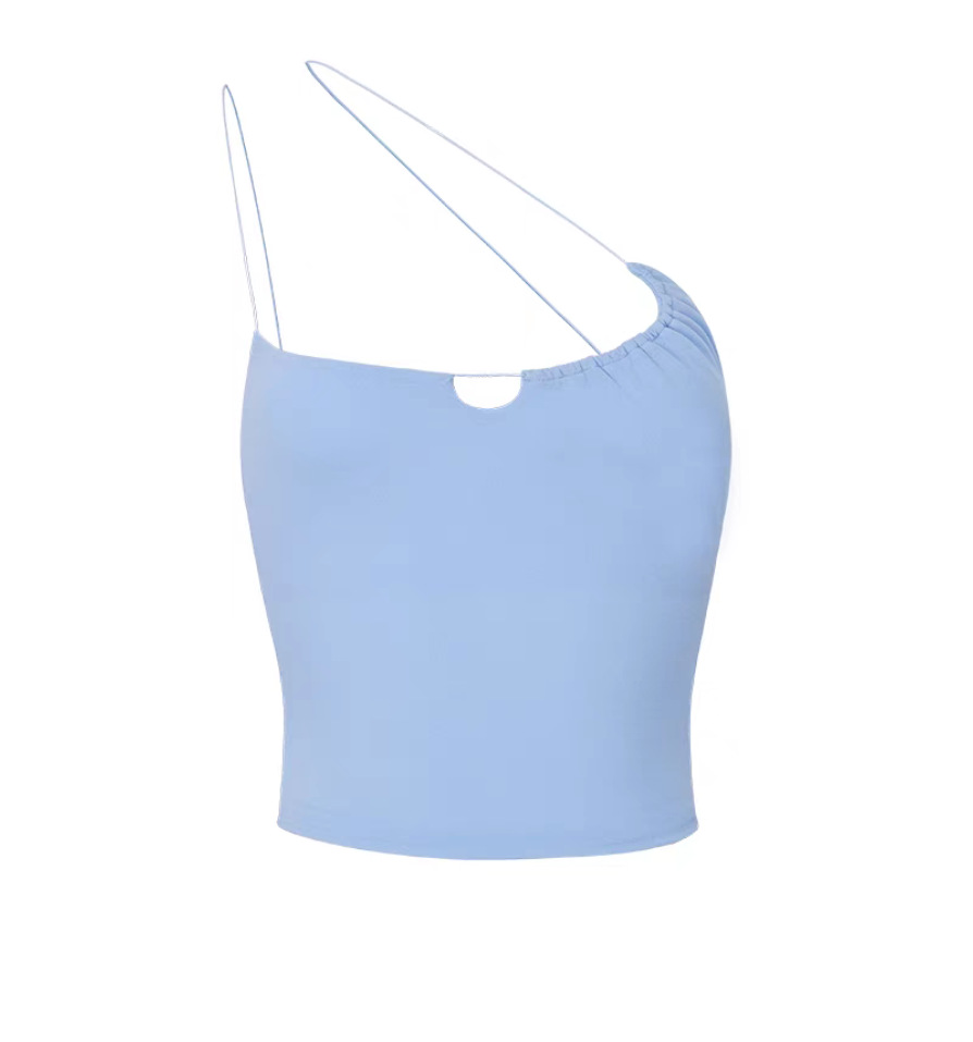 스파게티 스트랩 스포츠 조끼, 원 숄더 중공 마이크로 주름 서스펜더, 아름다운 등 푸쉬업, 전문 런닝 피트니스 브라, 요가 백스토어 가기