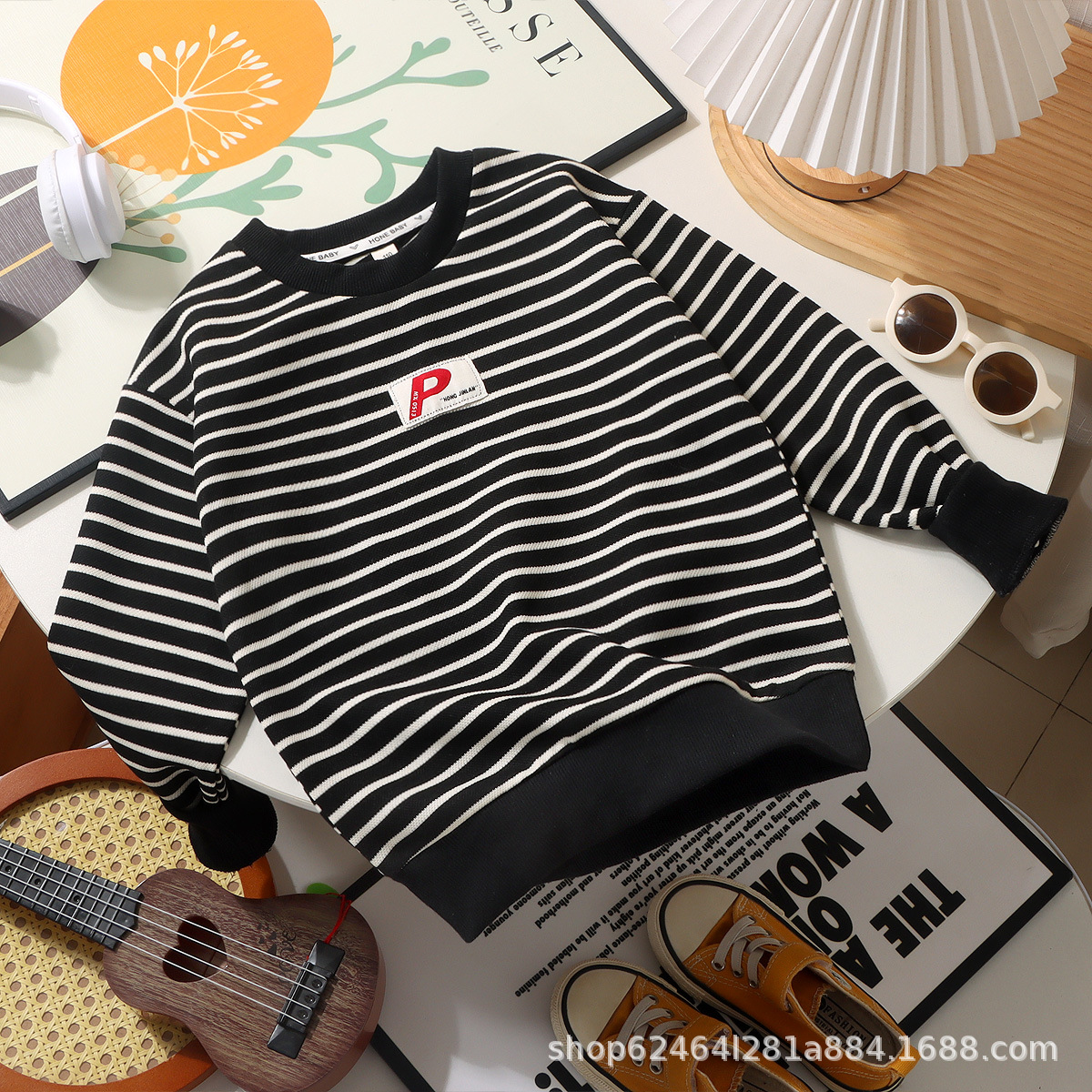어린이 줄무늬 긴 소매 스웨터 봄과 가을 새로운 큰 어린이 둥근 목 느슨한 스웨터 어린이 스웨터 도매