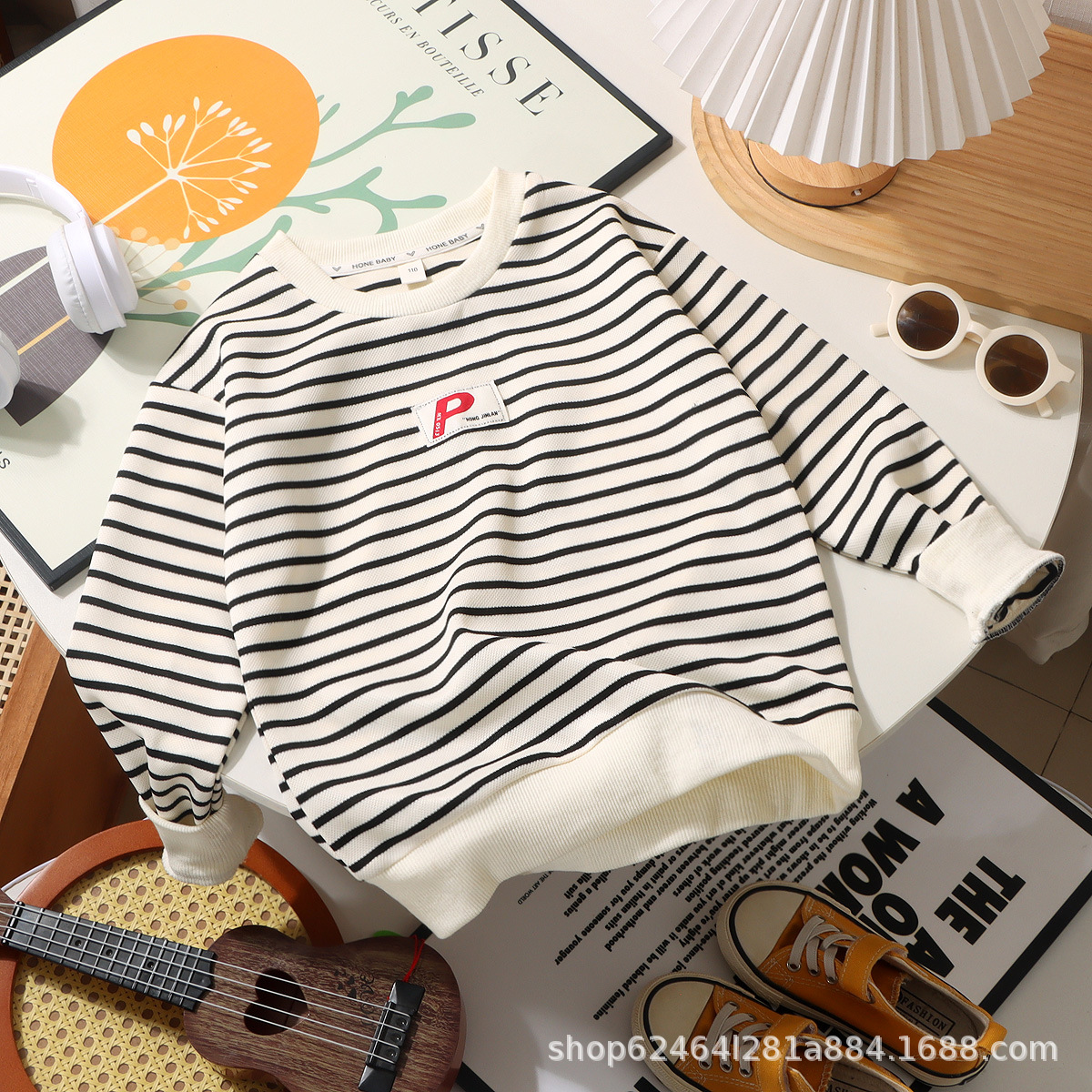 어린이 줄무늬 긴 소매 스웨터 봄과 가을 새로운 큰 어린이 둥근 목 느슨한 스웨터 어린이 스웨터 도매스토어 가기