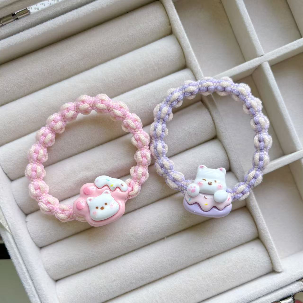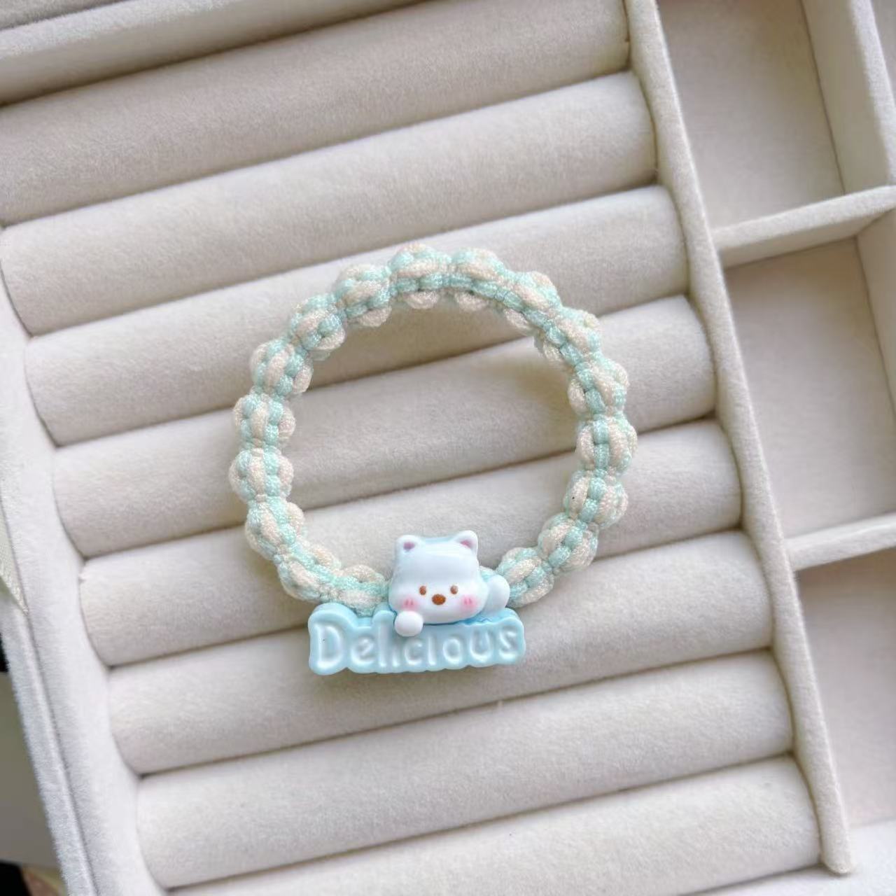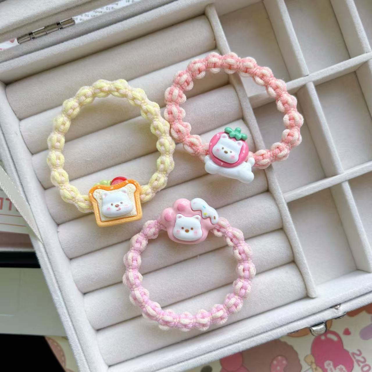 만화 귀여운 우유 흰 곰 머리 반지 소녀 달콤한 머리 밧줄 다채로운 짠 머리 로프 커플 고무 밴드 헤드웨어스토어 가기