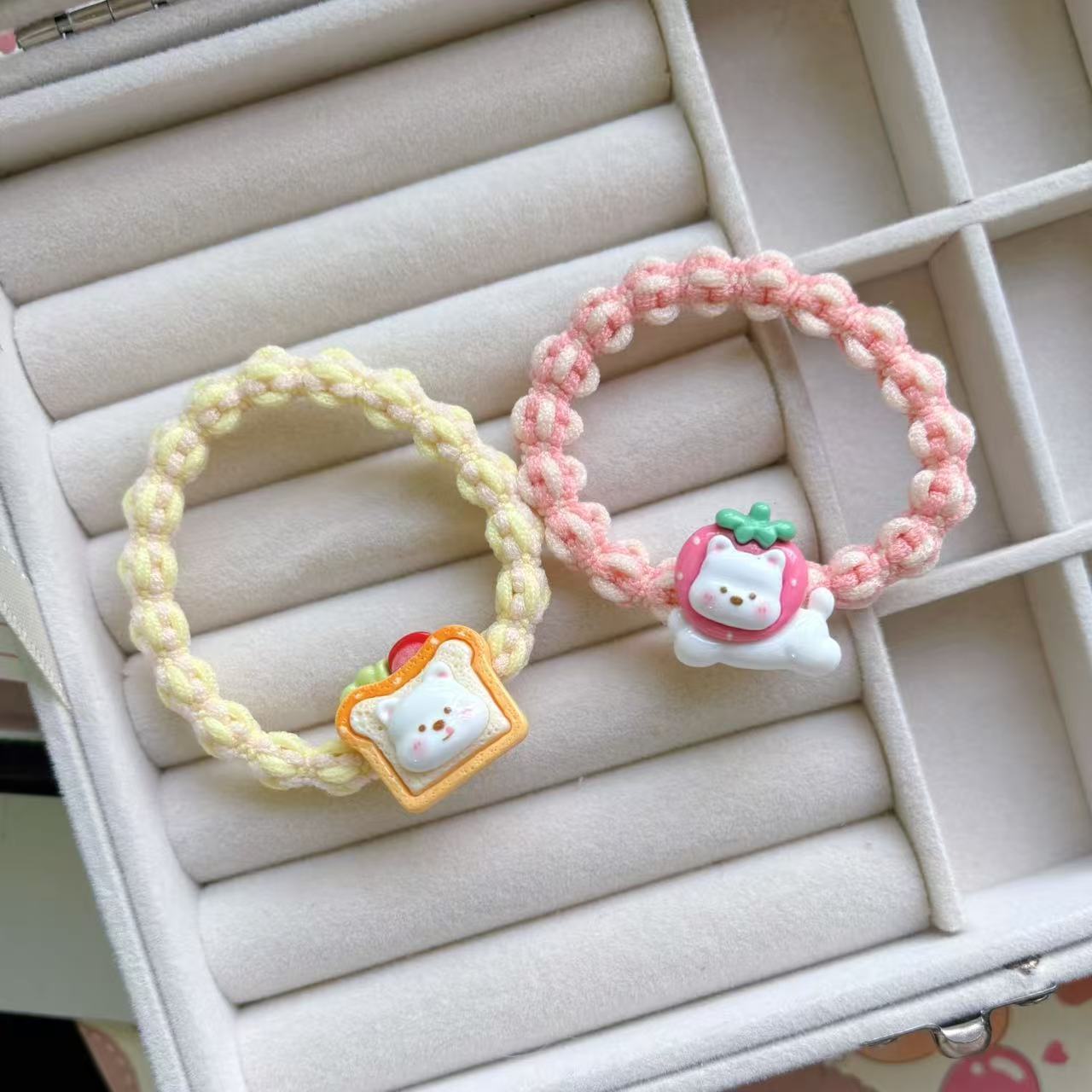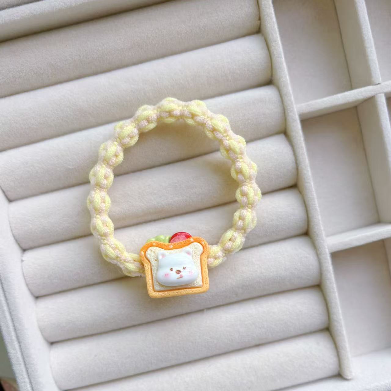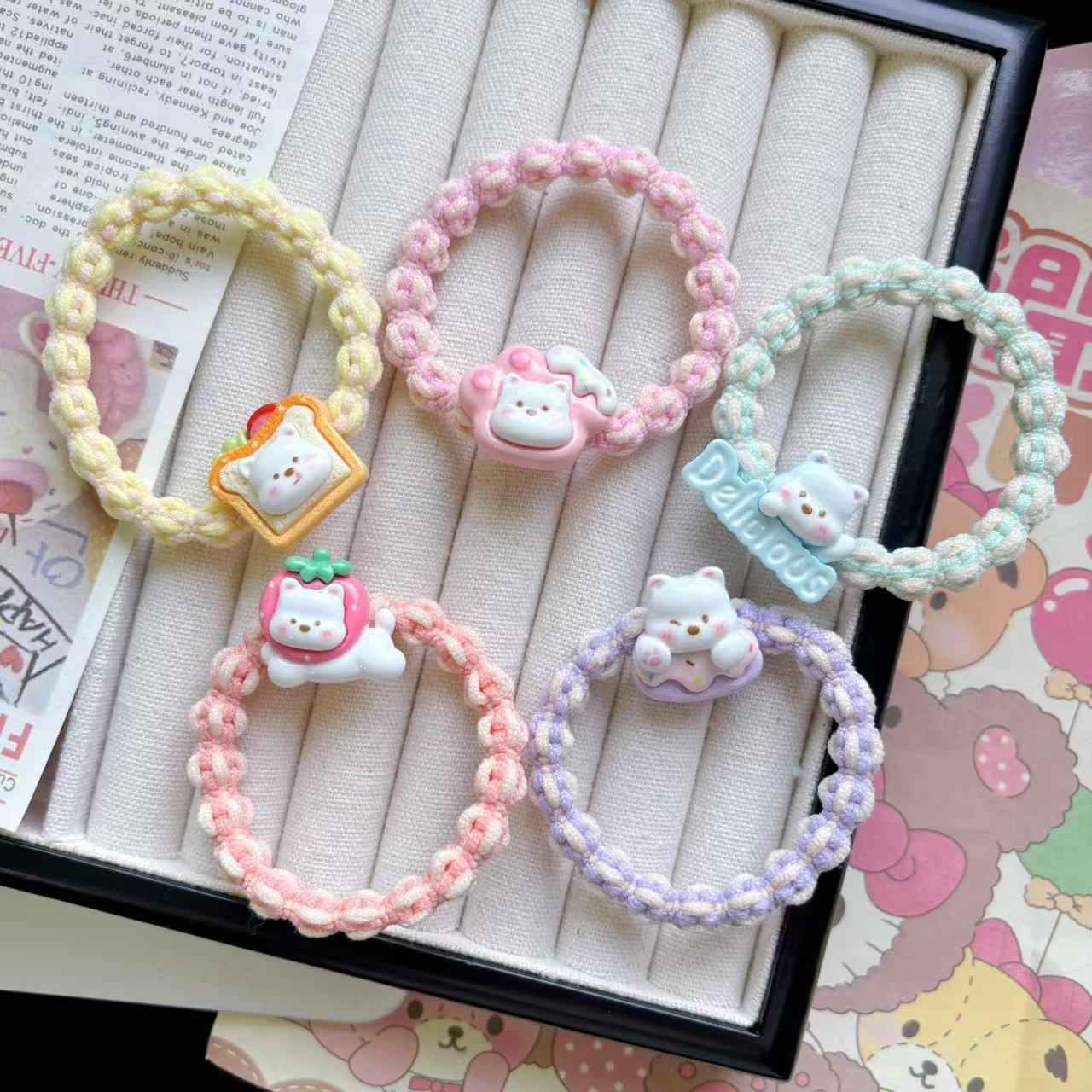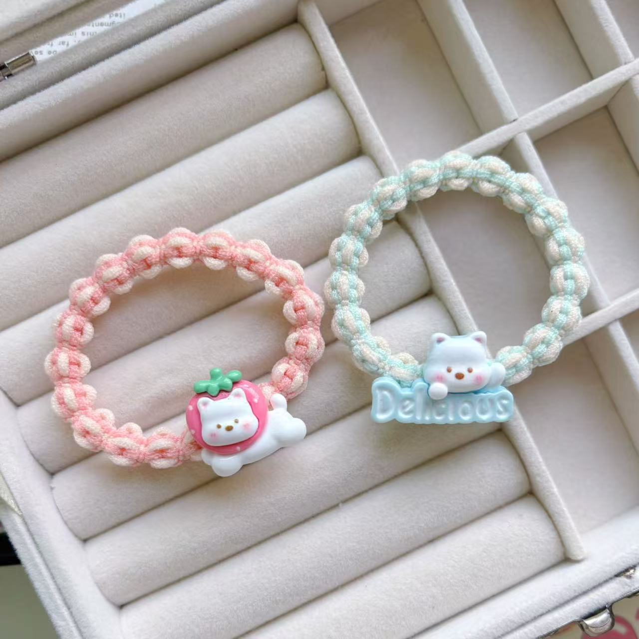 만화 귀여운 우유 흰 곰 머리 반지 소녀 달콤한 머리 밧줄 다채로운 짠 머리 로프 커플 고무 밴드 헤드웨어스토어 가기