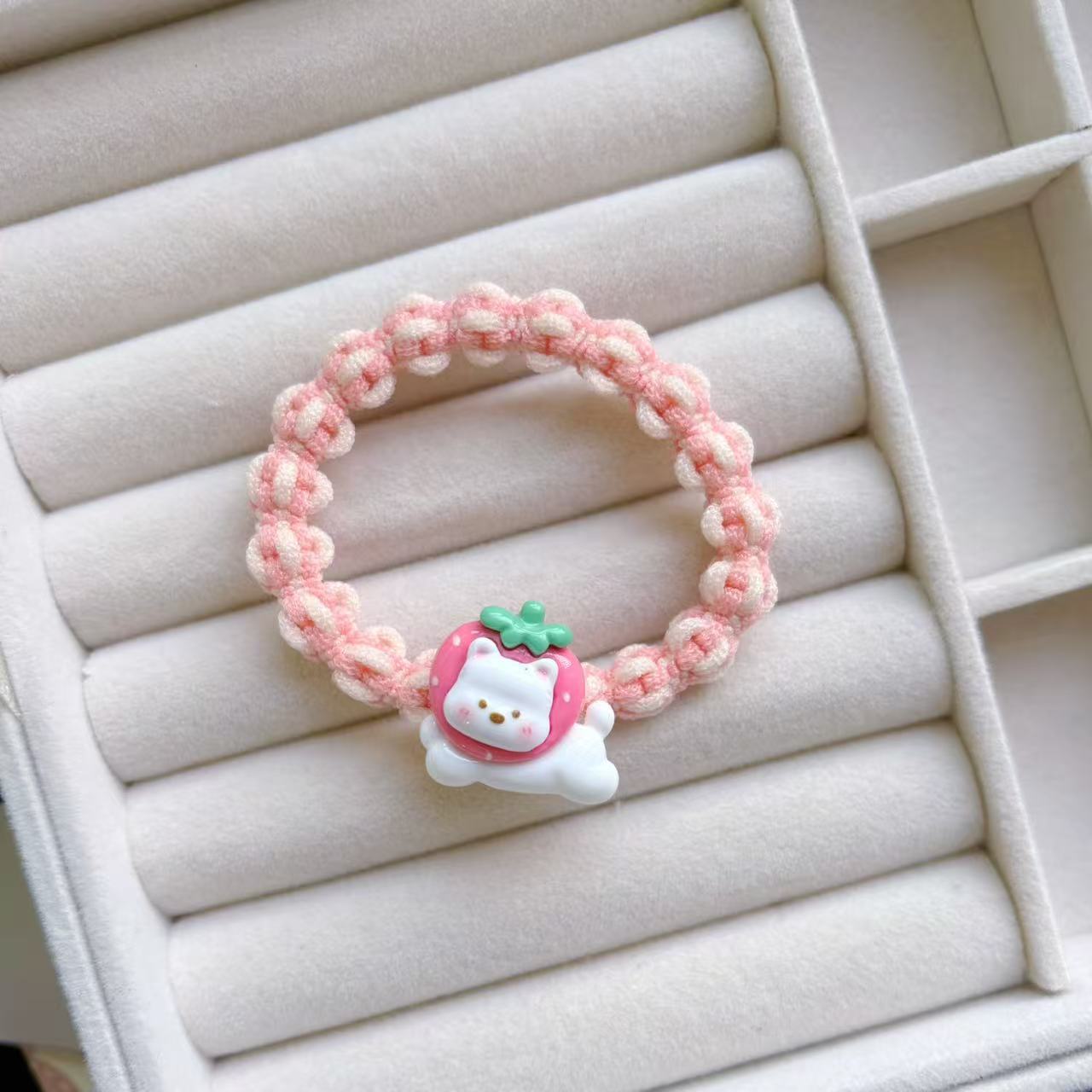 • 밀크화이트베어 도파민 머리끈 [딸기]