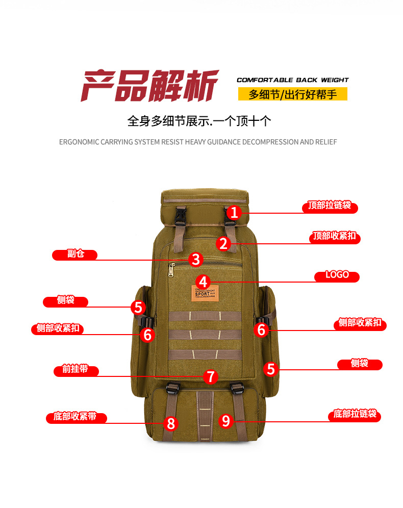 2025년 새로운 부담을 줄이는 야외 등산 가방 80리터 대용량 하이킹 배낭 배낭 여행 가방을 전문적으로 제공하는 국경 간