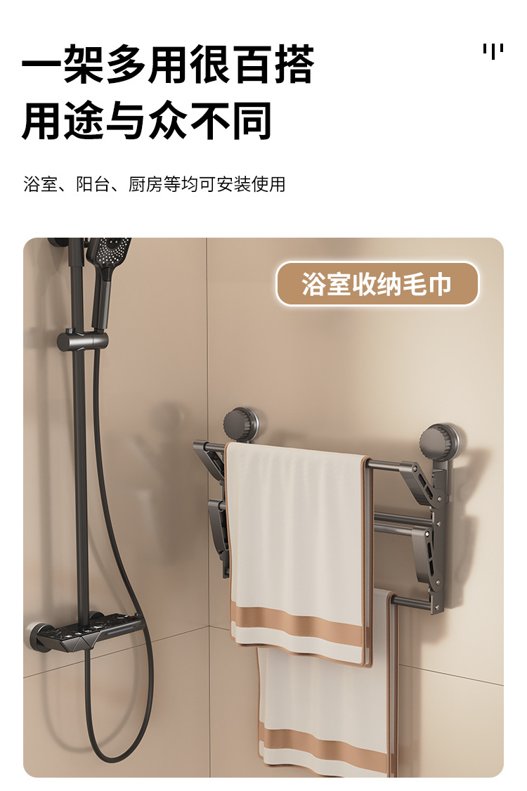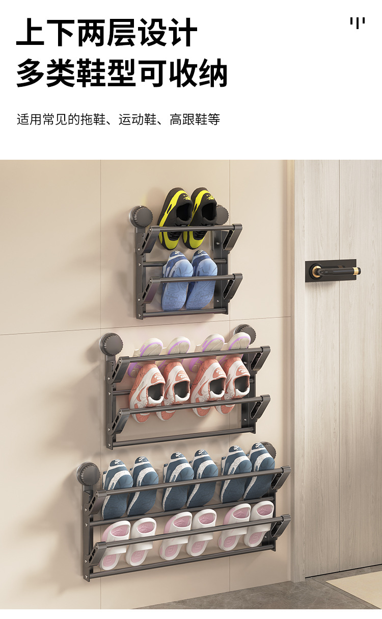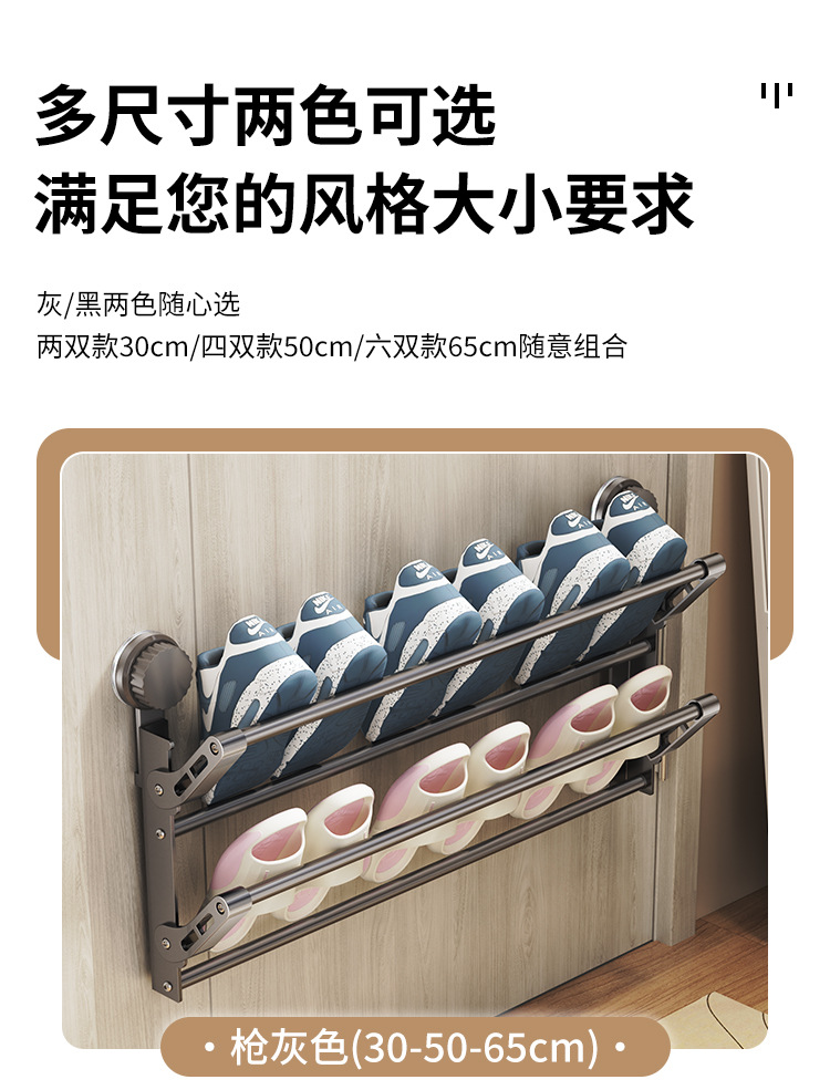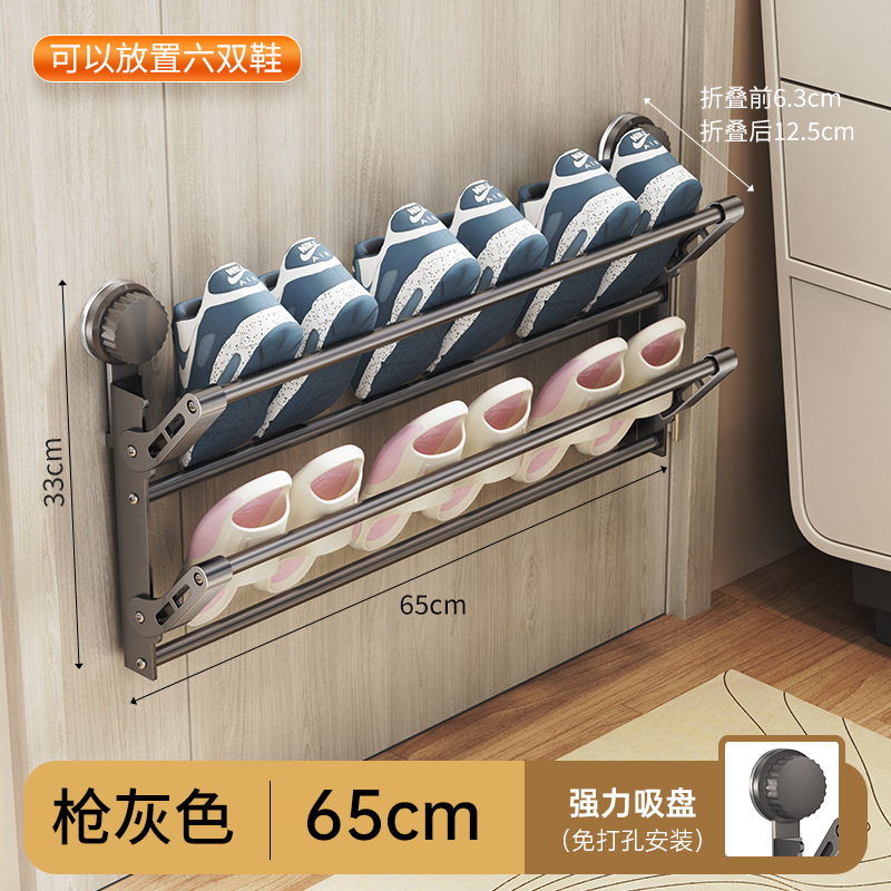 • 흡착컵 이중 접이식 수납선반 65CM-그레이