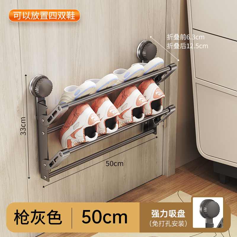 • 흡착컵 이중 접이식 수납선반 50CM-그레이