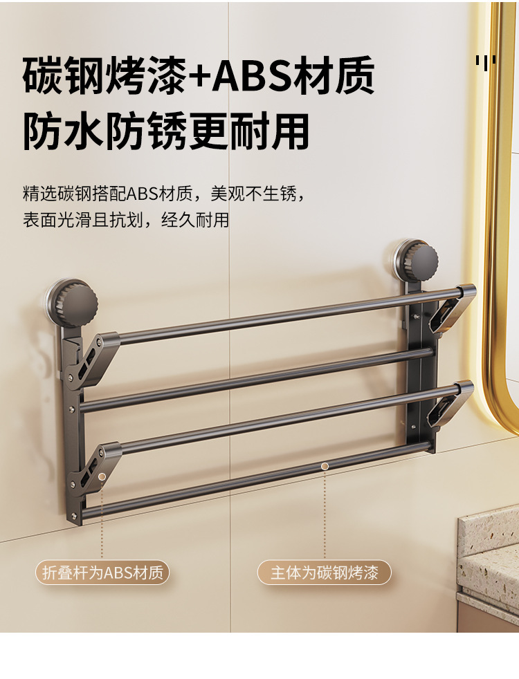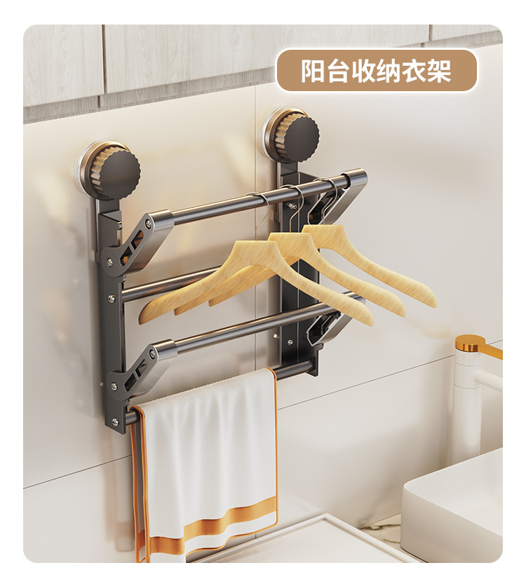 • 흡착컵 이중 접이식 수납선반 65CM-블랙