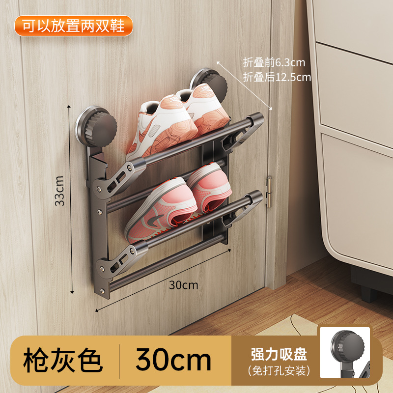 • 흡착컵 이중 접이식 수납선반 30CM-그레이