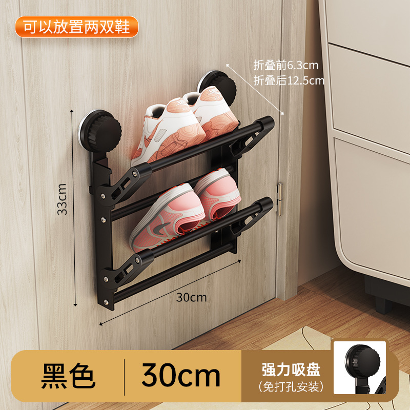 • 흡착컵 이중 접이식 수납선반 30CM-블랙