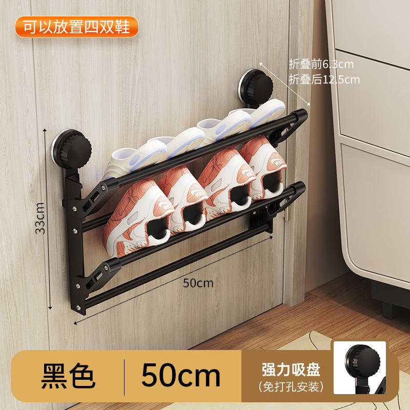 • 흡착컵 이중 접이식 수납선반 50CM-블랙