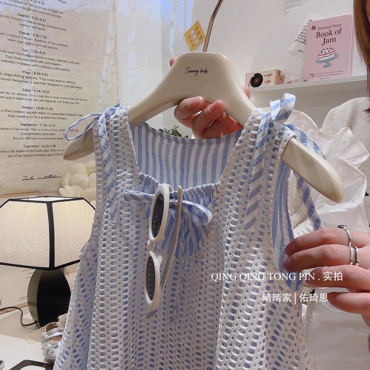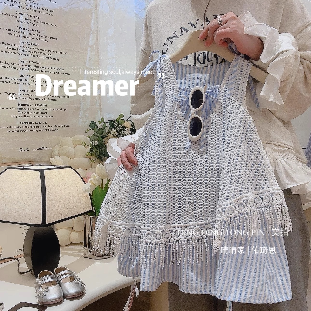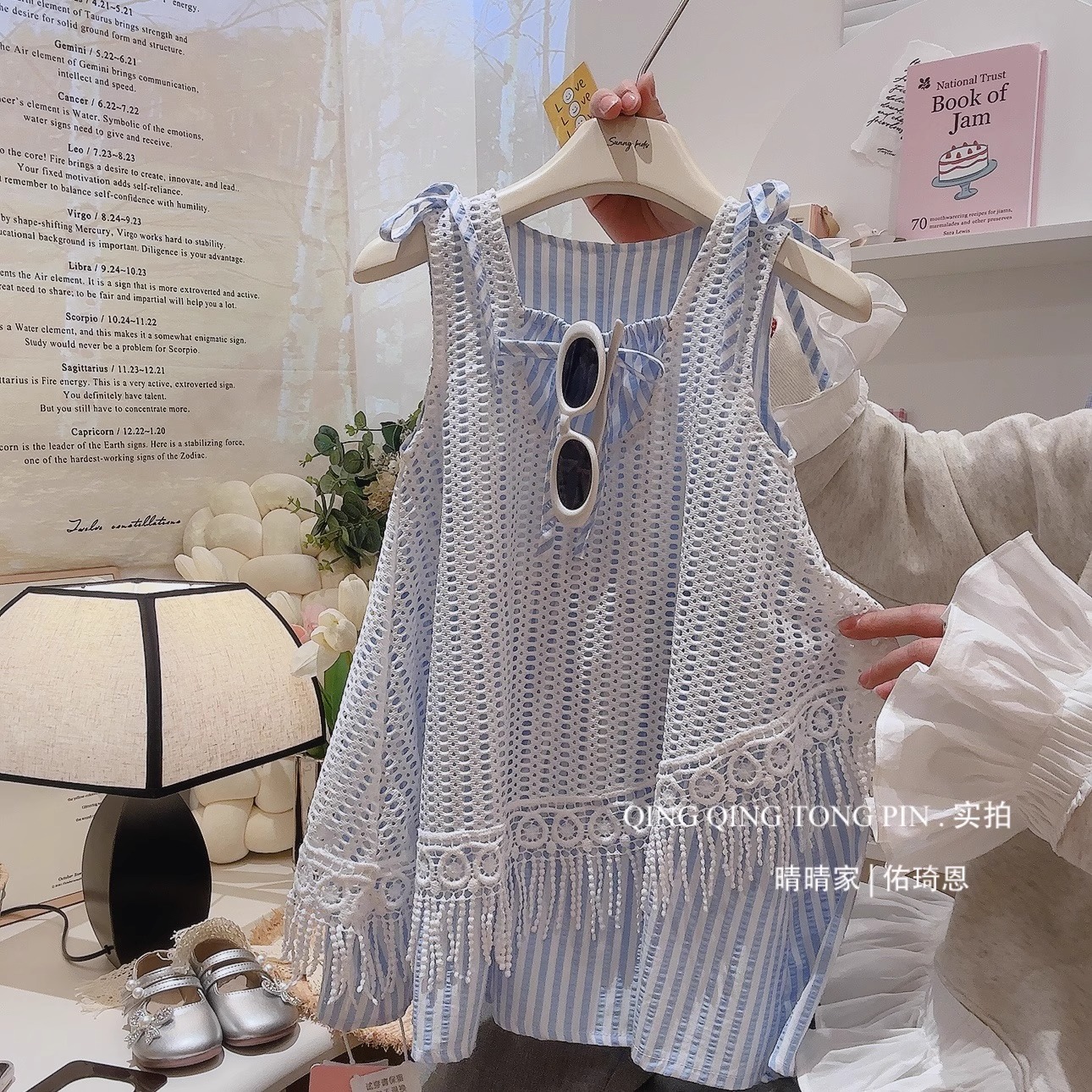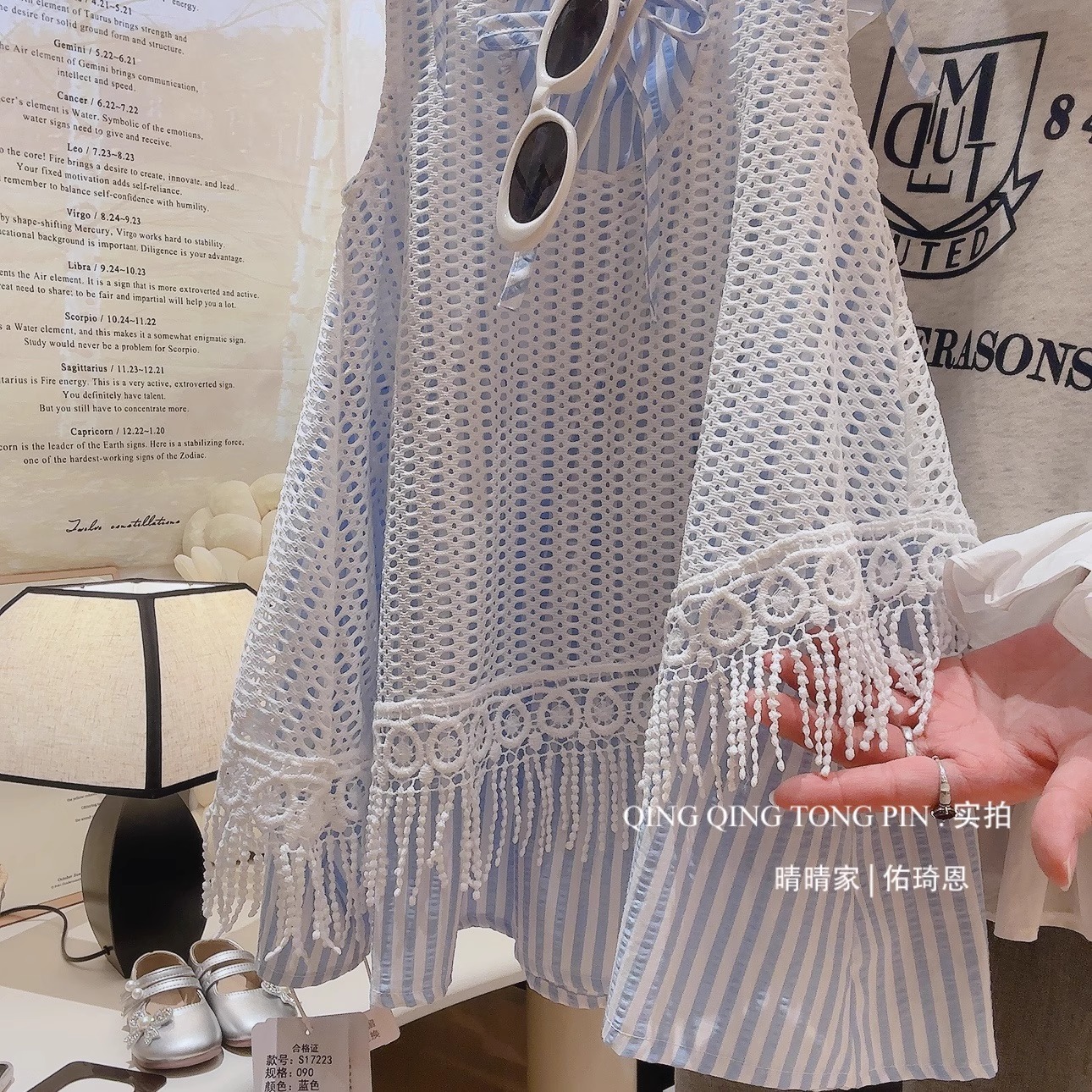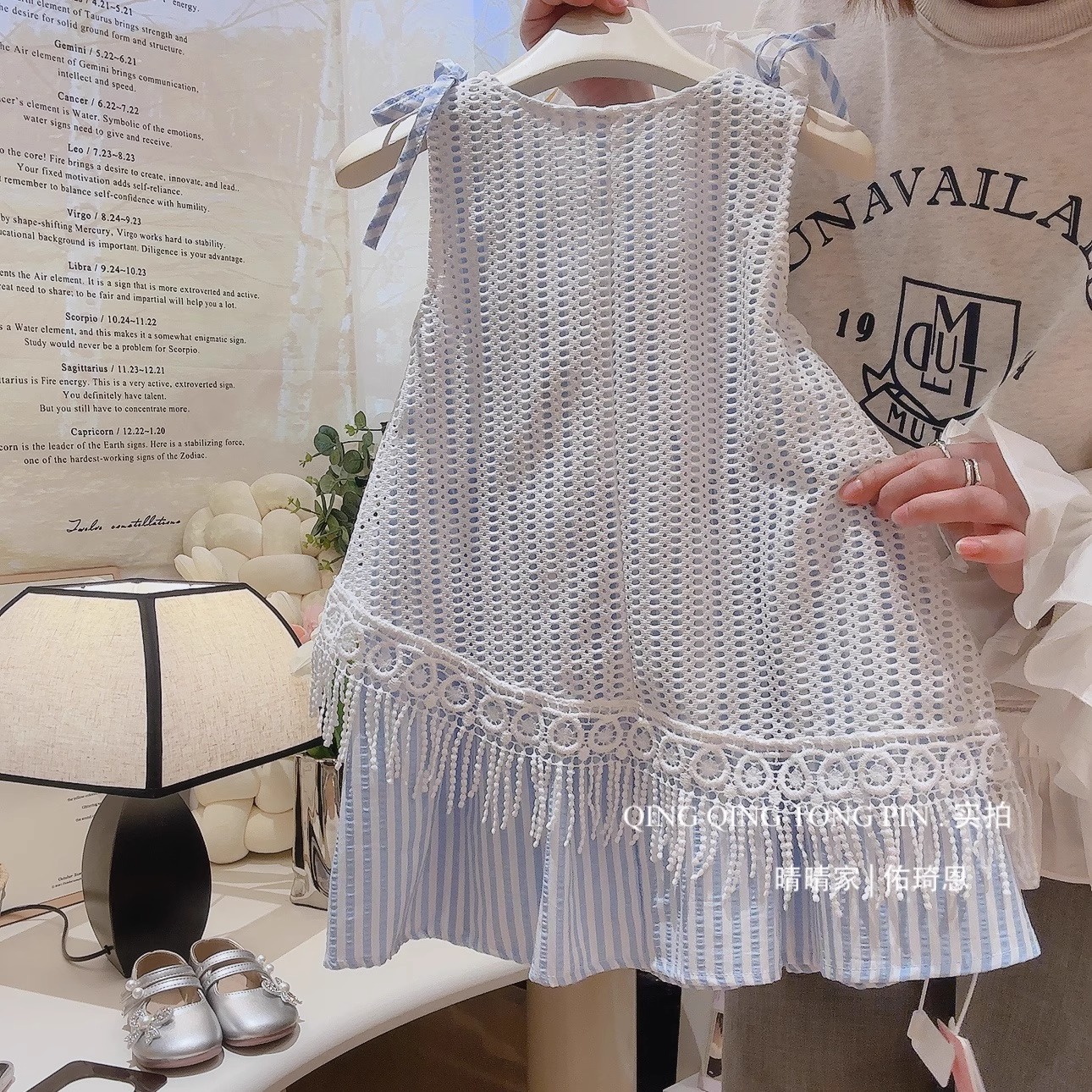 소녀 원피스 2025 새 여름 어린이 세련 된 할로우 블라우스 서스펜더 스커트 소녀 홀리데이 스타일스토어 가기