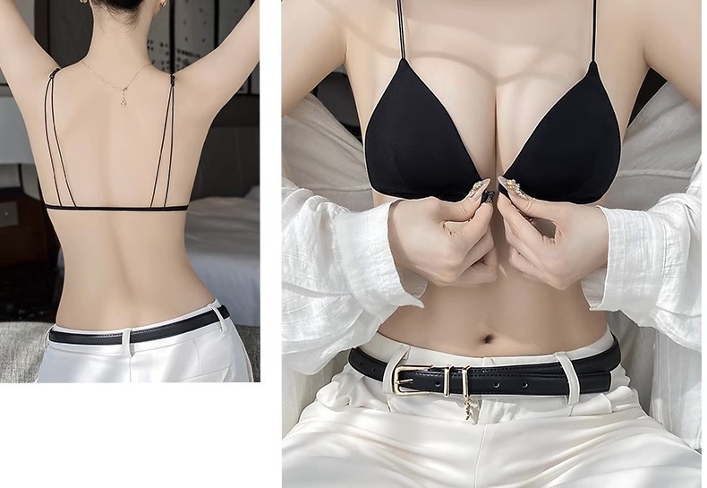 얇은 어깨 끈 아름다운 뒤 버클 속옷 여성의 얇은 여름 작은 가슴 푸시 업 Rimless French Triangle Cup Traceless Bra