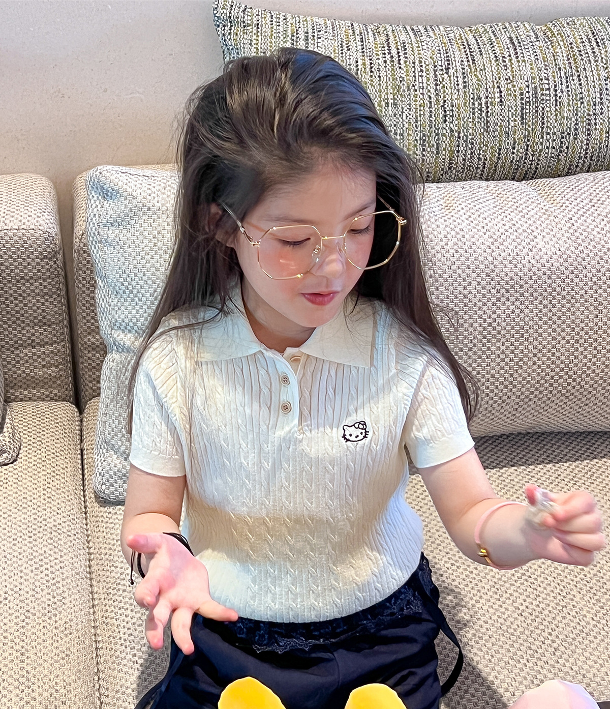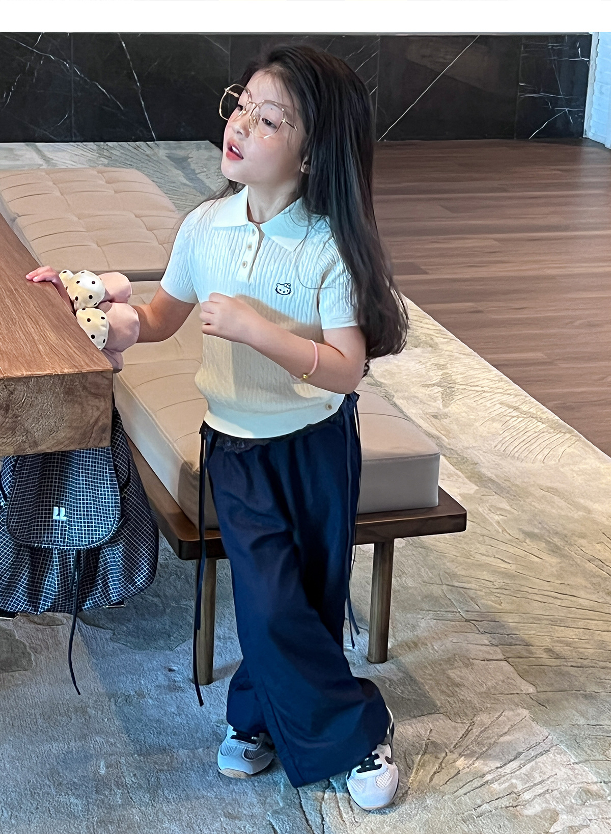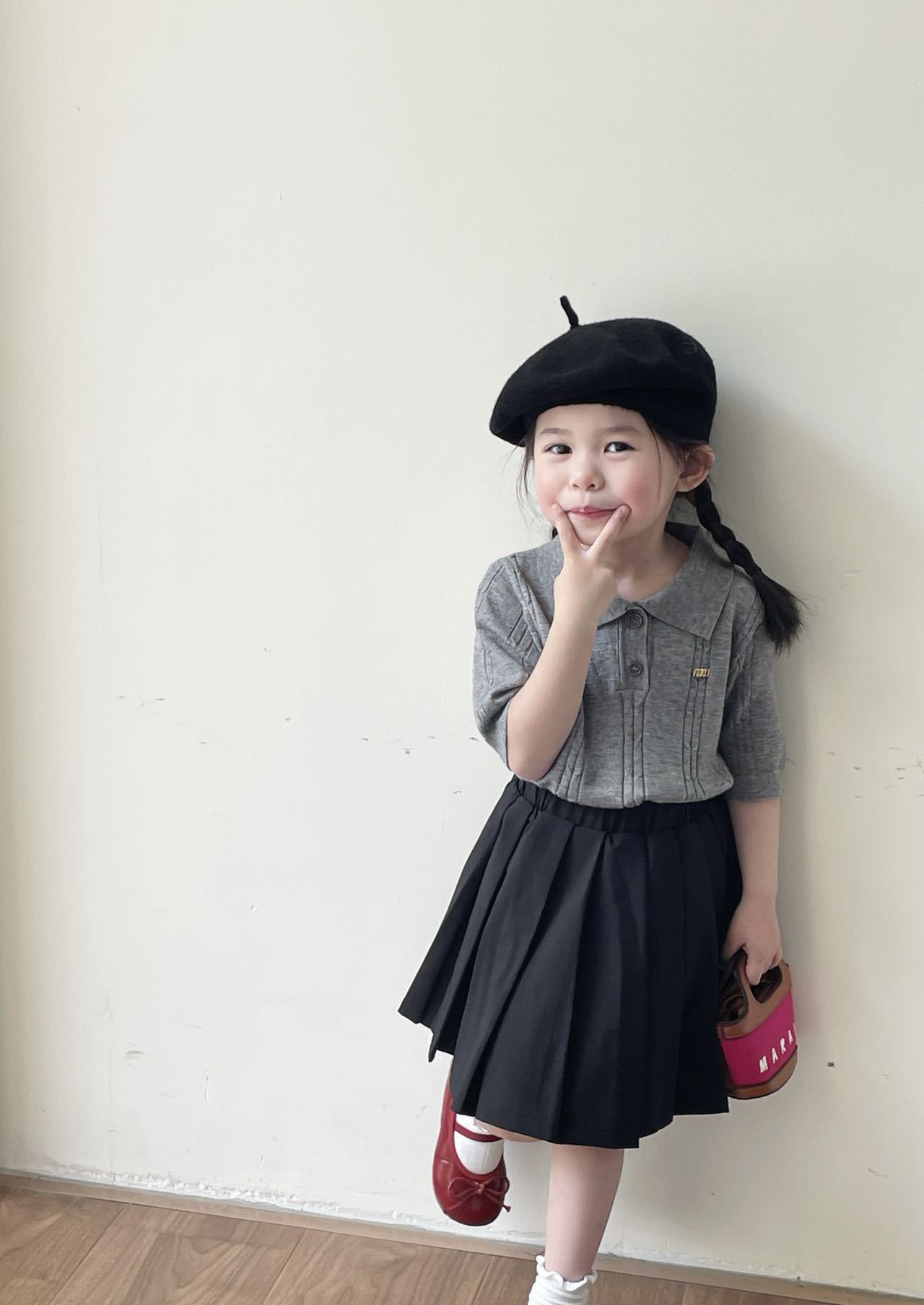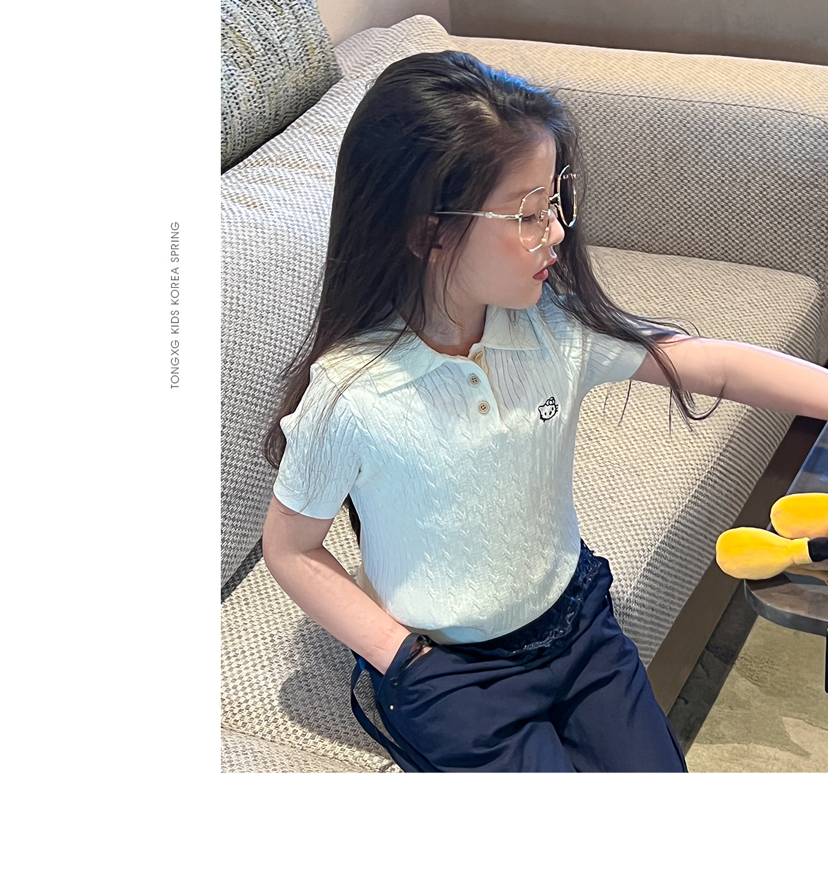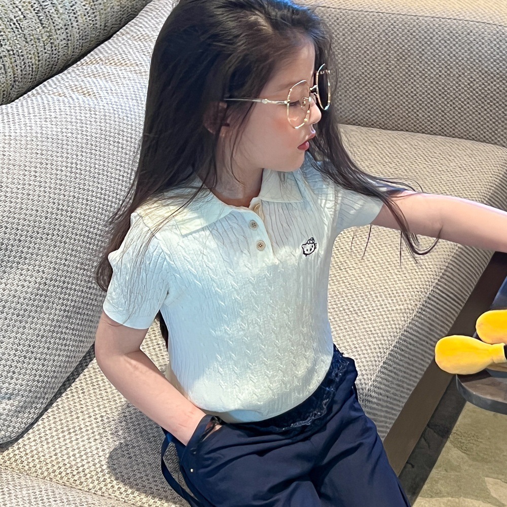 여름 소녀 짧은 소매 도매 티셔츠 어린이 폴로 셔츠 소녀 니트 짧은 소매 코어 스핀 원사 소녀 치마 세트