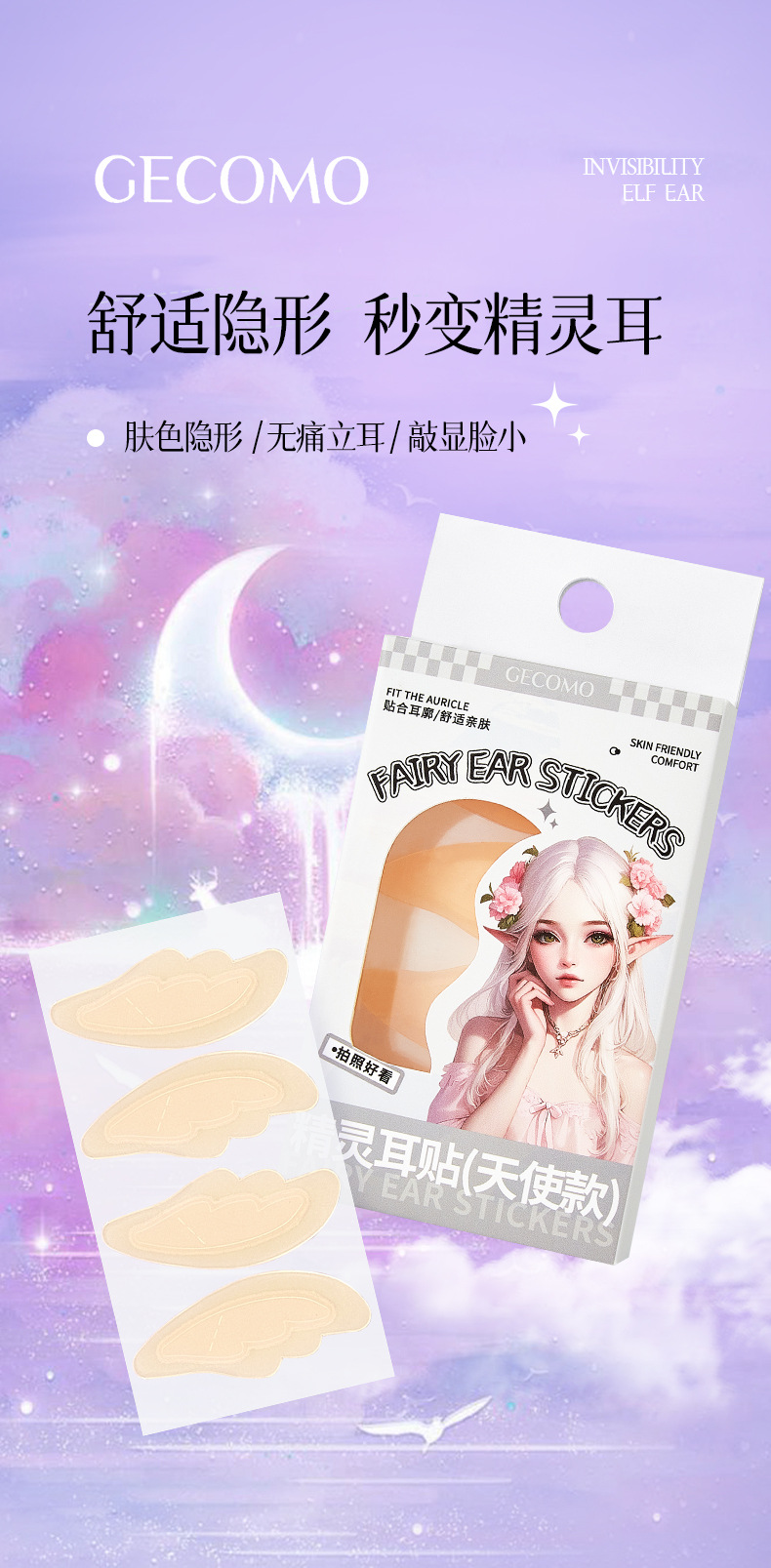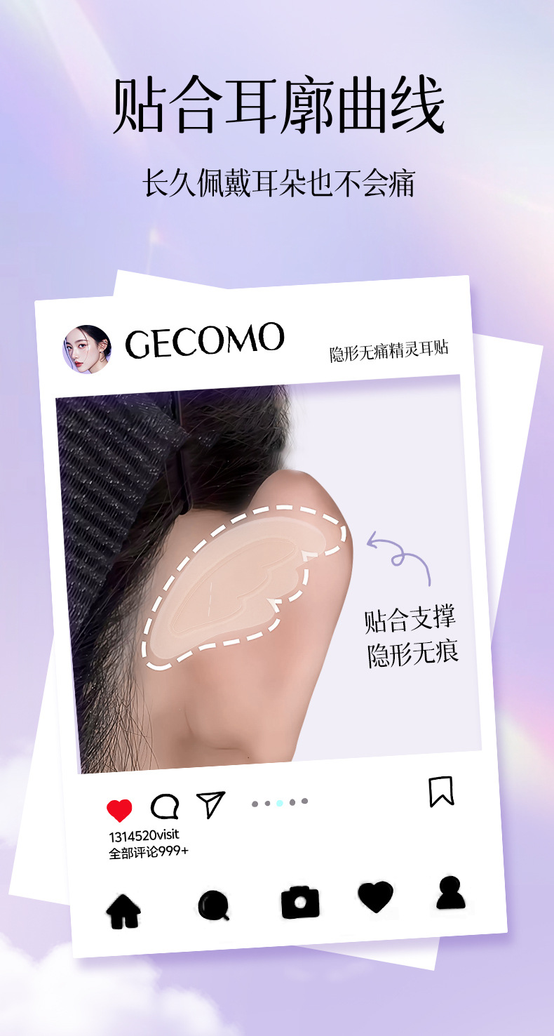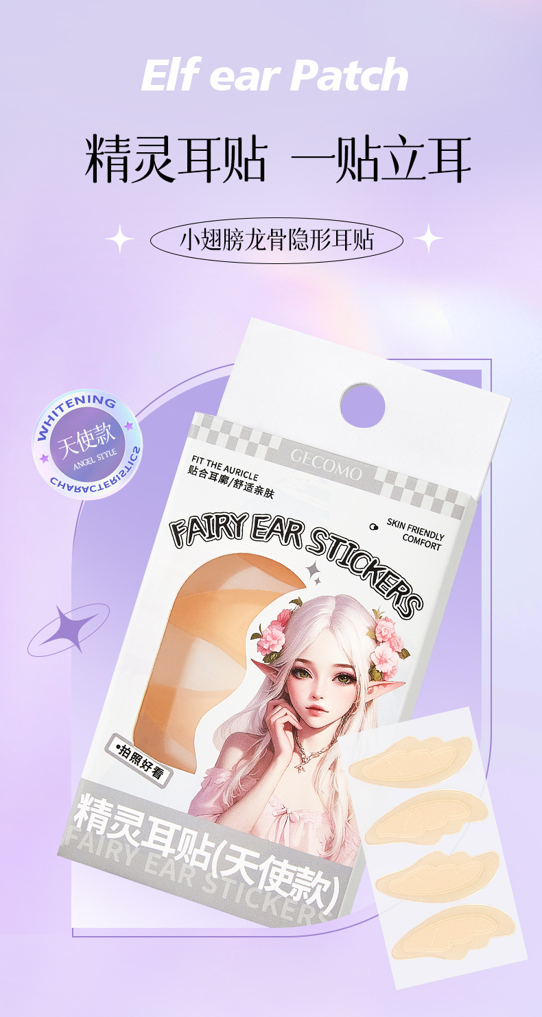 GECOMO 엘프 이어 스티커 천사 보이지 않는 용골 강력한 지원 스탠드 귀 스티커 방수 얼굴 모양 작은 모양 아티팩트 여성스토어 가기