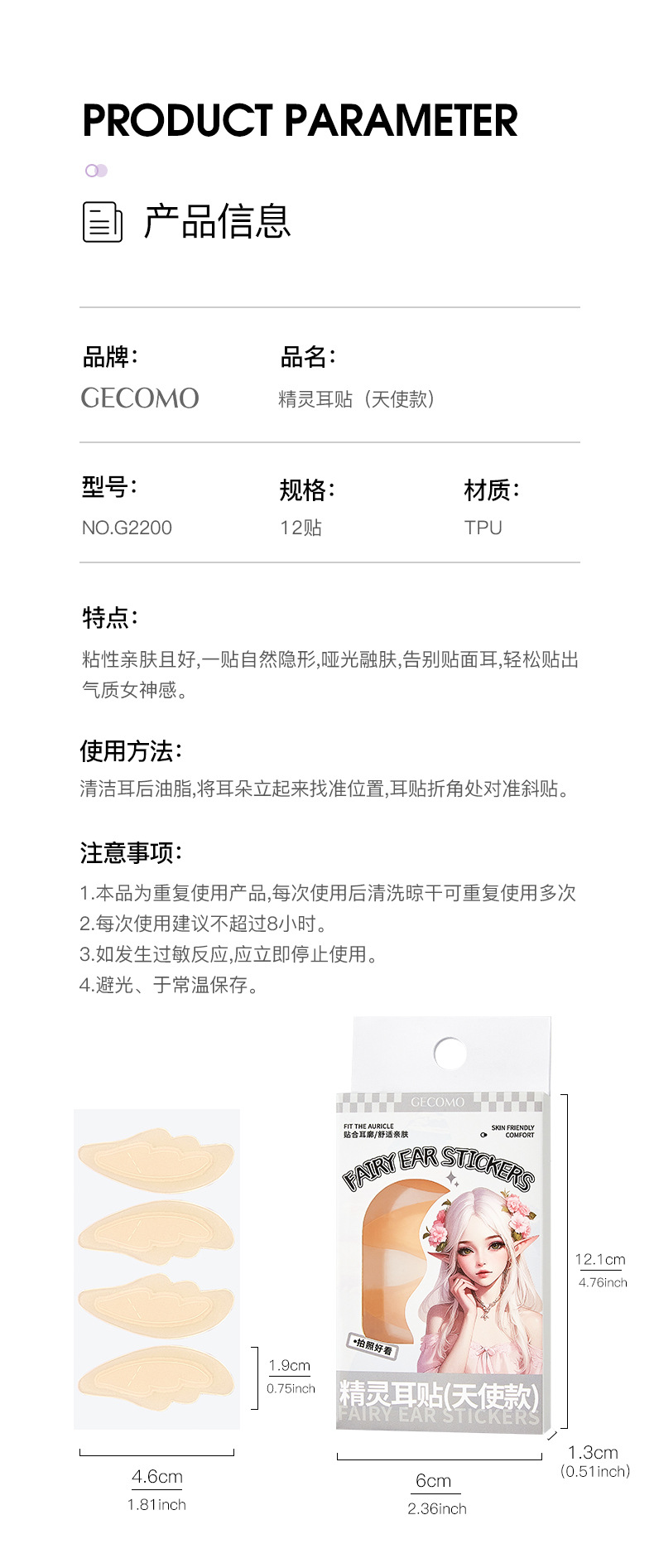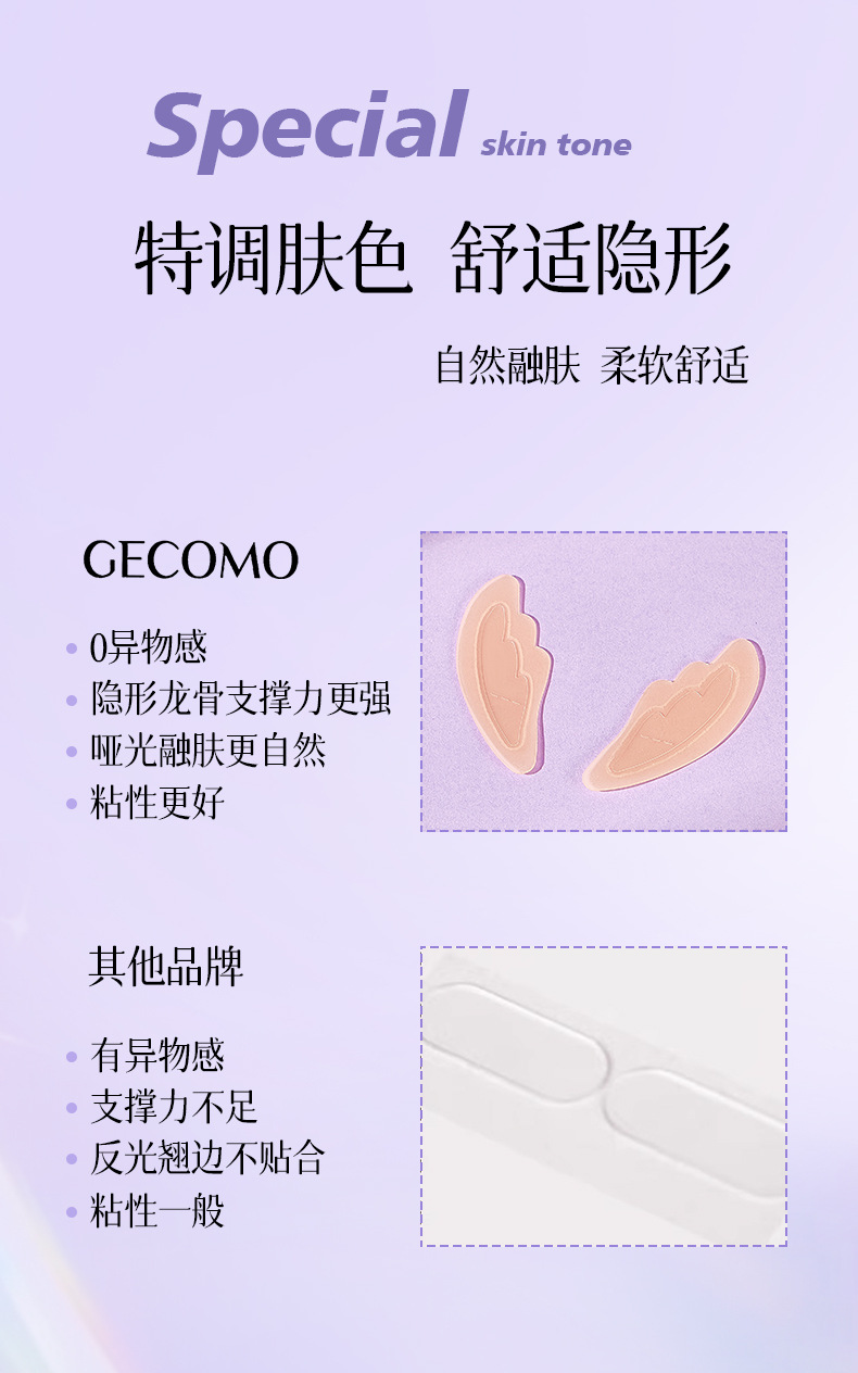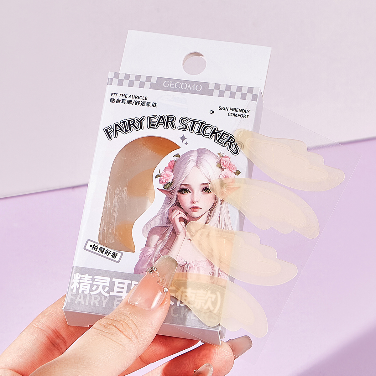 GECOMO 엘프 이어 스티커 천사 보이지 않는 용골 강력한 지원 스탠드 귀 스티커 방수 얼굴 모양 작은 모양 아티팩트 여성스토어 가기