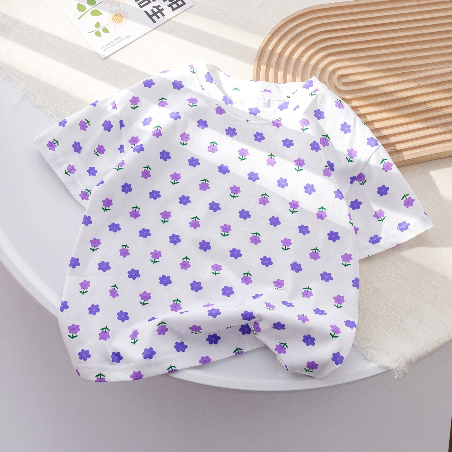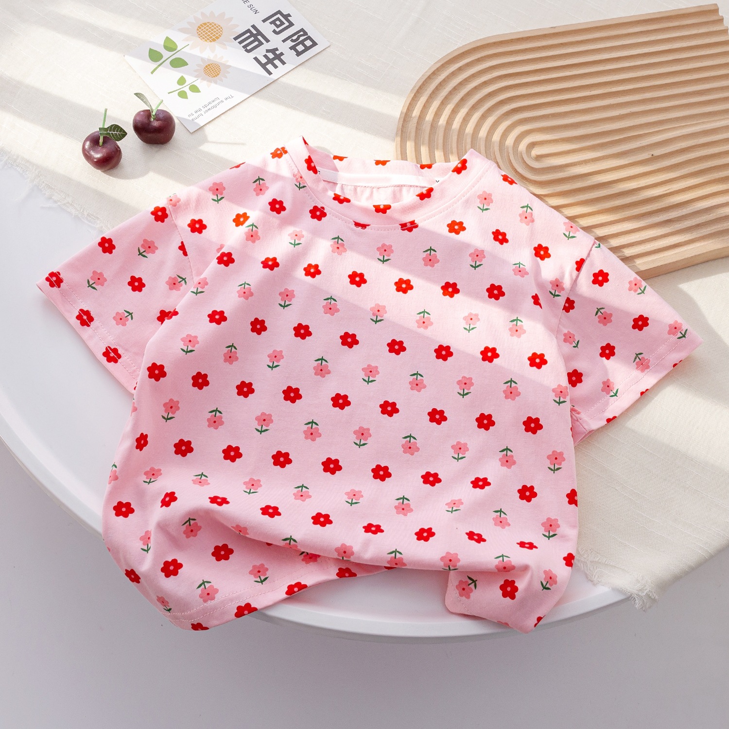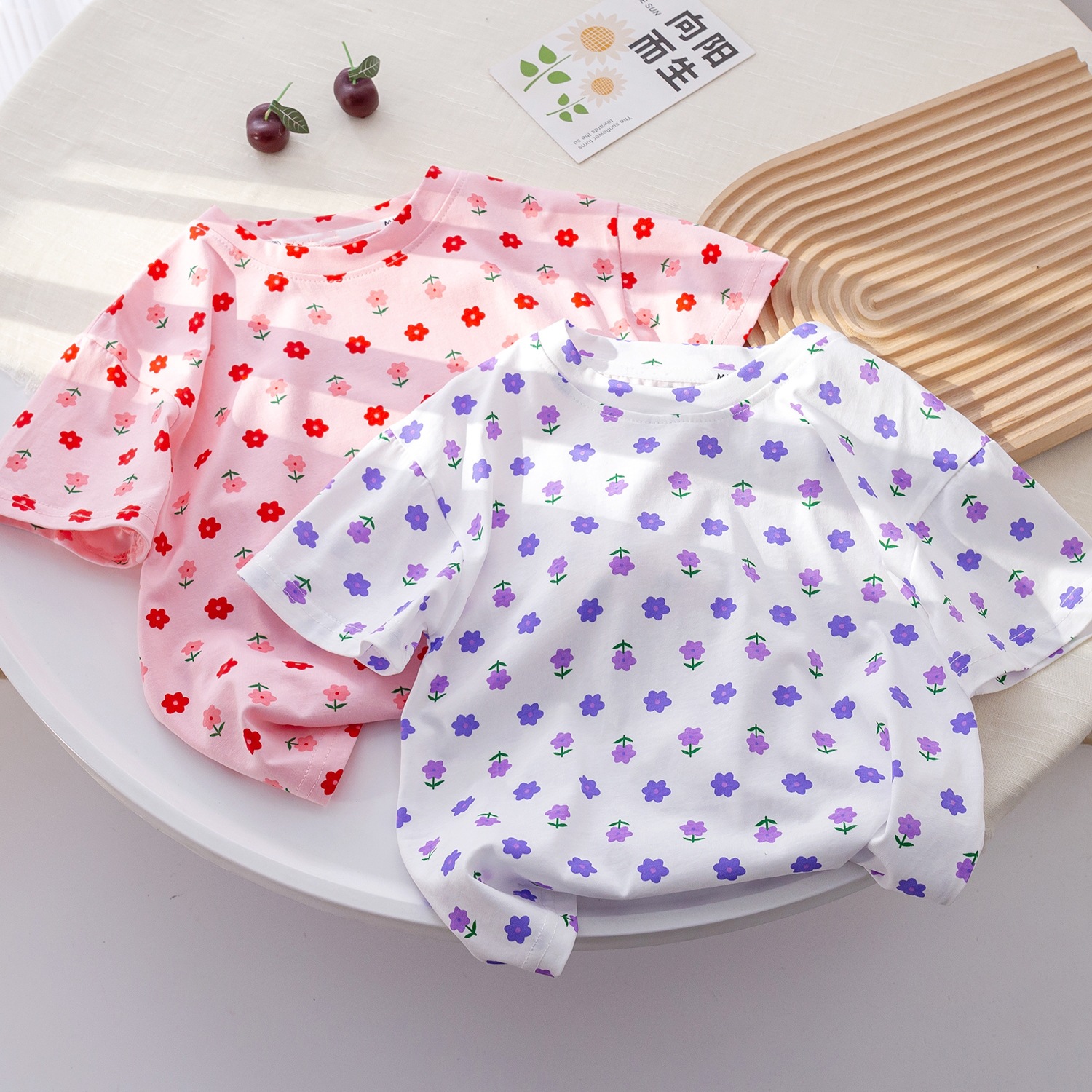여자 아기 여름 새 티셔츠 2024 여름 한국 느슨한 반팔 키즈와 소녀 귀여운 외형 탑 트렌디스토어 가기