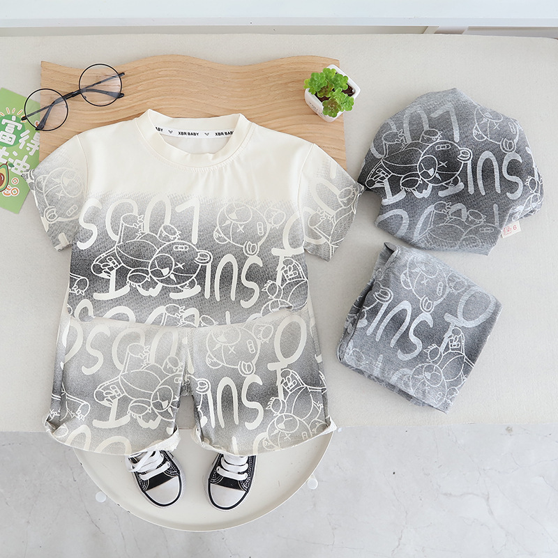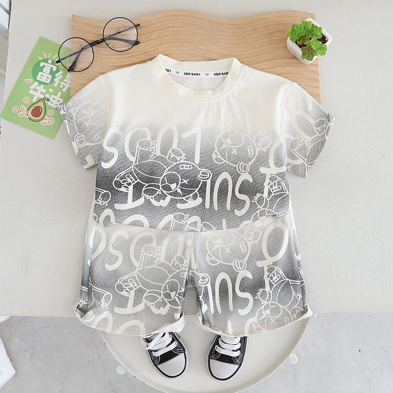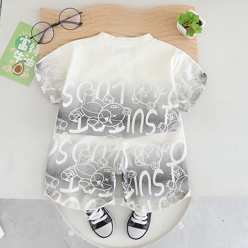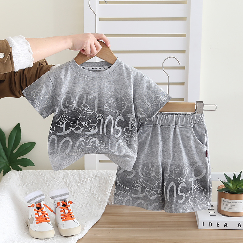 어린이 여름 새 소년 반팔 반바지 투피스 세트 아기 소년 캐주얼 얇은 양복 국경 간 아동 의류 도매스토어 가기