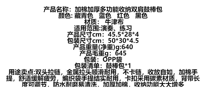 도매 드럼 키트 드럼 스틱 백 옥스포드 천 두꺼운 드럼 스틱 백 휴대용 배낭 드럼 스틱 스토리지 백