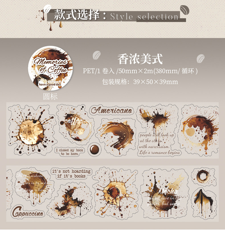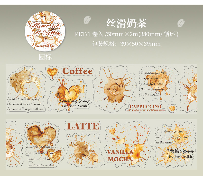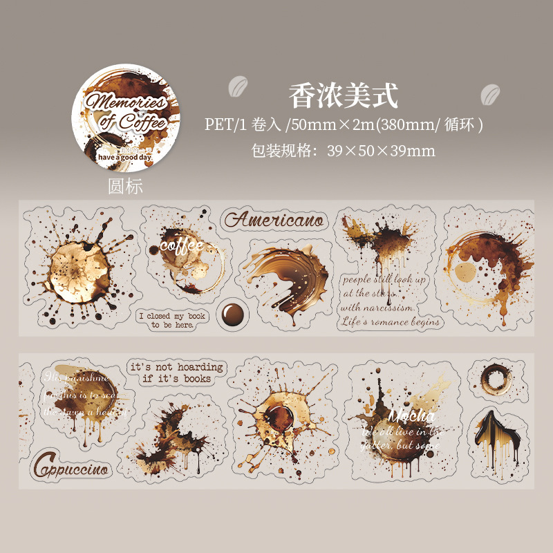 좋은 날 애완 동물 테이프 커피 메모리 시리즈 방수 소재 손 계정 컵 DIY 장식 콜라주