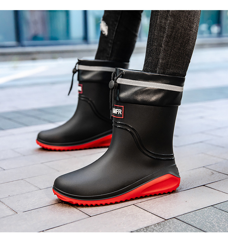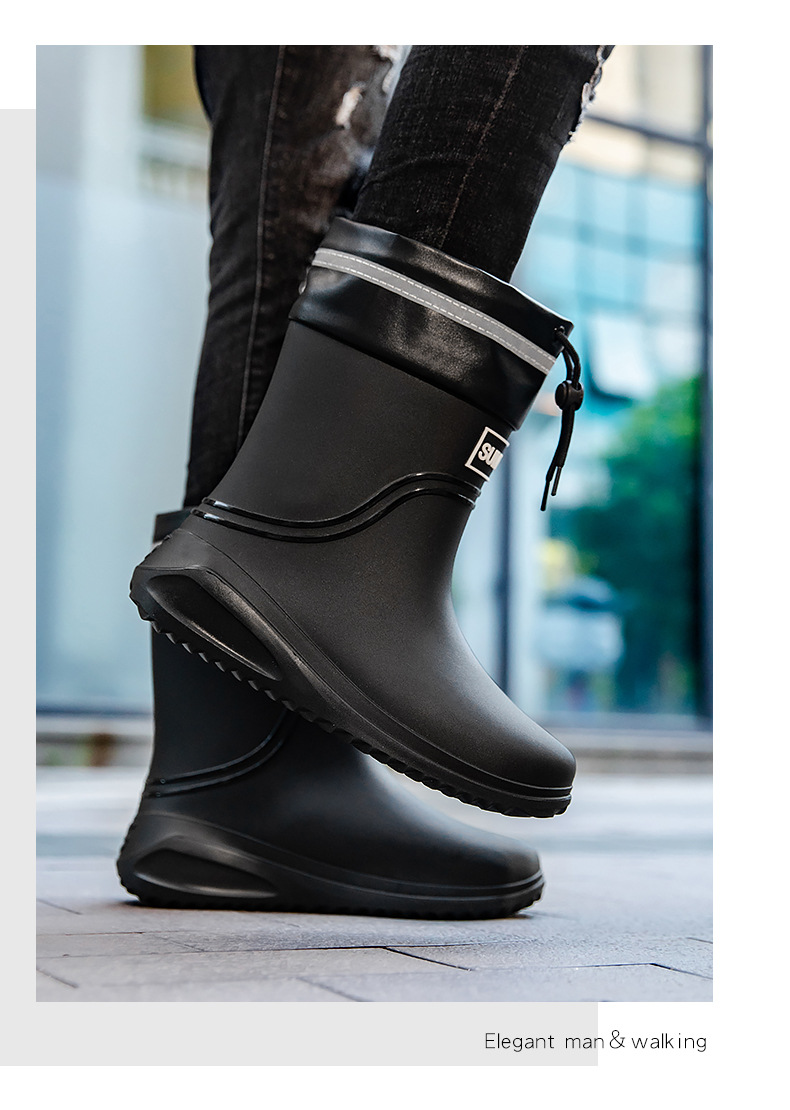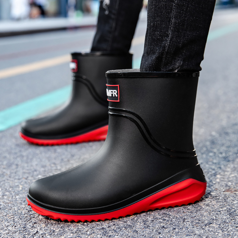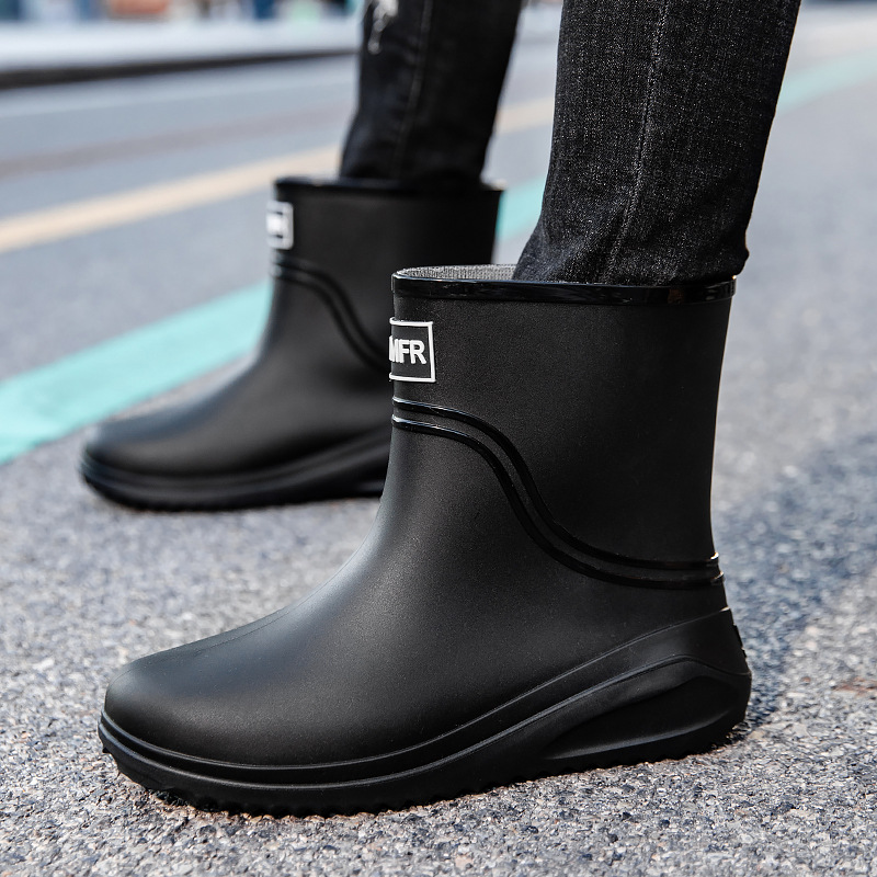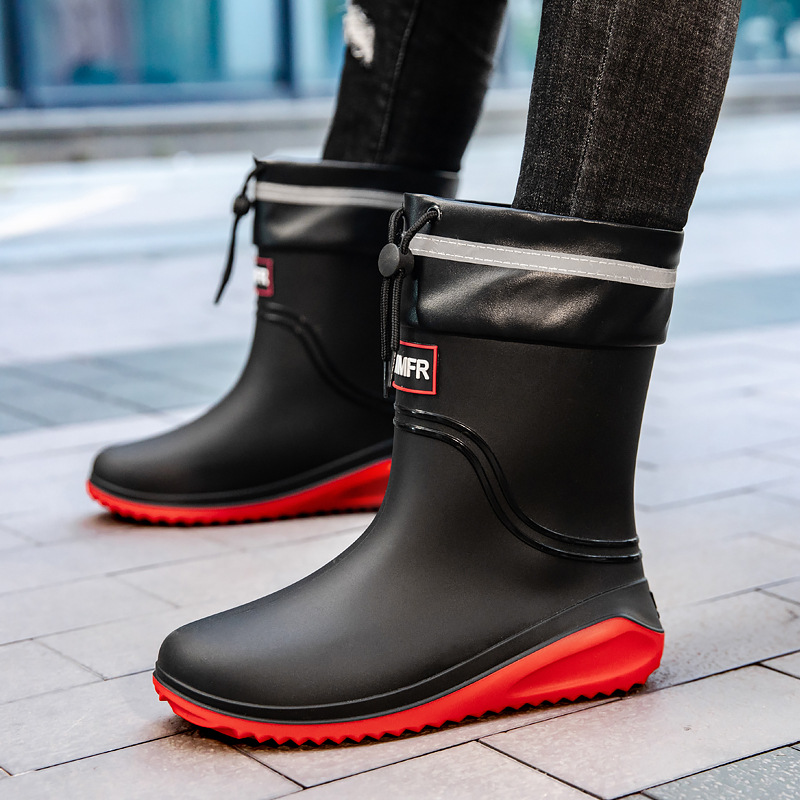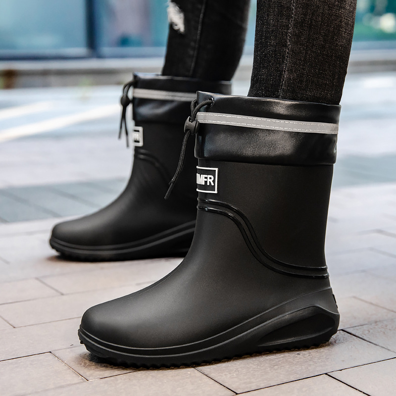 남성용 새로운 스타일의 레인부츠, 성인 남성용 방수 신발, 레인부츠, 미끄럼 방지 및 내마모성 고무 신발, 벨벳 패션 주방 워터 부츠
