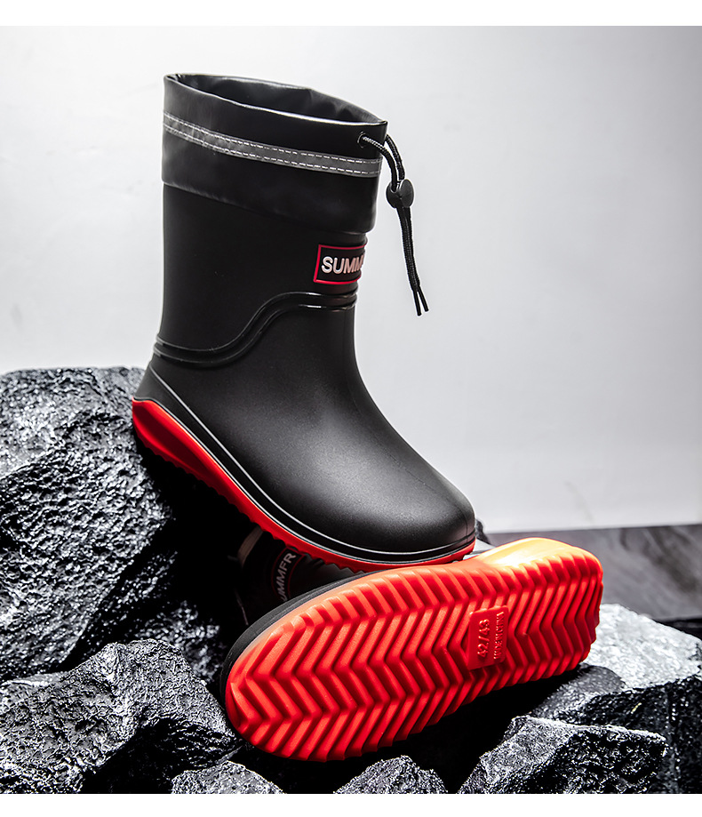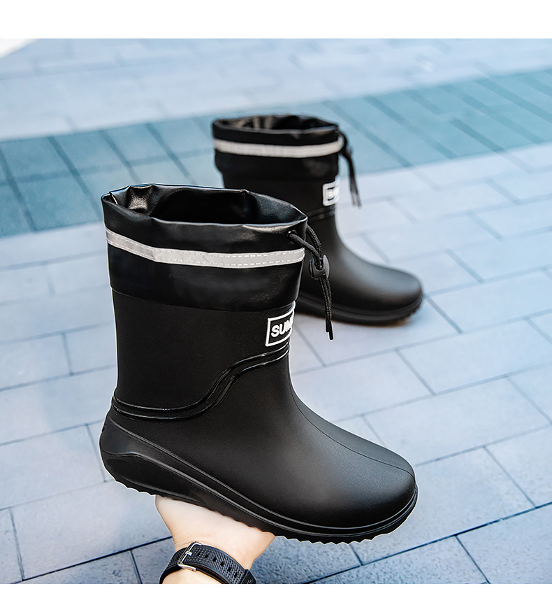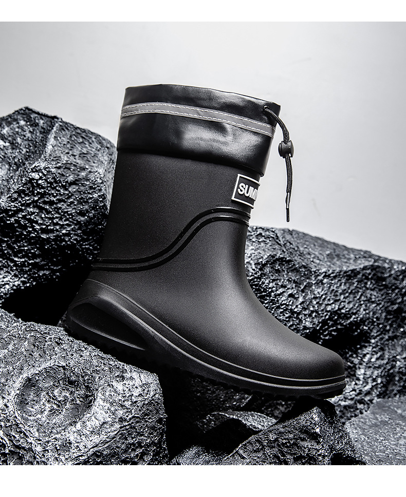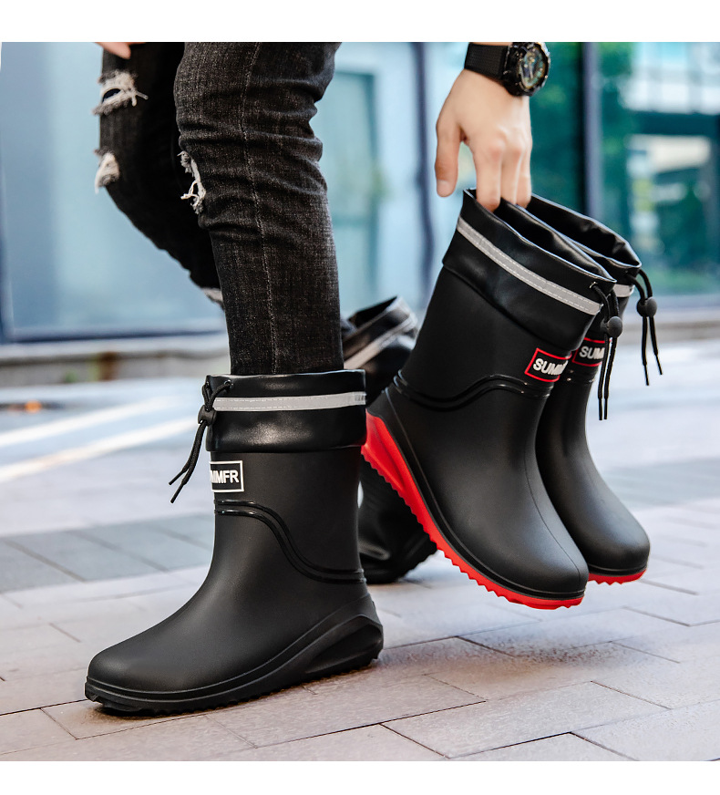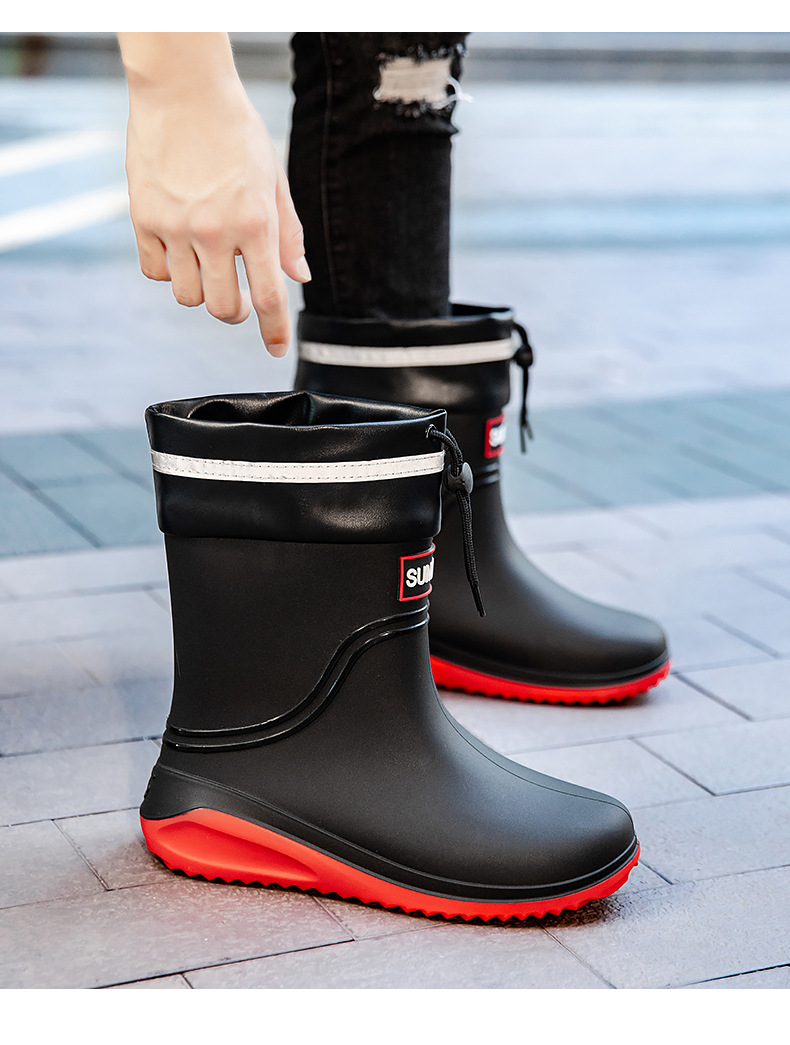 남성용 새로운 스타일의 레인부츠, 성인 남성용 방수 신발, 레인부츠, 미끄럼 방지 및 내마모성 고무 신발, 벨벳 패션 주방 워터 부츠