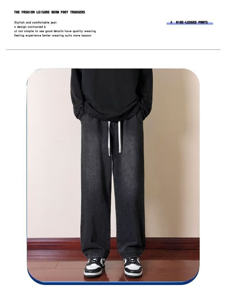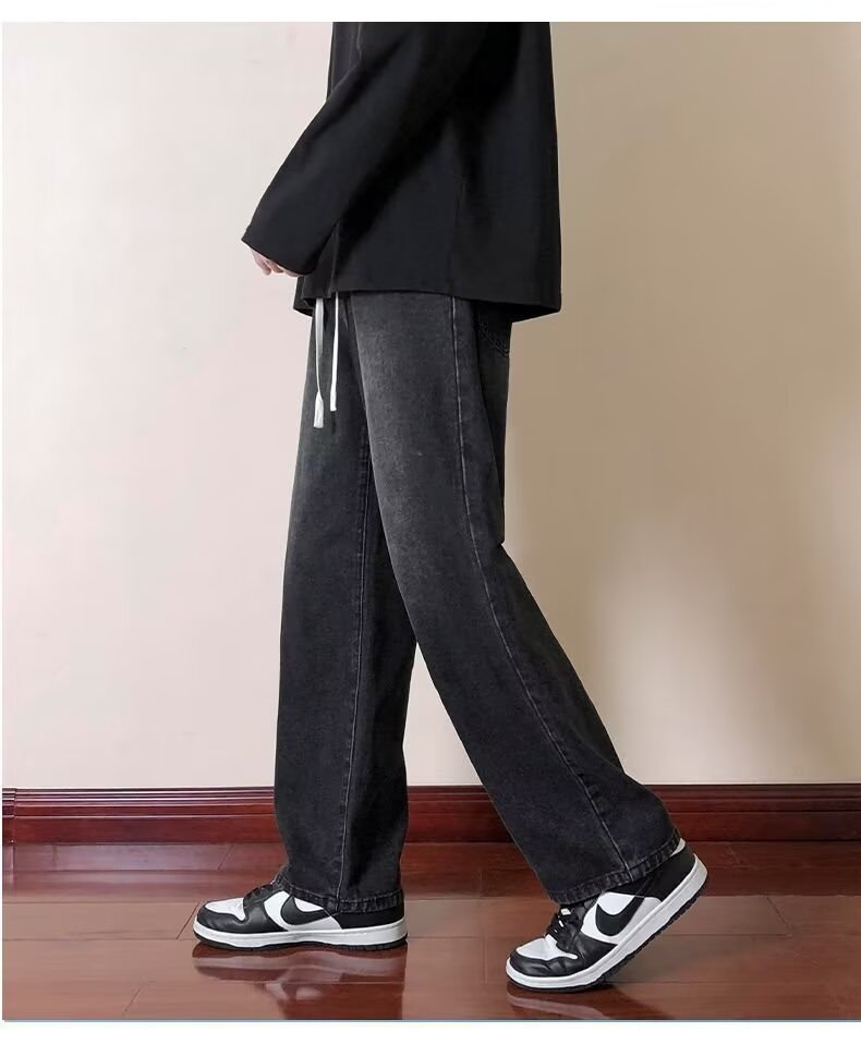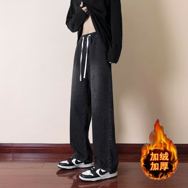2024 미국 청바지 남자의 가을과 겨울 기모 스트레이트 루즈 트렌디 브랜드 와이드 레그 하이 스트리트 캐주얼 롱 팬츠 남성복