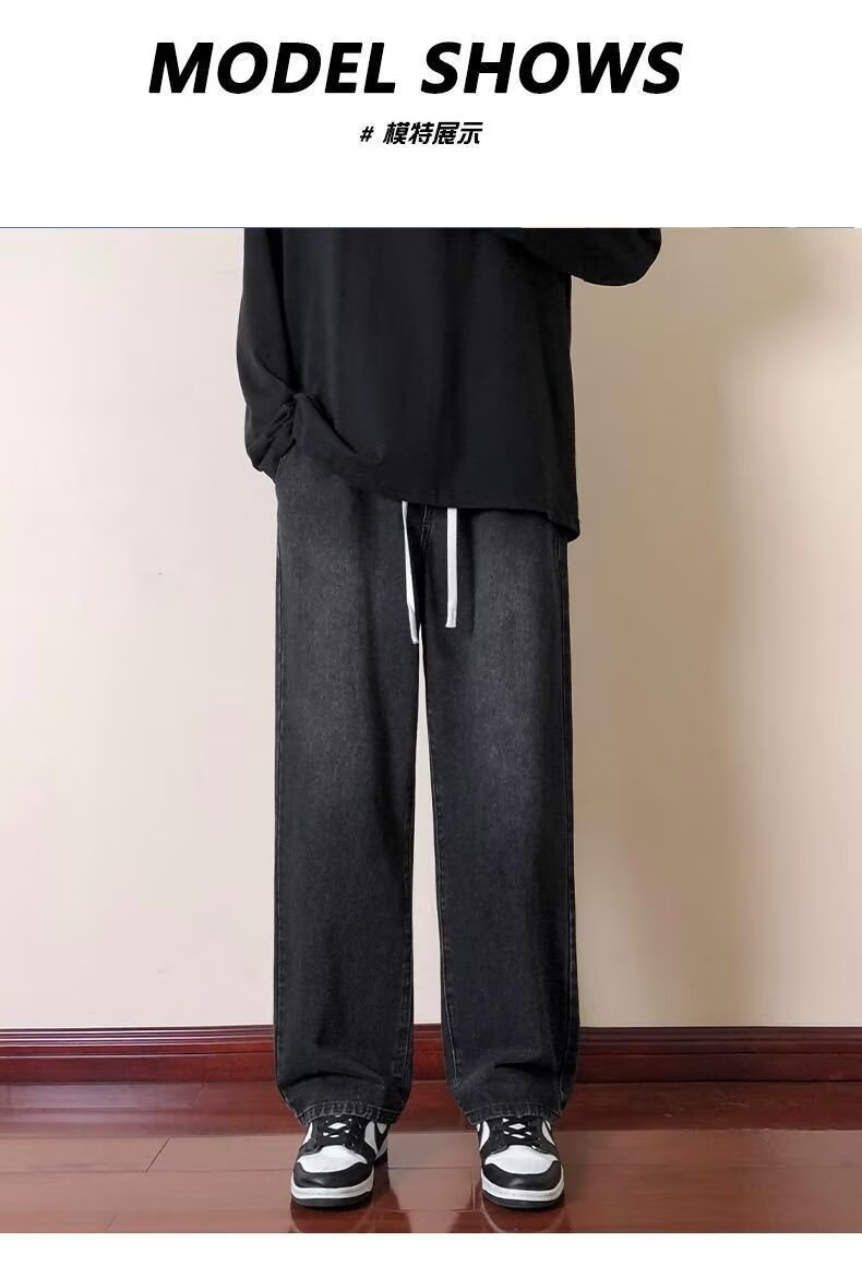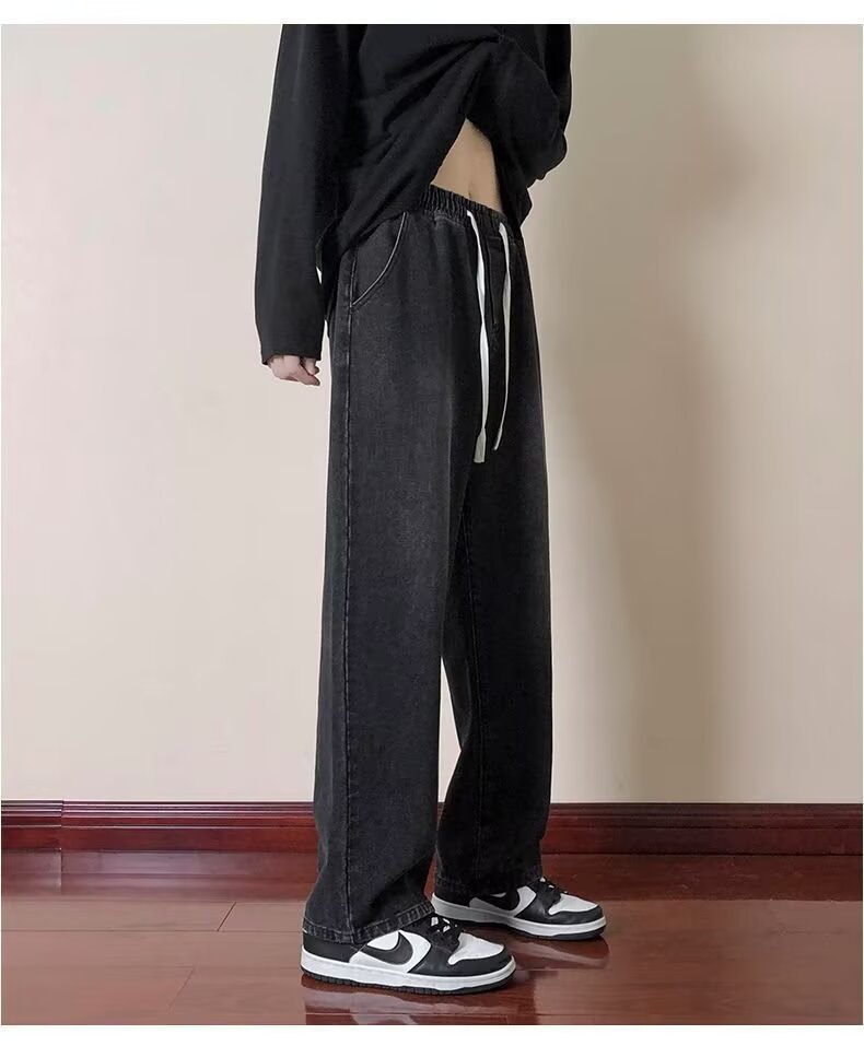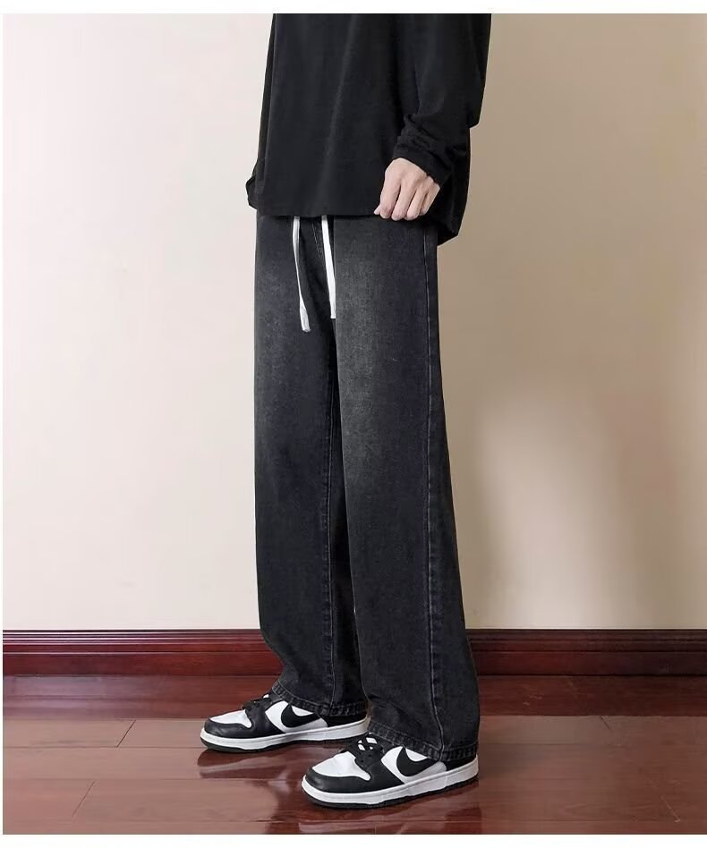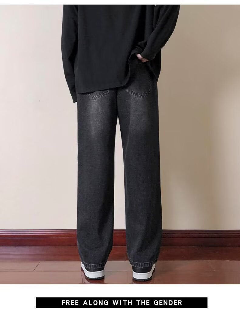 2024 미국 청바지 남자의 가을과 겨울 기모 스트레이트 루즈 트렌디 브랜드 와이드 레그 하이 스트리트 캐주얼 롱 팬츠 남성복스토어 가기