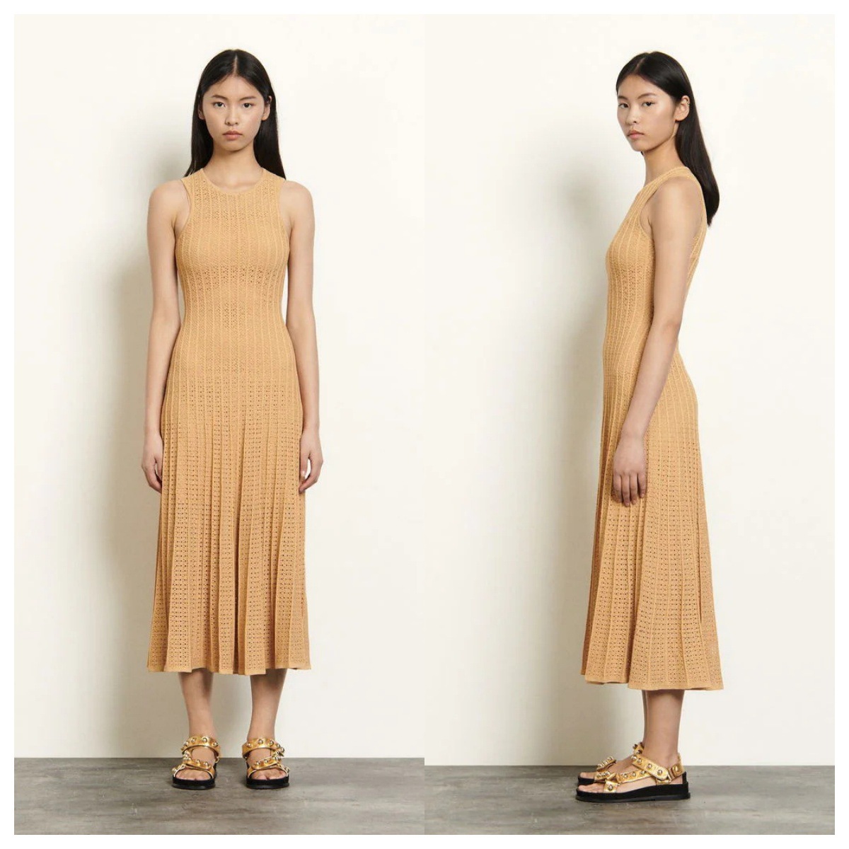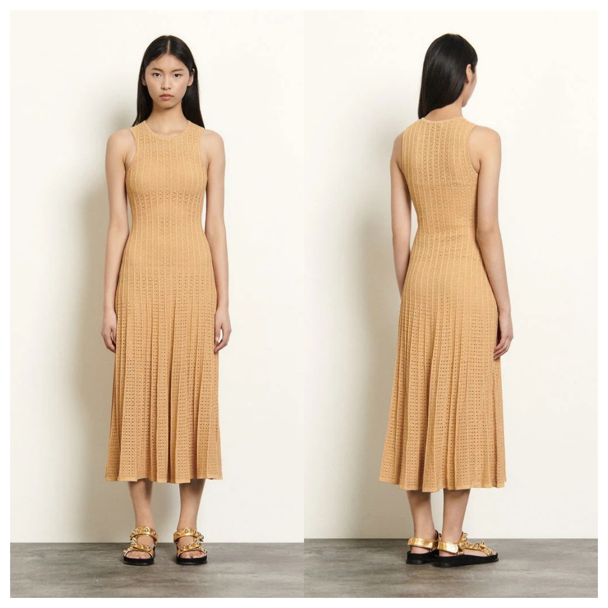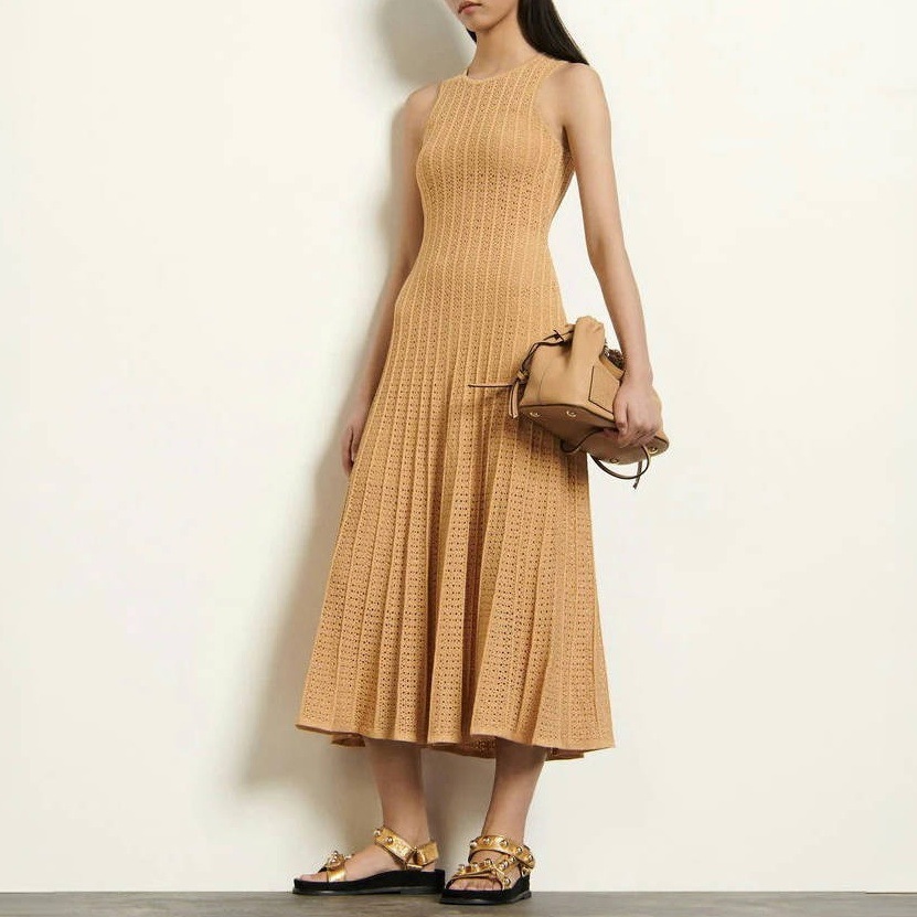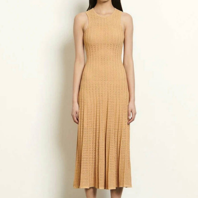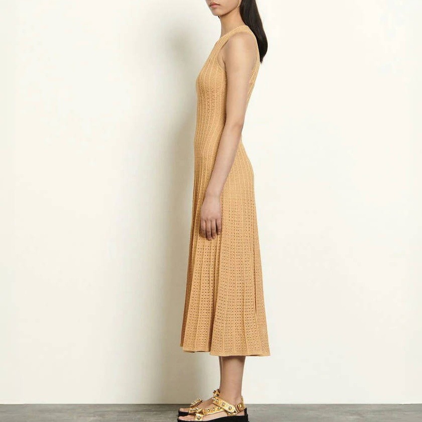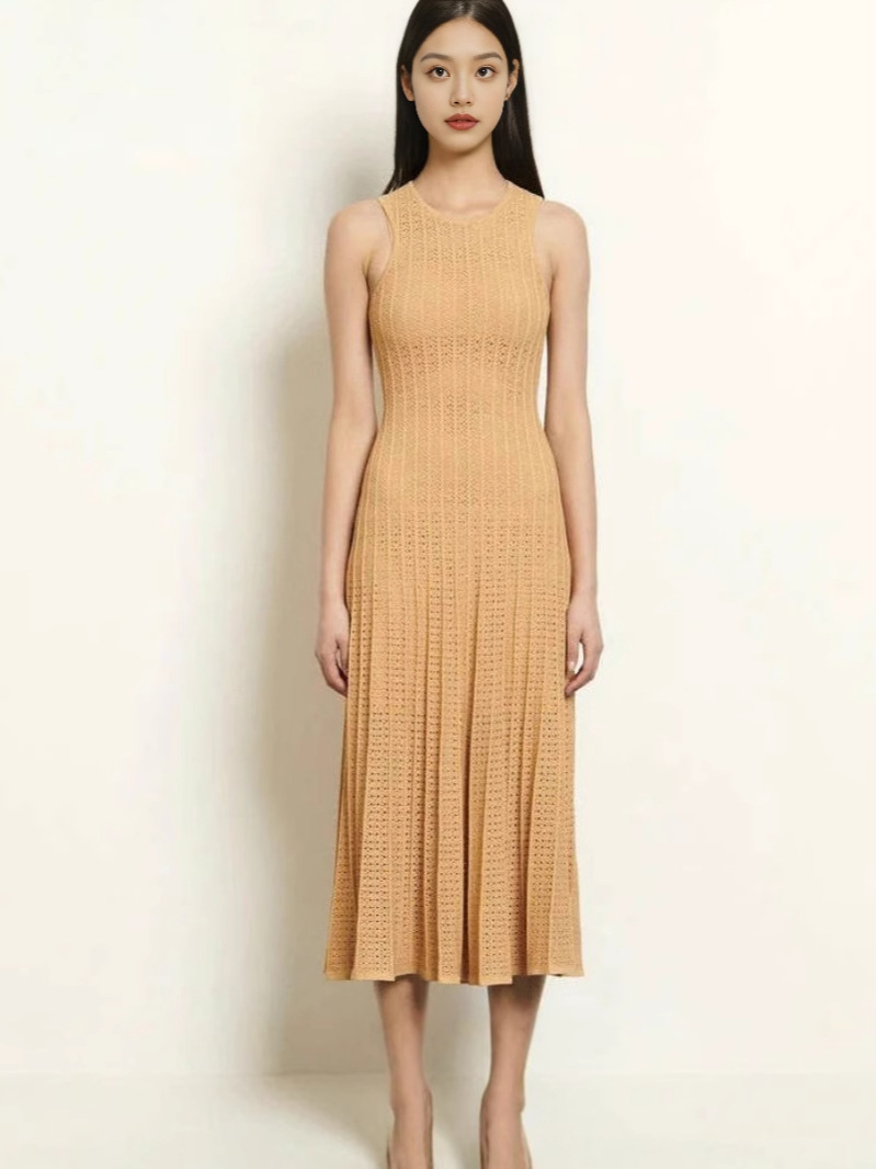 국경 2025 여름 니트 할로우 라운드 넥 민소매 조끼 긴 스커트 비키니 외부 블라우스 원피스
