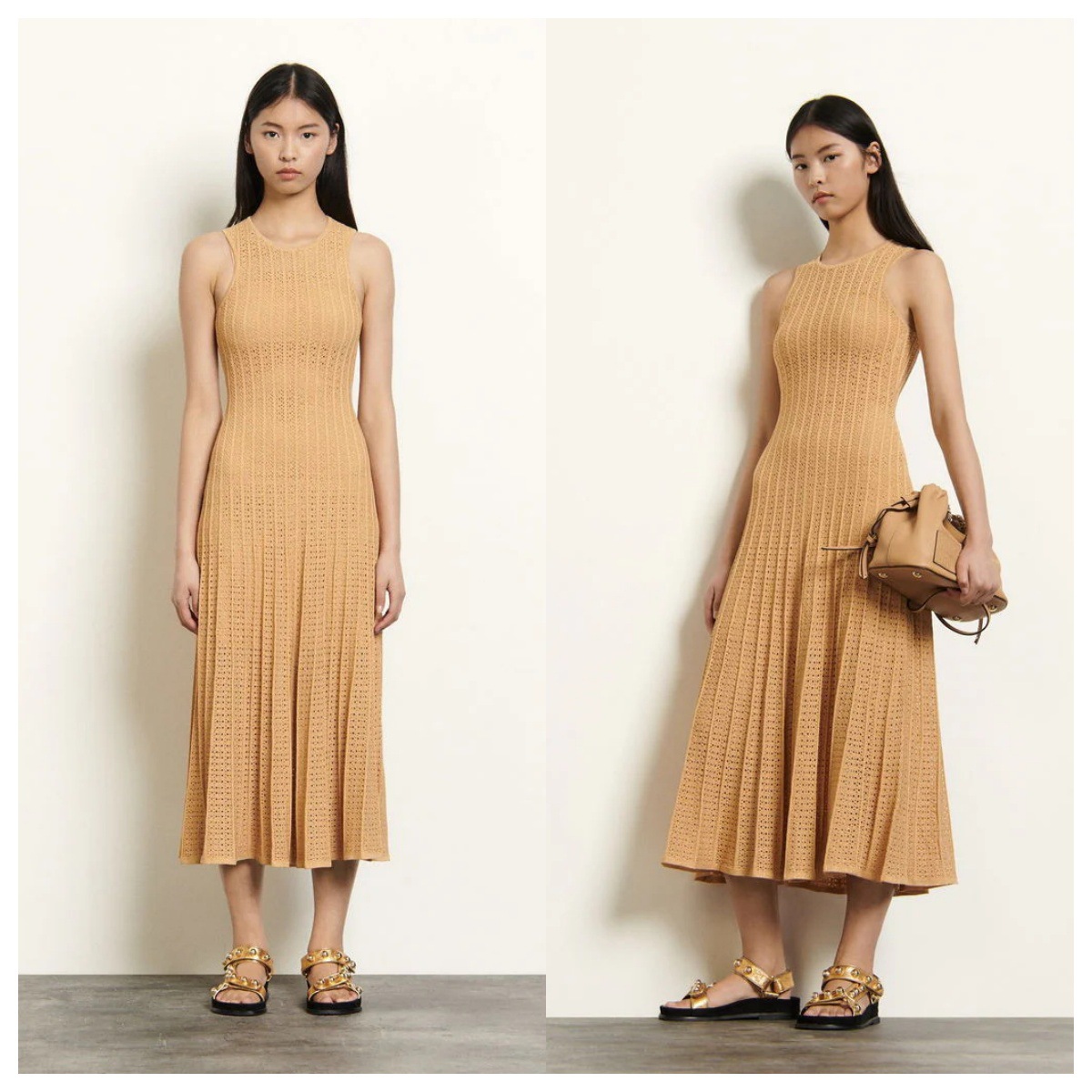 국경 2025 여름 니트 할로우 라운드 넥 민소매 조끼 긴 스커트 비키니 외부 블라우스 원피스스토어 가기