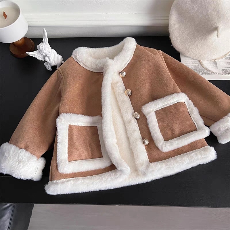 2025 새로운 기모 두꺼운 소녀 가을 겨울 코트 한국 스타일 외국인 겨울 겨울 아기 모피 원 톱스토어 가기